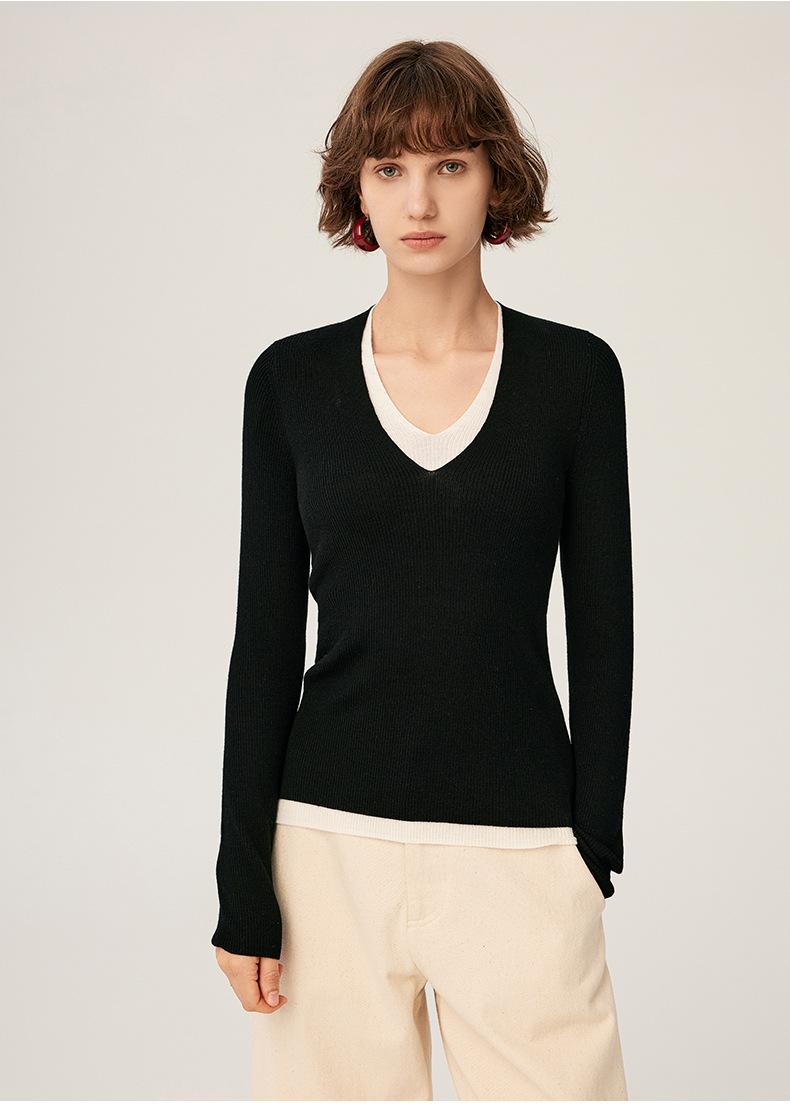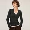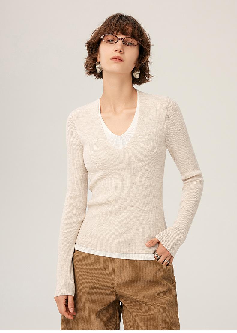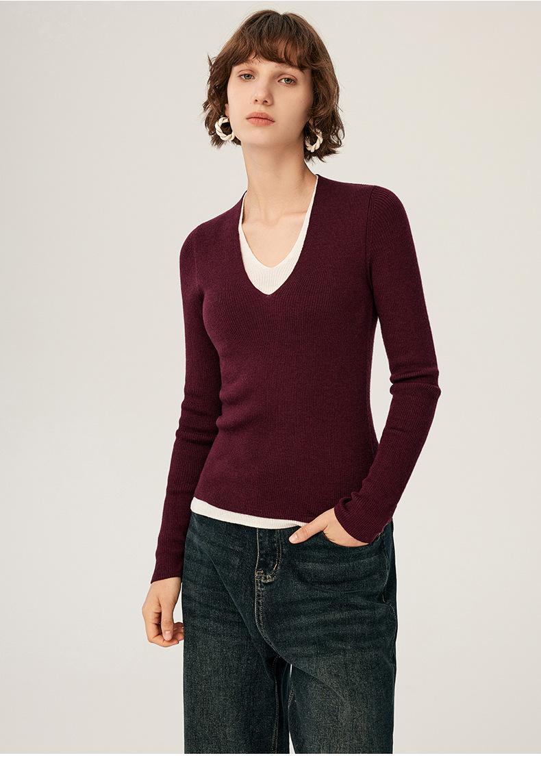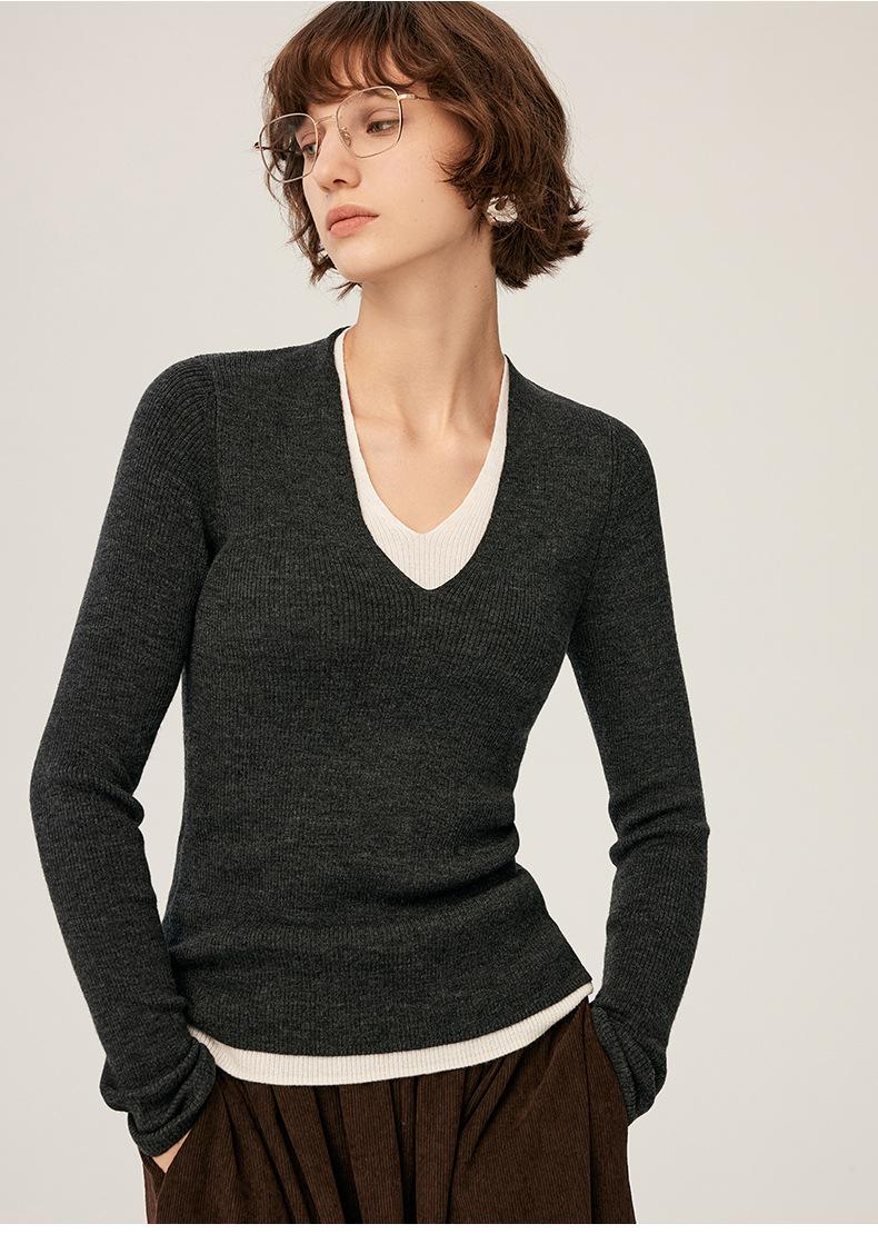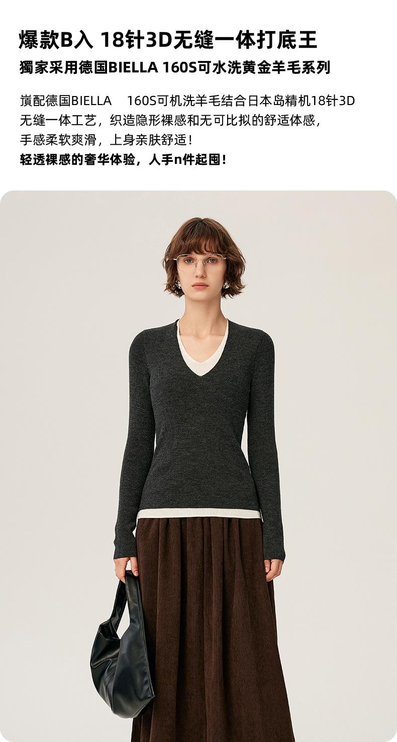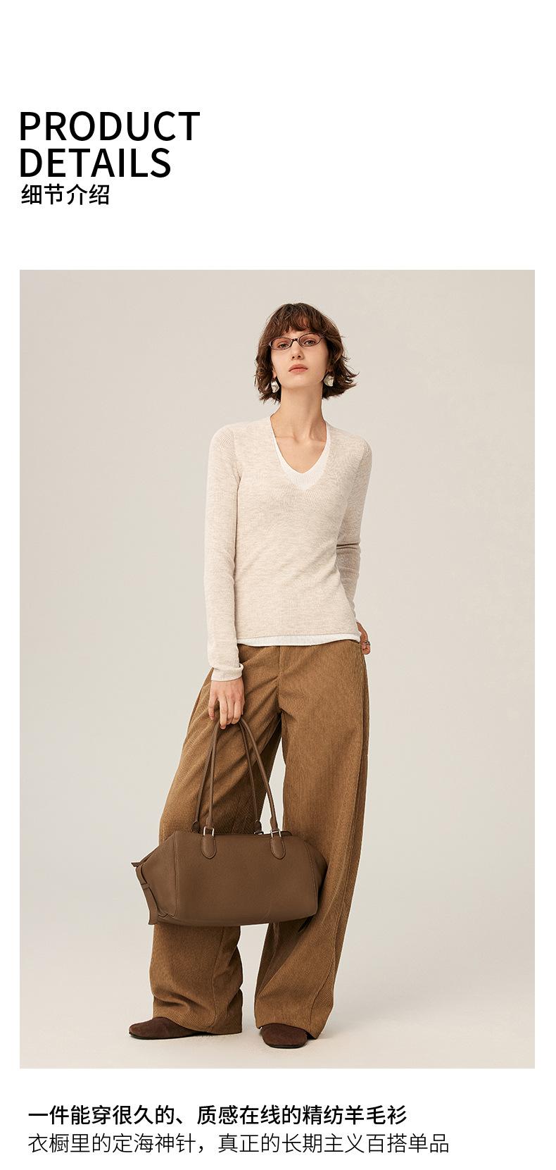 Cárdigan para mujer 100% Lana Pura Hilo Alemán Yangtze Manga Larga Tejido Base Delgado Cuello en V Suéter Pulóver