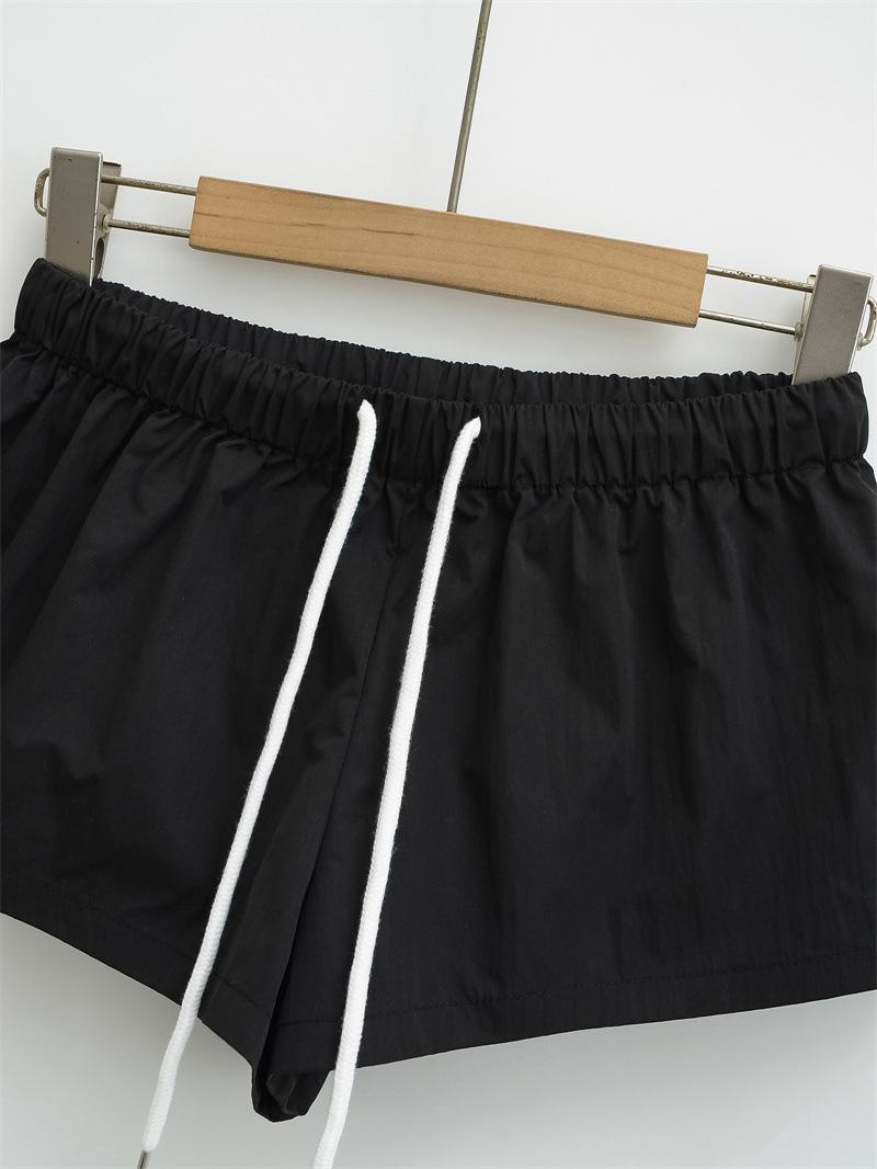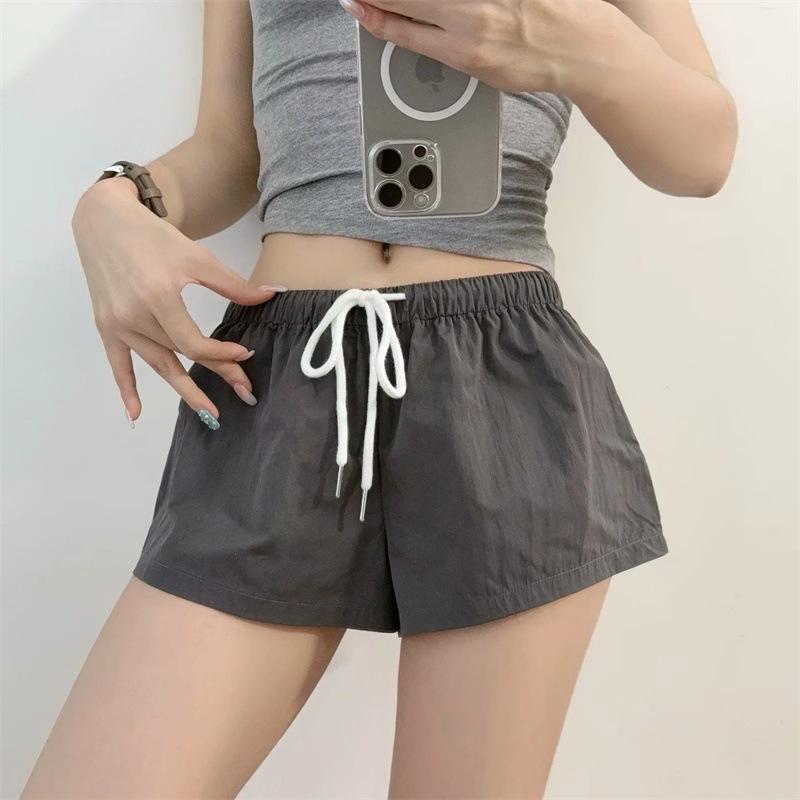Shorts Rectos de Tiro Bajo con Cordón American Hot Girl 2025 Verano Nueva Moda Holgados Adelgazantes Casuales Deportivos Pantalones Cortos