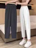 Pantalones Casuales de Verano 2025 para Mujer, Color Sólido, Cintura Elástica, Corte Holgado, Versátil, Talla Grande, Pantalones Largos de Pierna Ancha