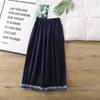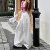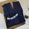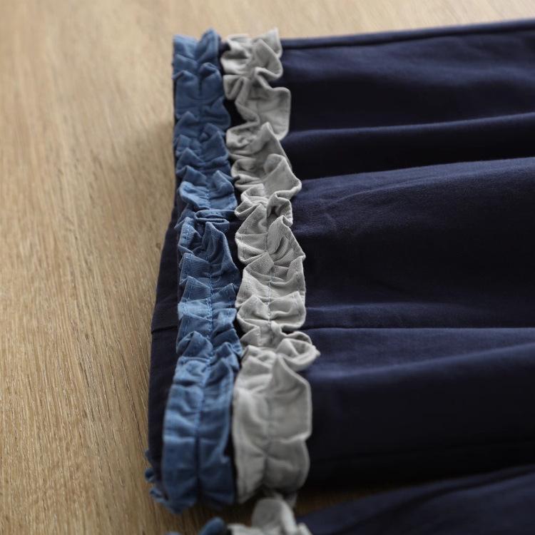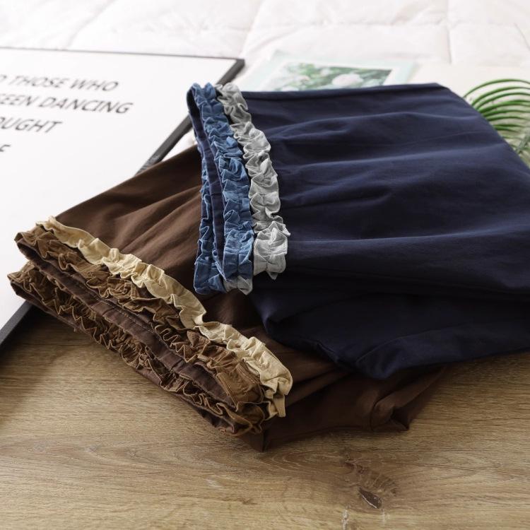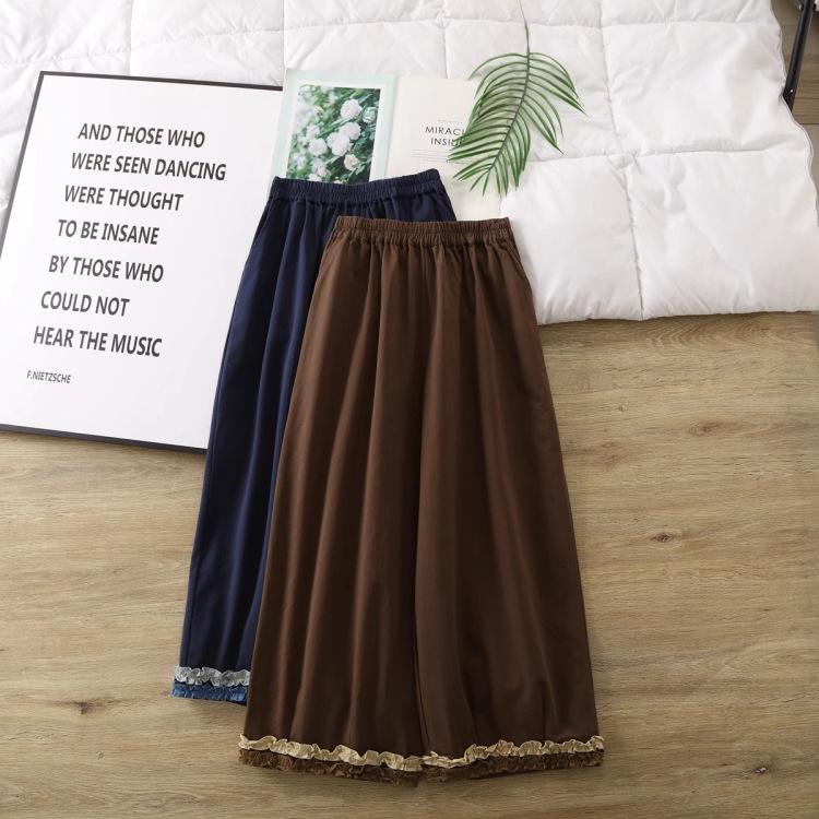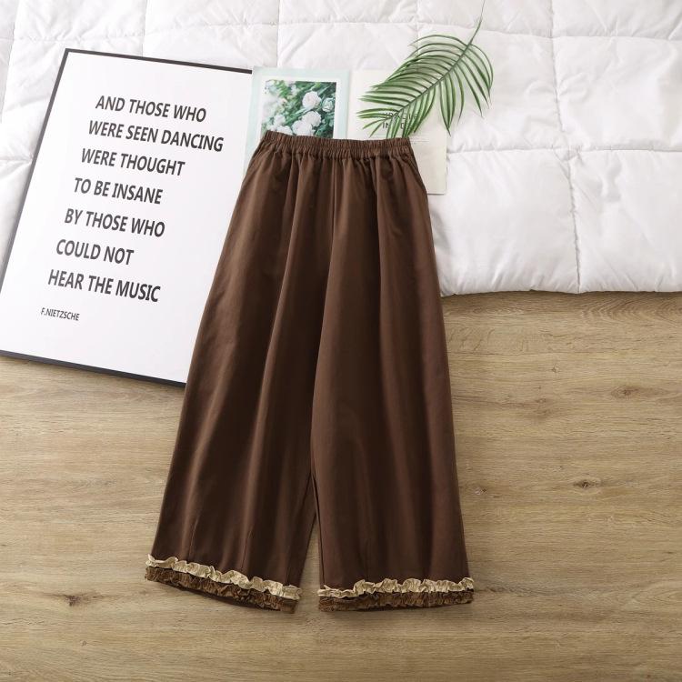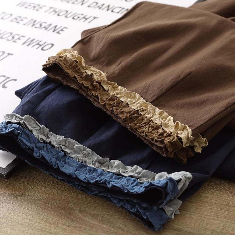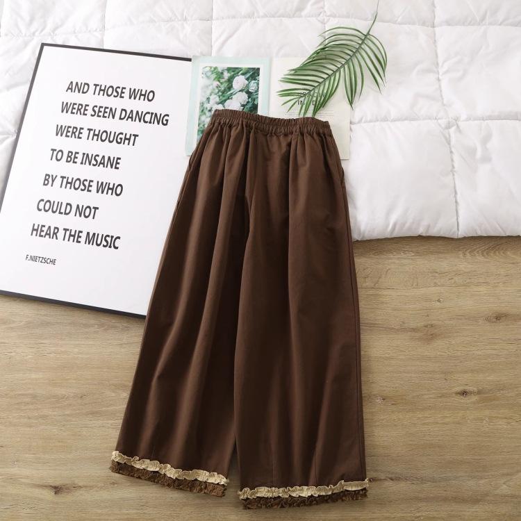 Foto Real En Stock Verano Bloque de Color Borde con Volantes Reductor de Edad Pantalones de Pierna Ancha para Mujer Pantalones Casuales Retro Empalmados de Pierna Recta Versátiles para Mujer