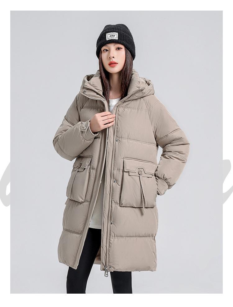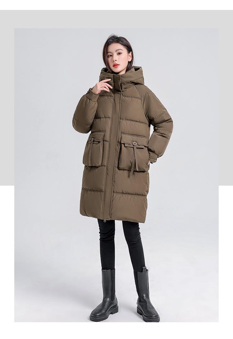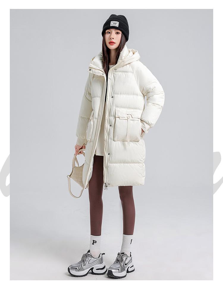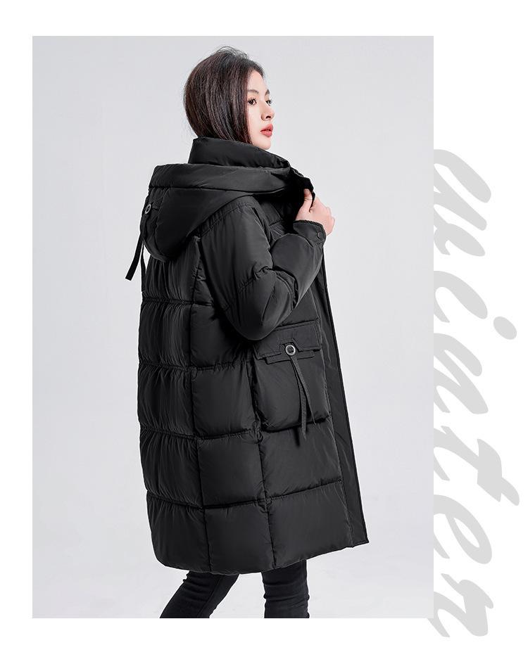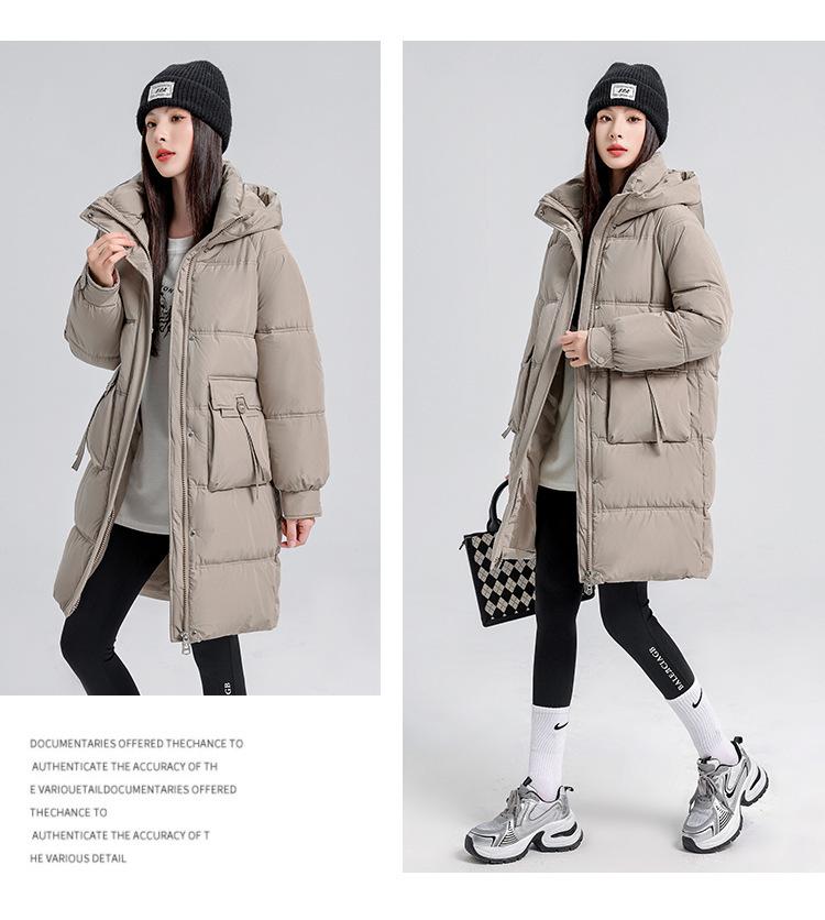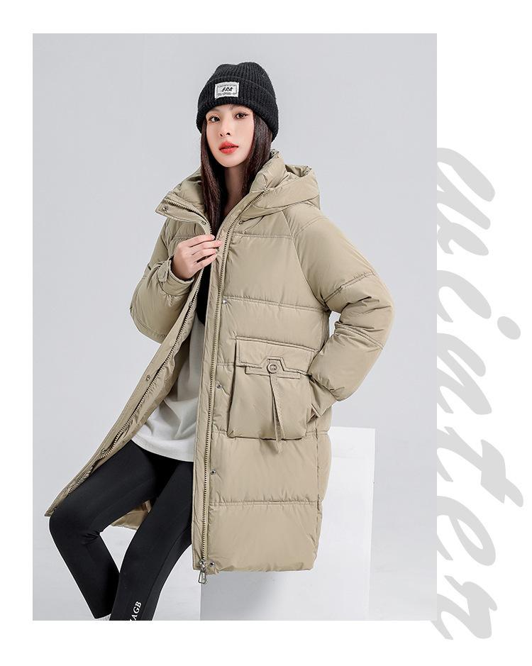 Invierno Nuevo Abrigo de Algodón Acolchado para Mujer Chaqueta de Algodón de Longitud Media Talla Extra Suelta Casual Chaqueta Acolchada de Algodón con Capucha Versátil Cálida Ropa Exterior