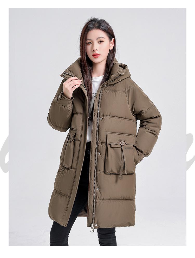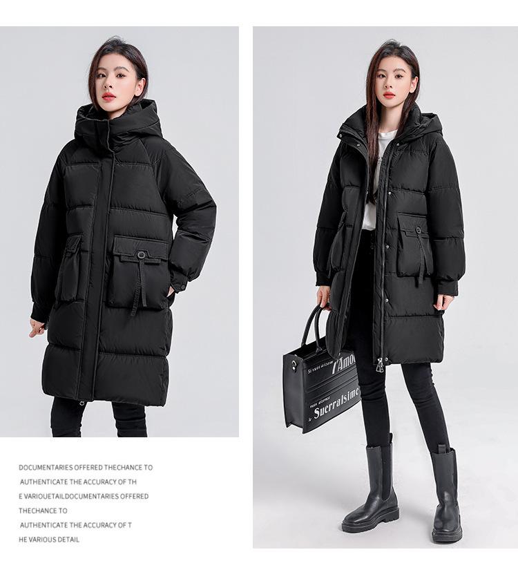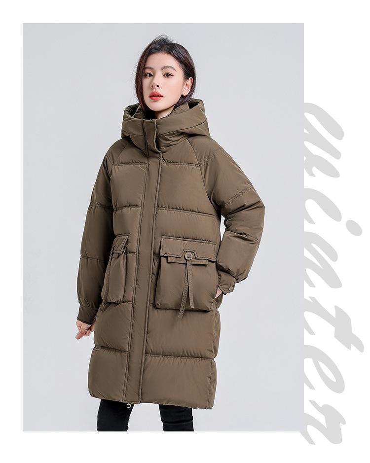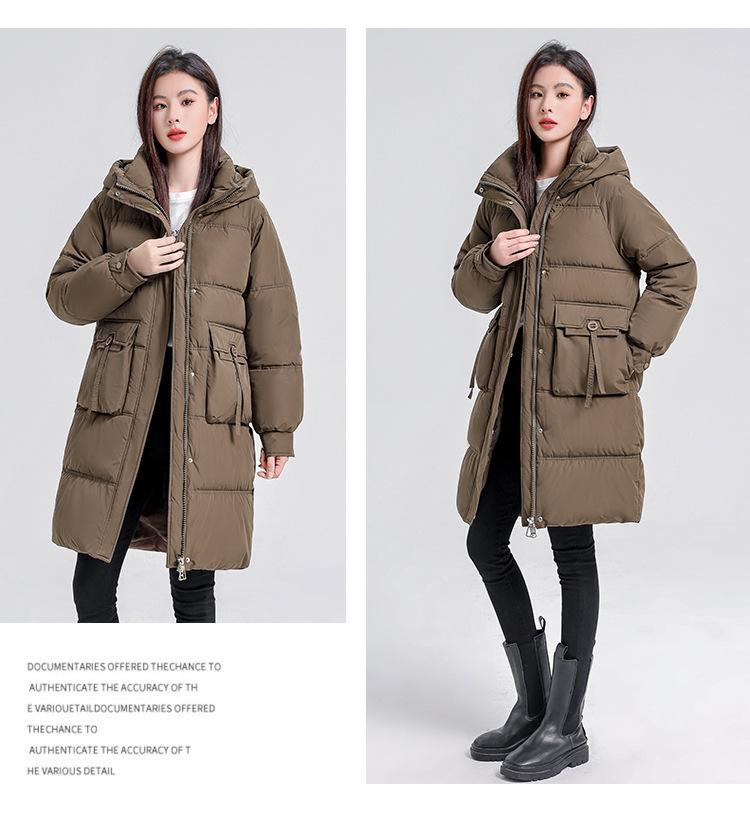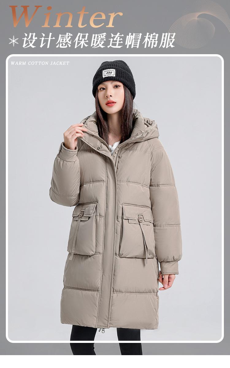Invierno Nuevo Abrigo de Algodón Acolchado para Mujer Chaqueta de Algodón de Longitud Media Talla Extra Suelta Casual Chaqueta Acolchada de Algodón con Capucha Versátil Cálida Ropa Exterior