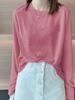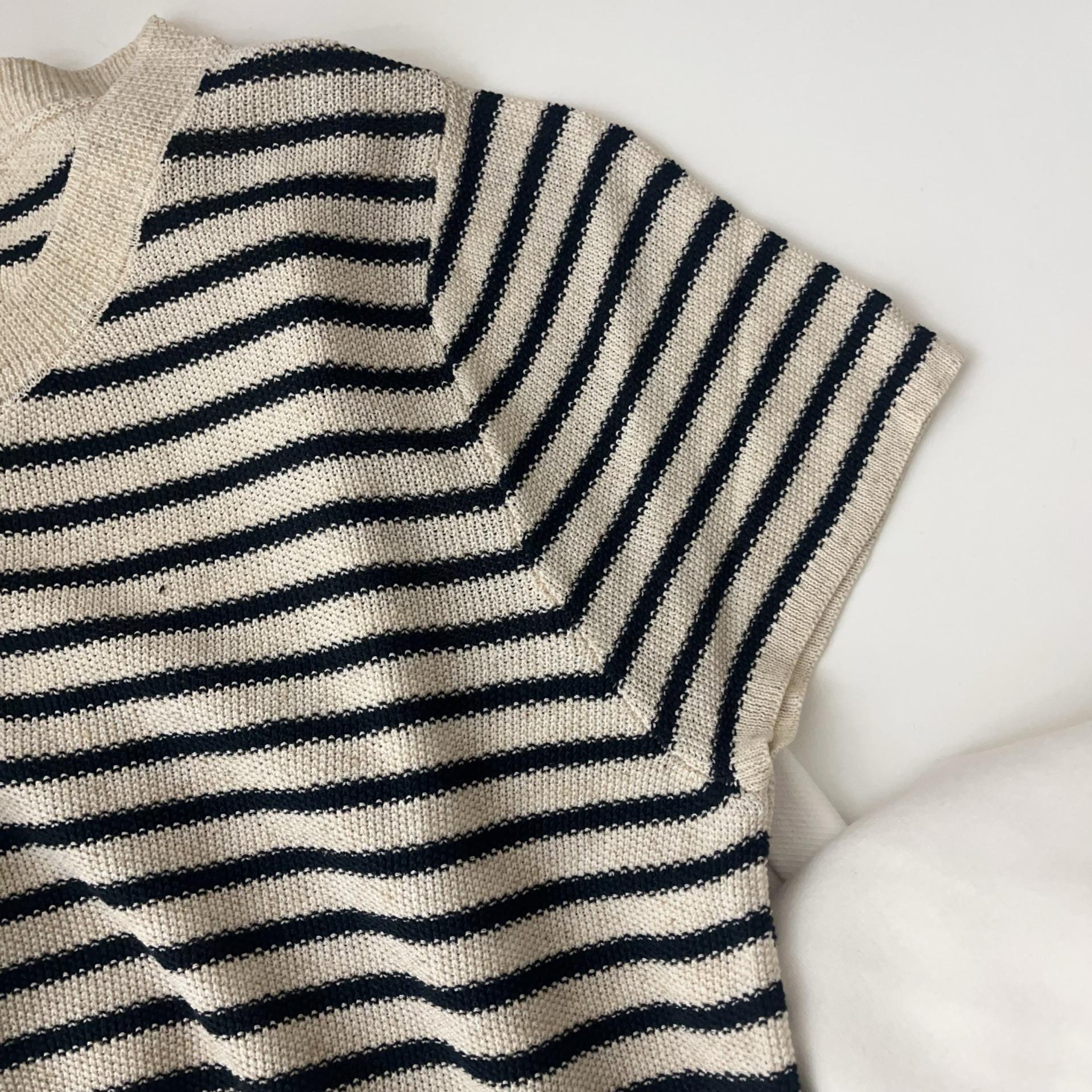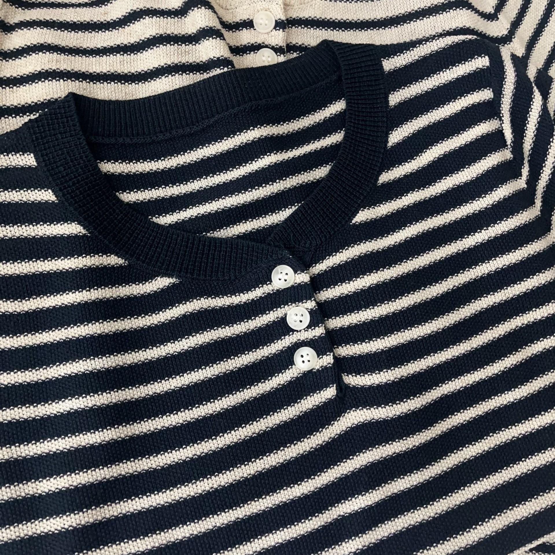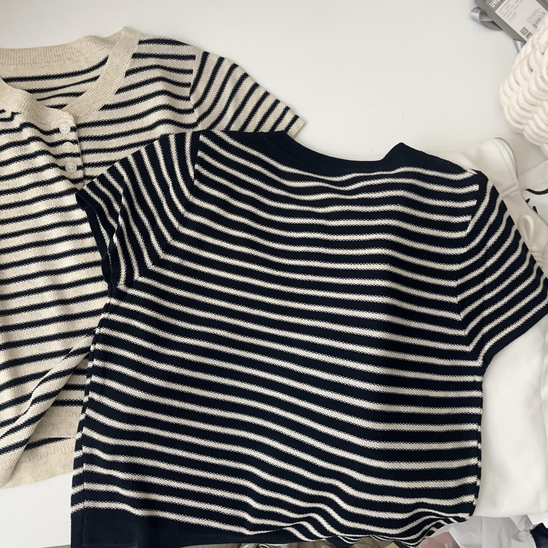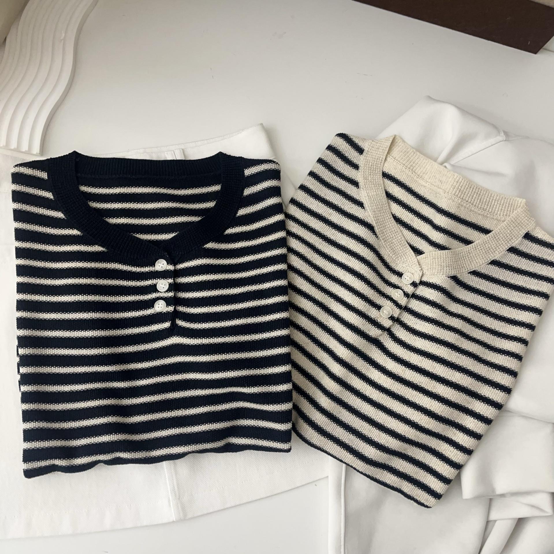 2025 Nuevo Verano Estilo Coreano Moda Versátil Suéter Rayado Manga Corta Elegante Cuello Redondo Contraste Top Sencillo