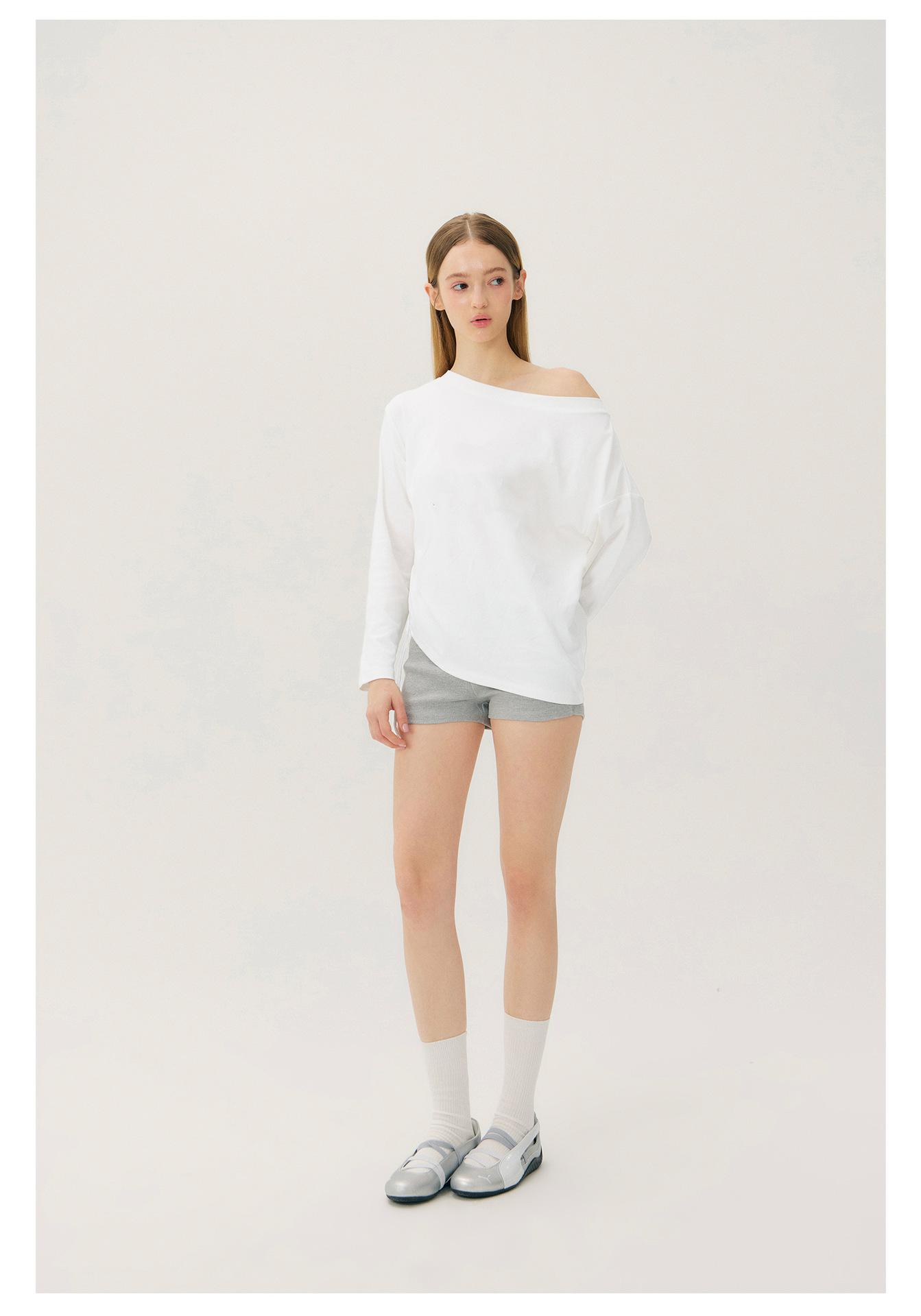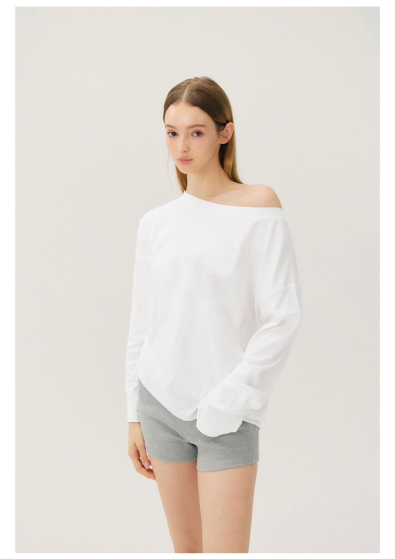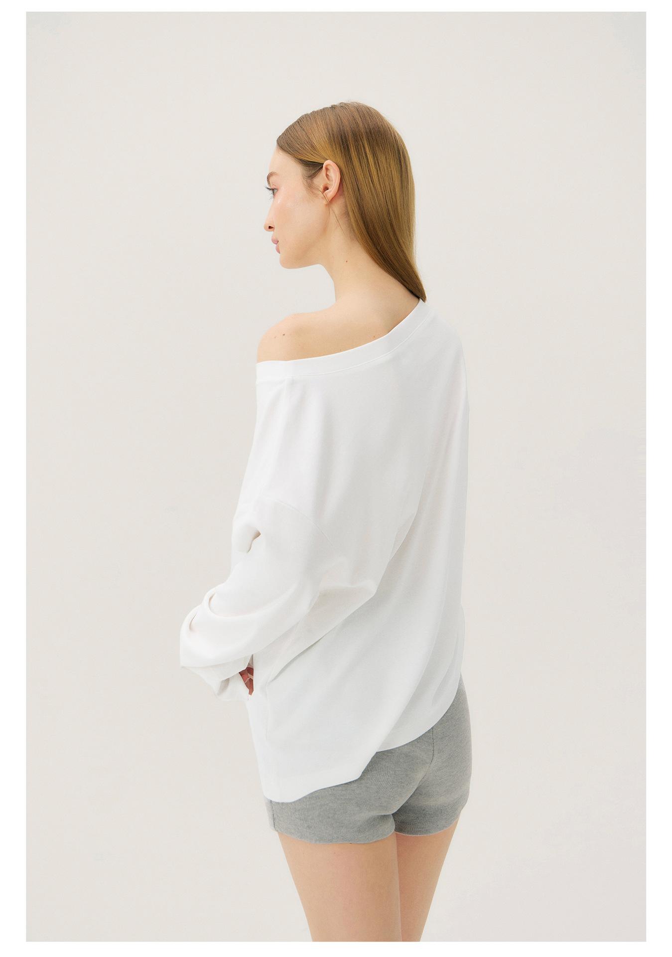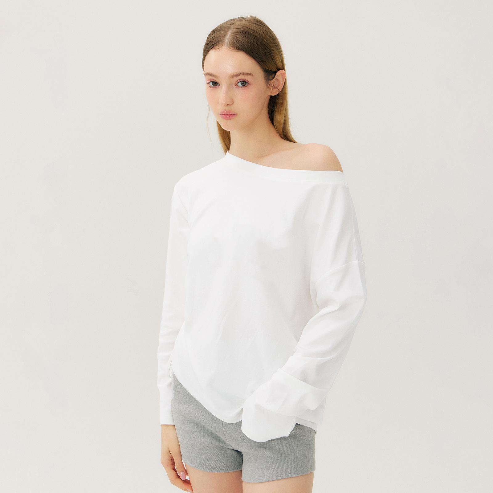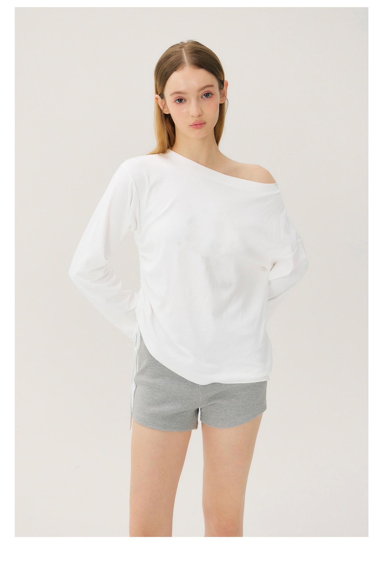 Diseño puro y sexy top de hombros descubiertos con escote asimétrico, manga larga, para mujer, otoño, cintura con cordón ajustable, blanco, holgado, ropa de mujer, camiseta de manga larga