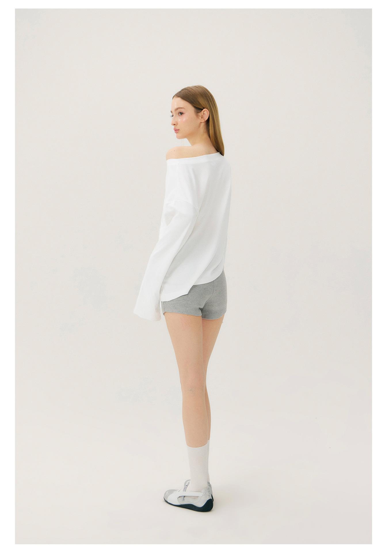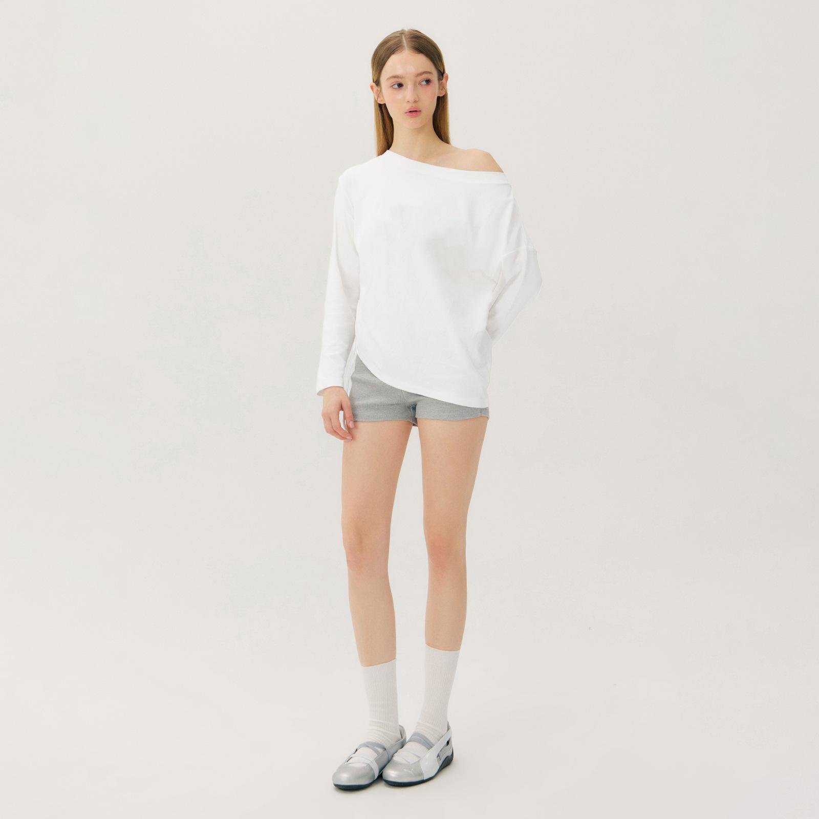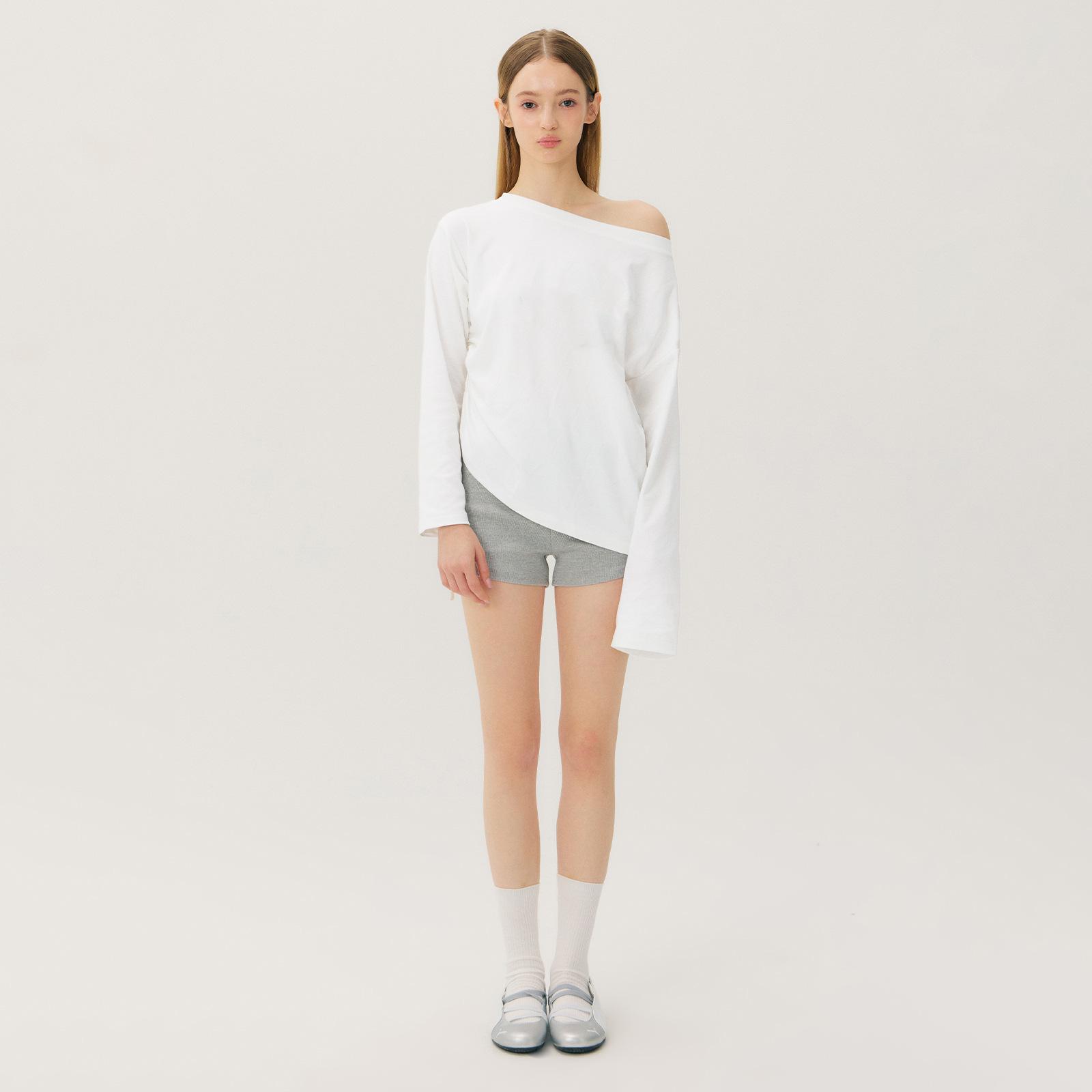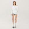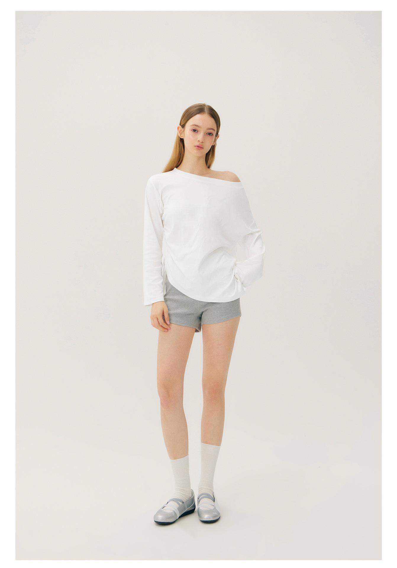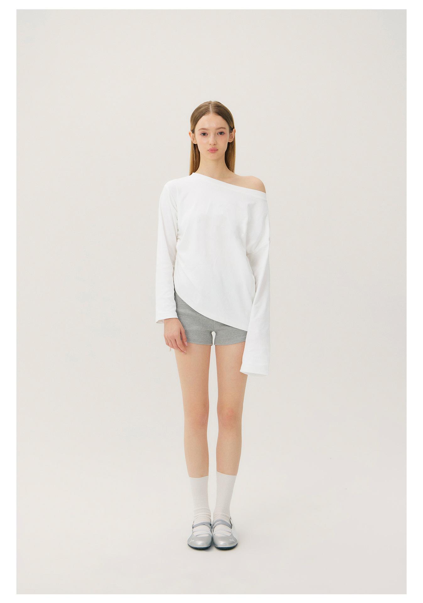 Diseño puro y sexy top de hombros descubiertos con escote asimétrico, manga larga, para mujer, otoño, cintura con cordón ajustable, blanco, holgado, ropa de mujer, camiseta de manga larga