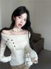 Top perezoso de un hombro descubierto para mujer, diseño de nicho de otoño, temperamento de hombros descubiertos, camiseta sencilla de un hombro y manga larga