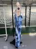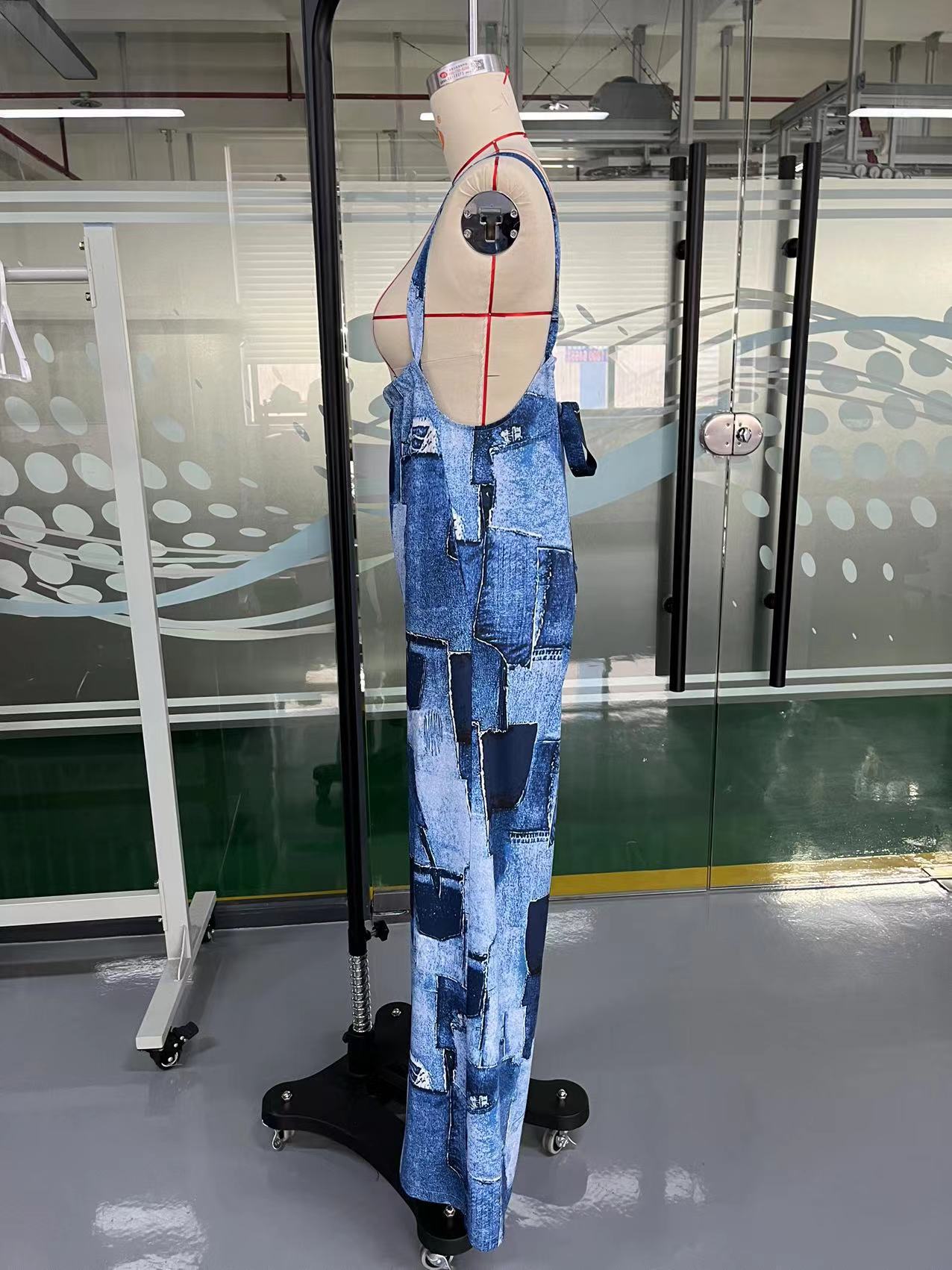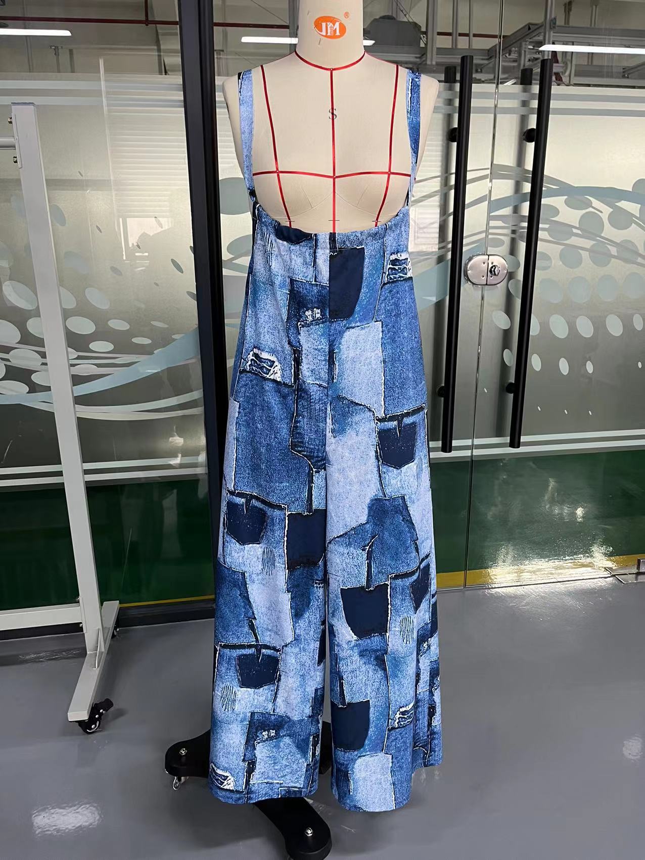 Ropa de mujer europea y americana comercio exterior transfronterizo patchwork irregular estampado pantalones linterna de pierna ancha mono peto mujer delgada