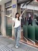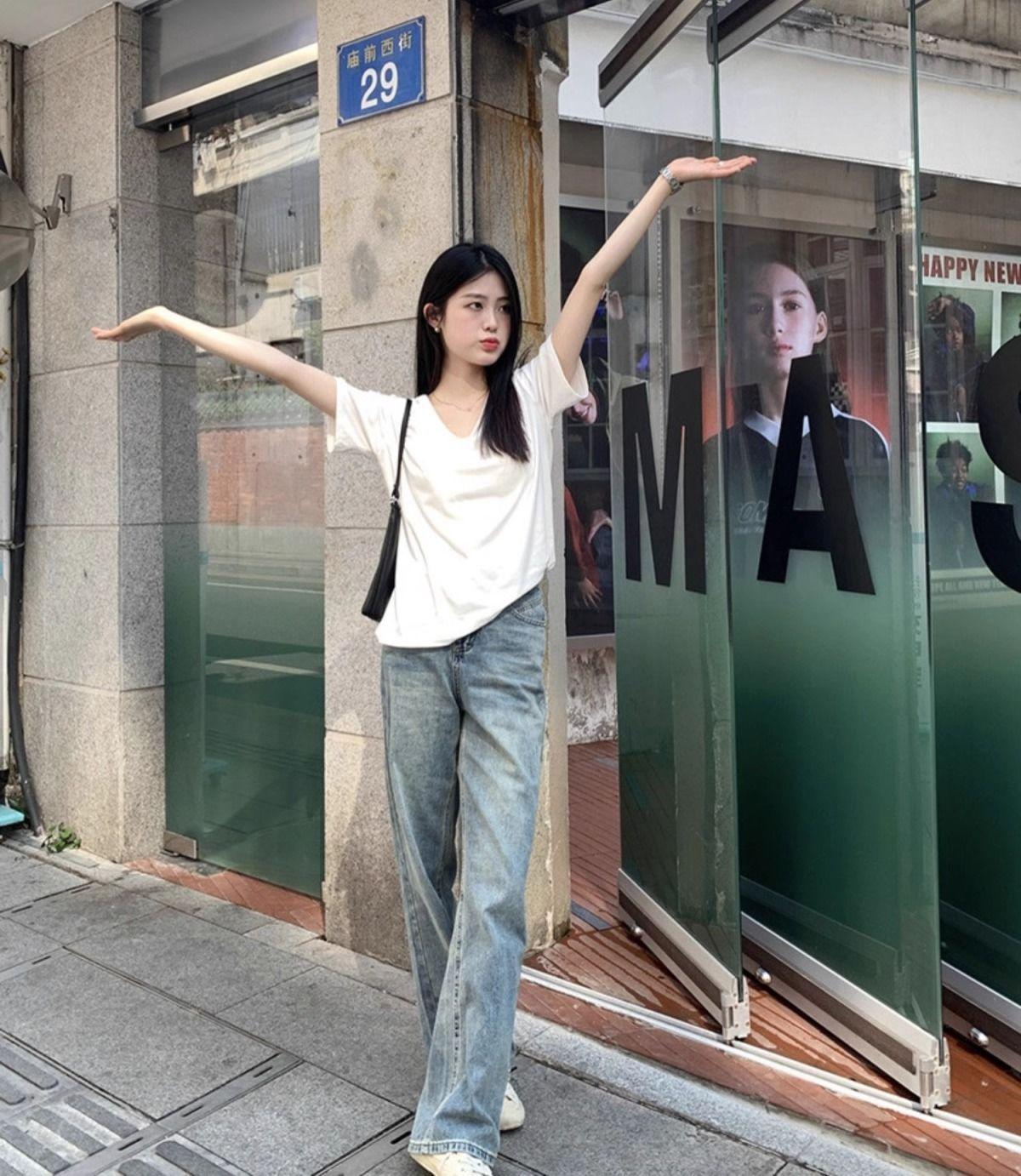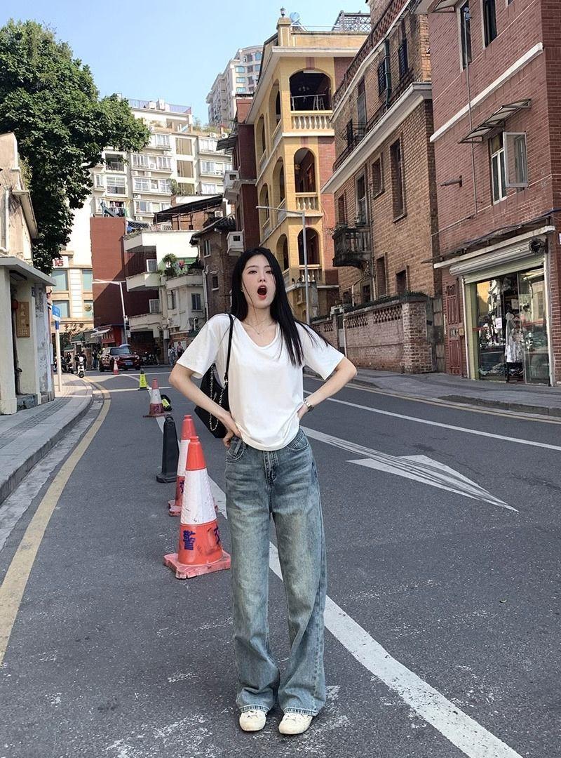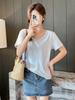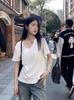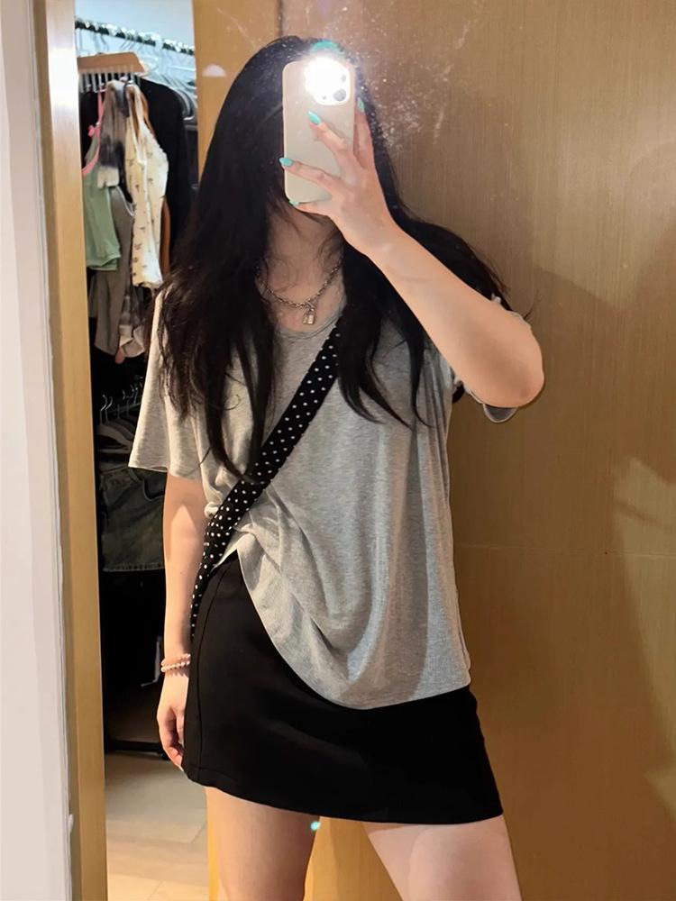 Playera de Manga Corta con Cuello en V de Estilo Holgazán para Mujer 2025 Nuevo Verano Delgada Suelta Casual Moda Color Puro Versátil Top Trendy