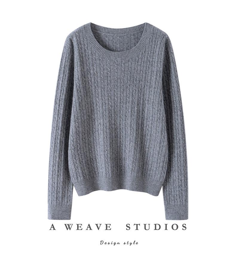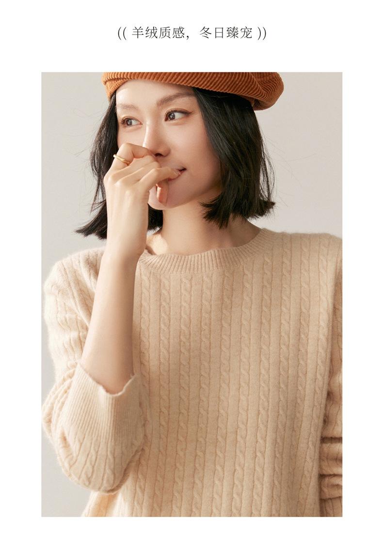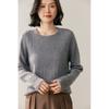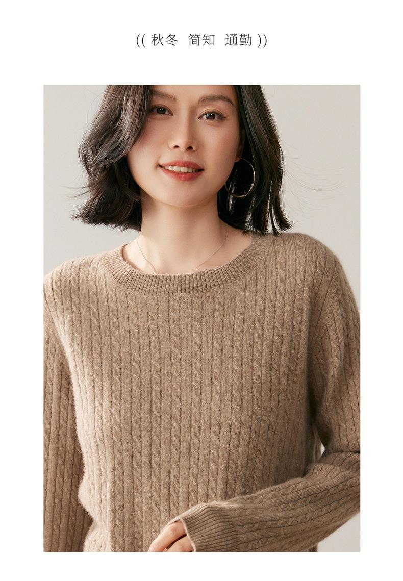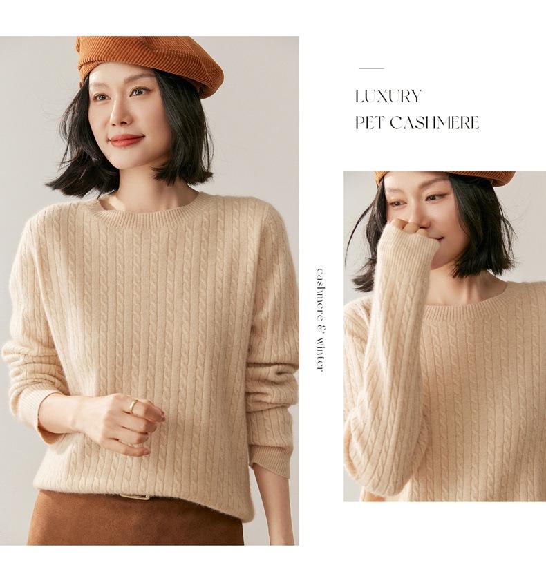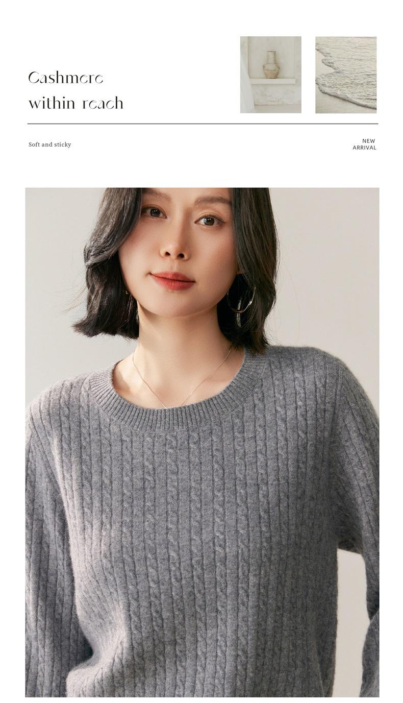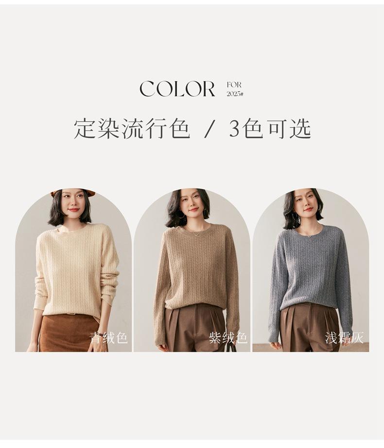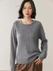 Nueva Camiseta Básica de Punto de Cachemira para Otoño e Invierno, Moderna, Versátil, Suave y Cómoda, Color Sólido, Cuello Redondo, Punto de Cable para Mujer, Holgada