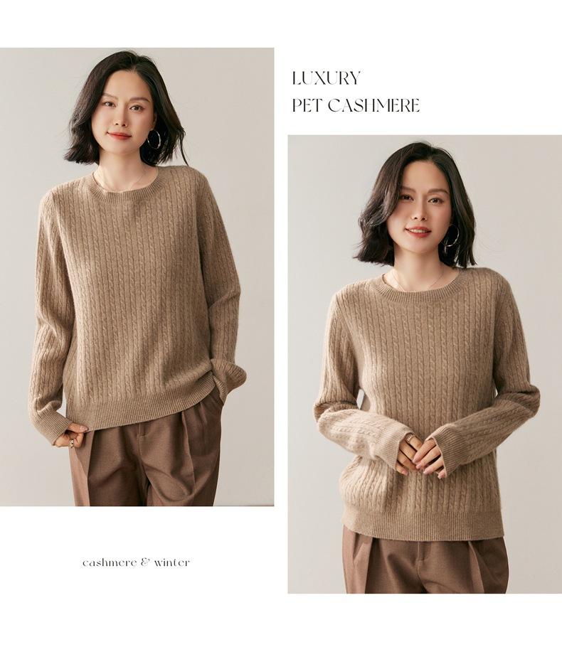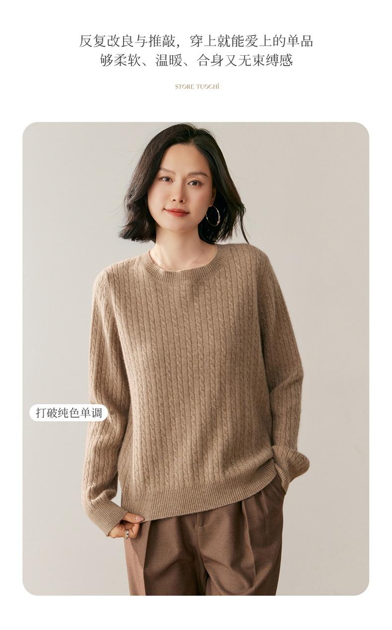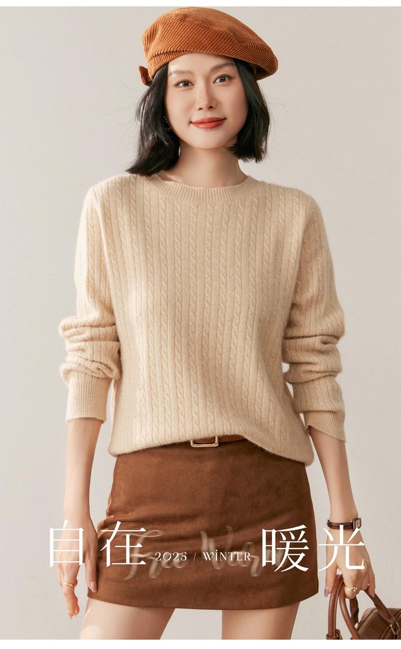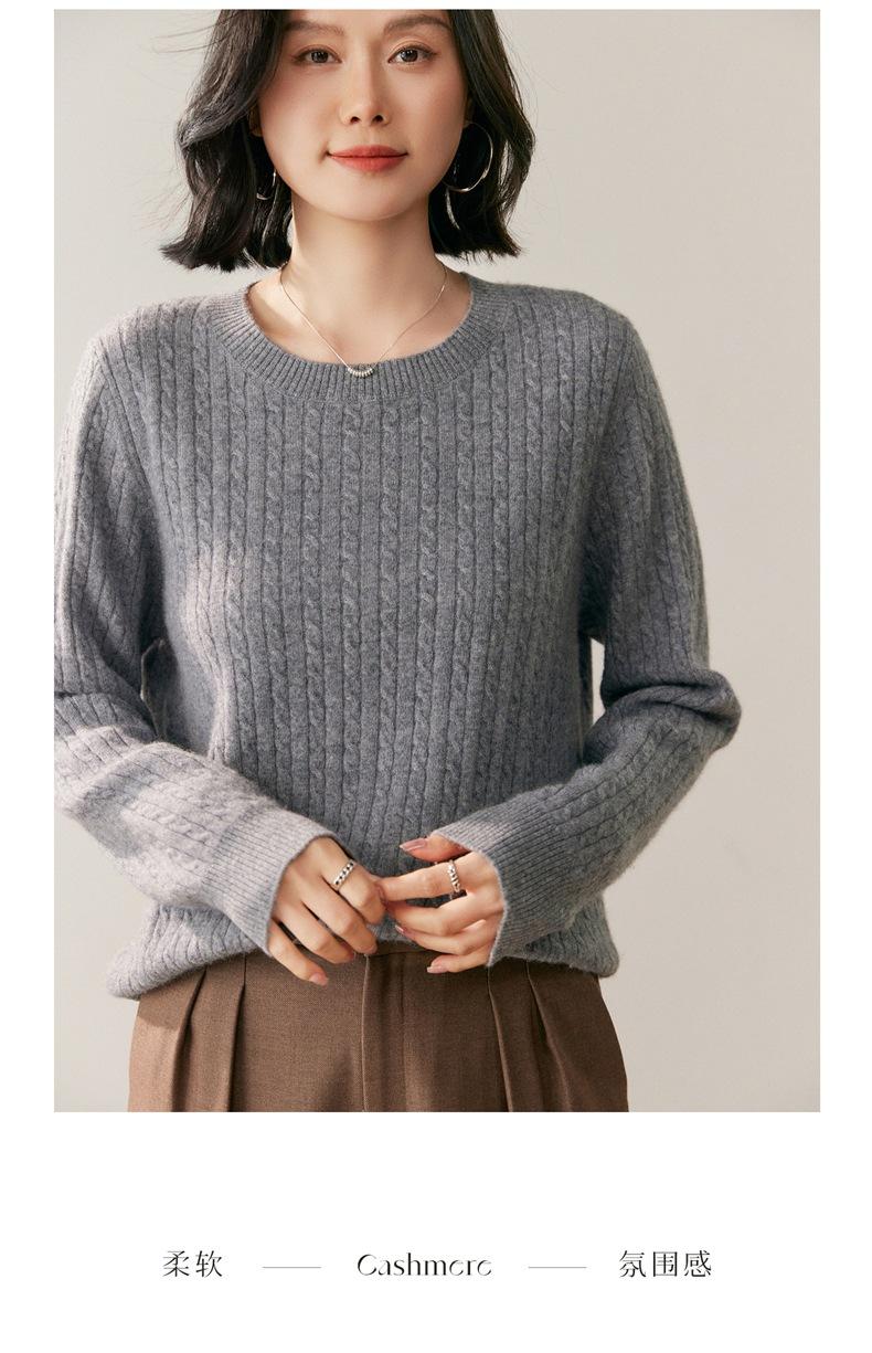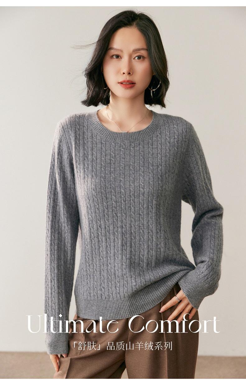 Nueva Camiseta Básica de Punto de Cachemira para Otoño e Invierno, Moderna, Versátil, Suave y Cómoda, Color Sólido, Cuello Redondo, Punto de Cable para Mujer, Holgada