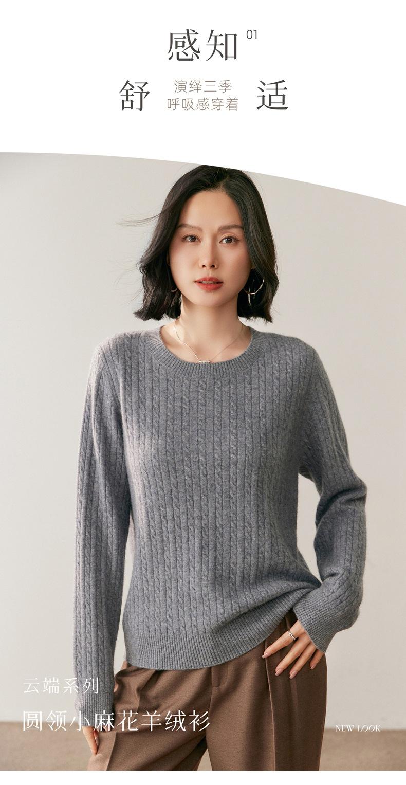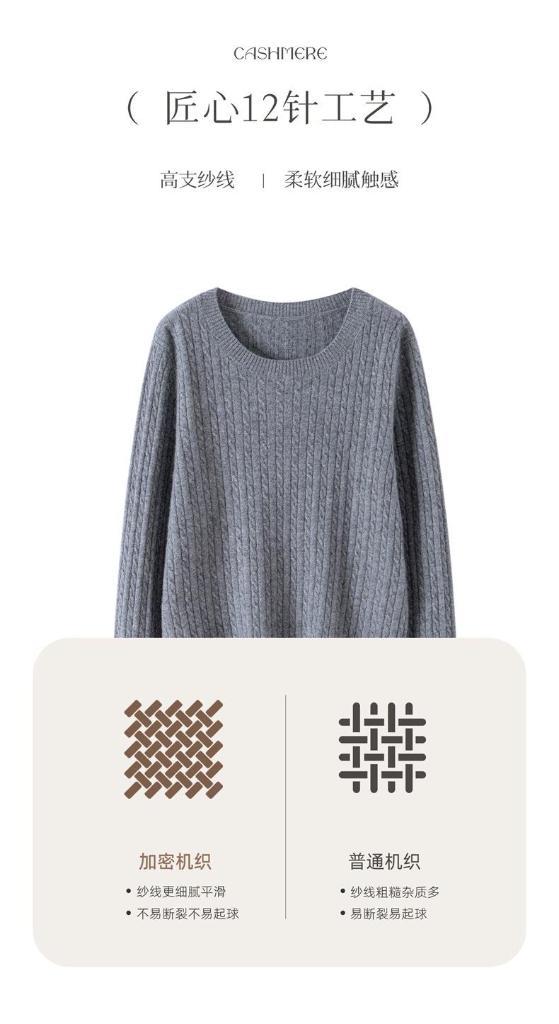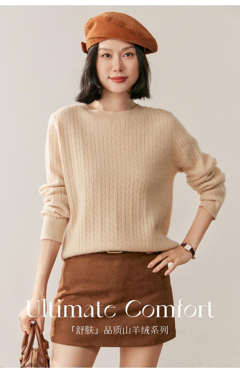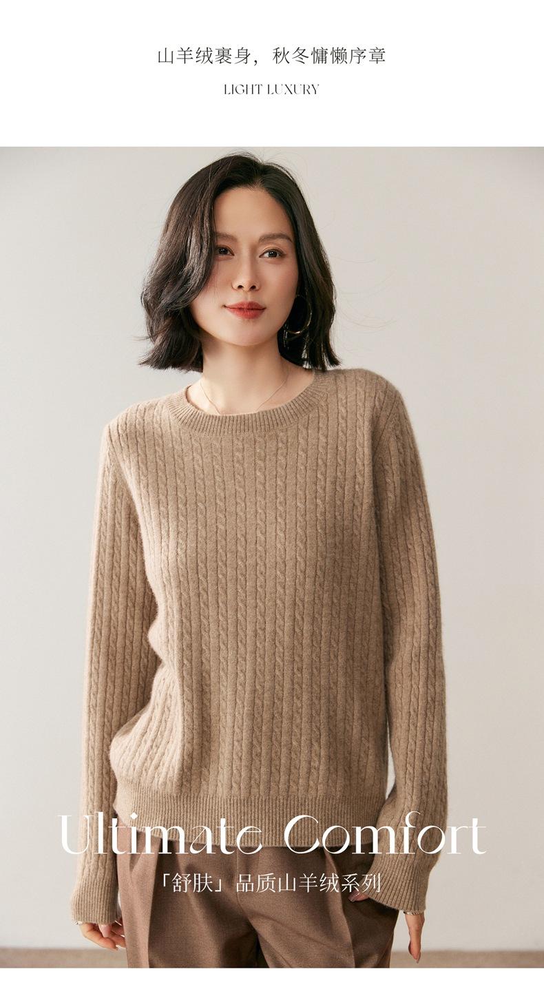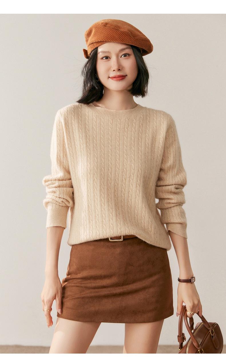 Nueva Camiseta Básica de Punto de Cachemira para Otoño e Invierno, Moderna, Versátil, Suave y Cómoda, Color Sólido, Cuello Redondo, Punto de Cable para Mujer, Holgada