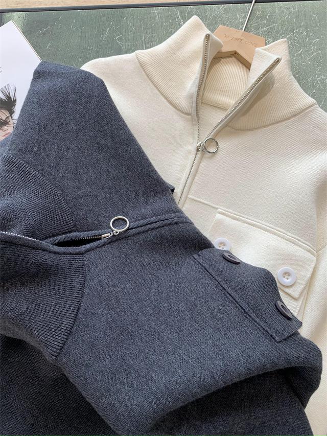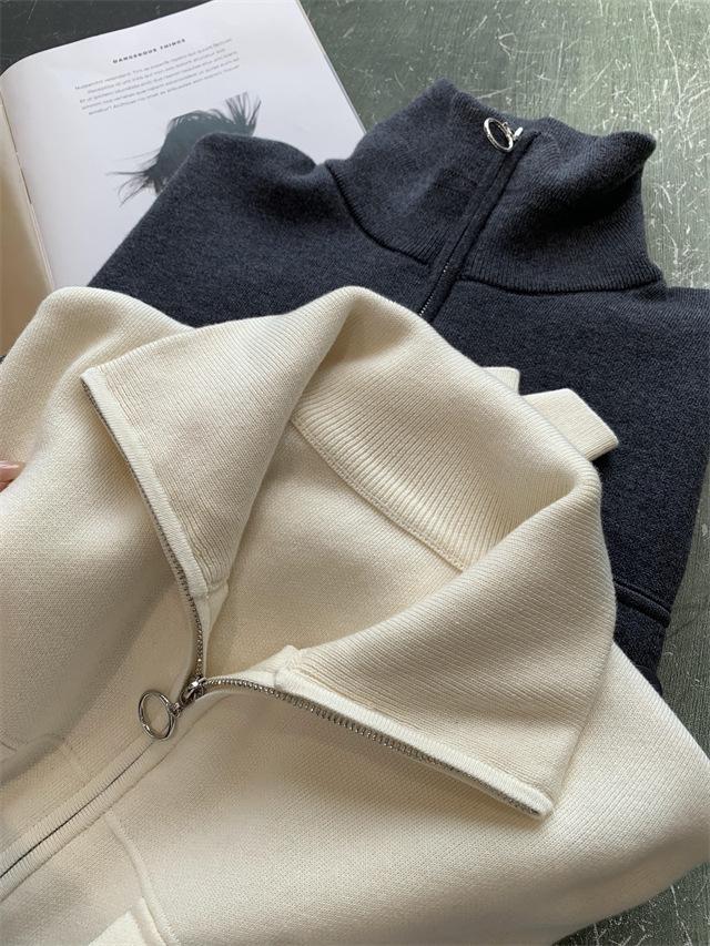 Cárdigan con cremallera y cuello alto, ideal para llevar en capas en otoño e invierno, buen efecto cortavientos