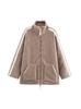 El escote, los puños y el bajo están hechos con un tejido de punto acanalado denso.