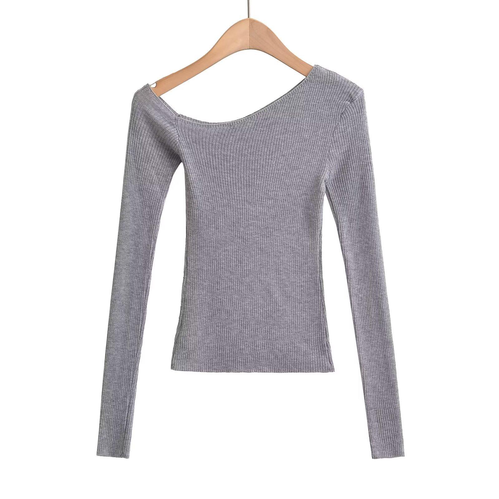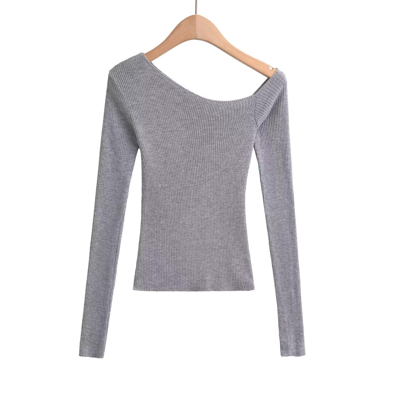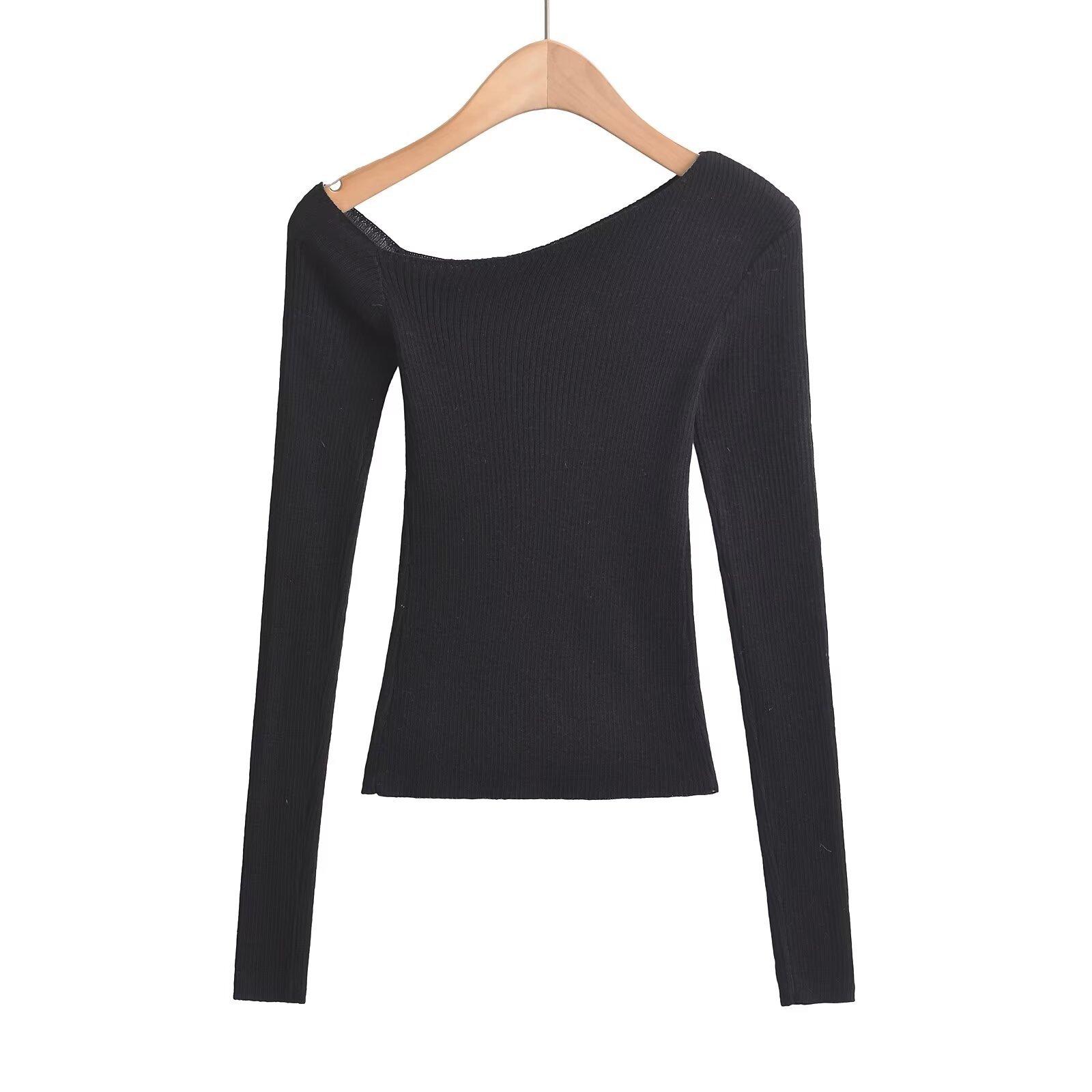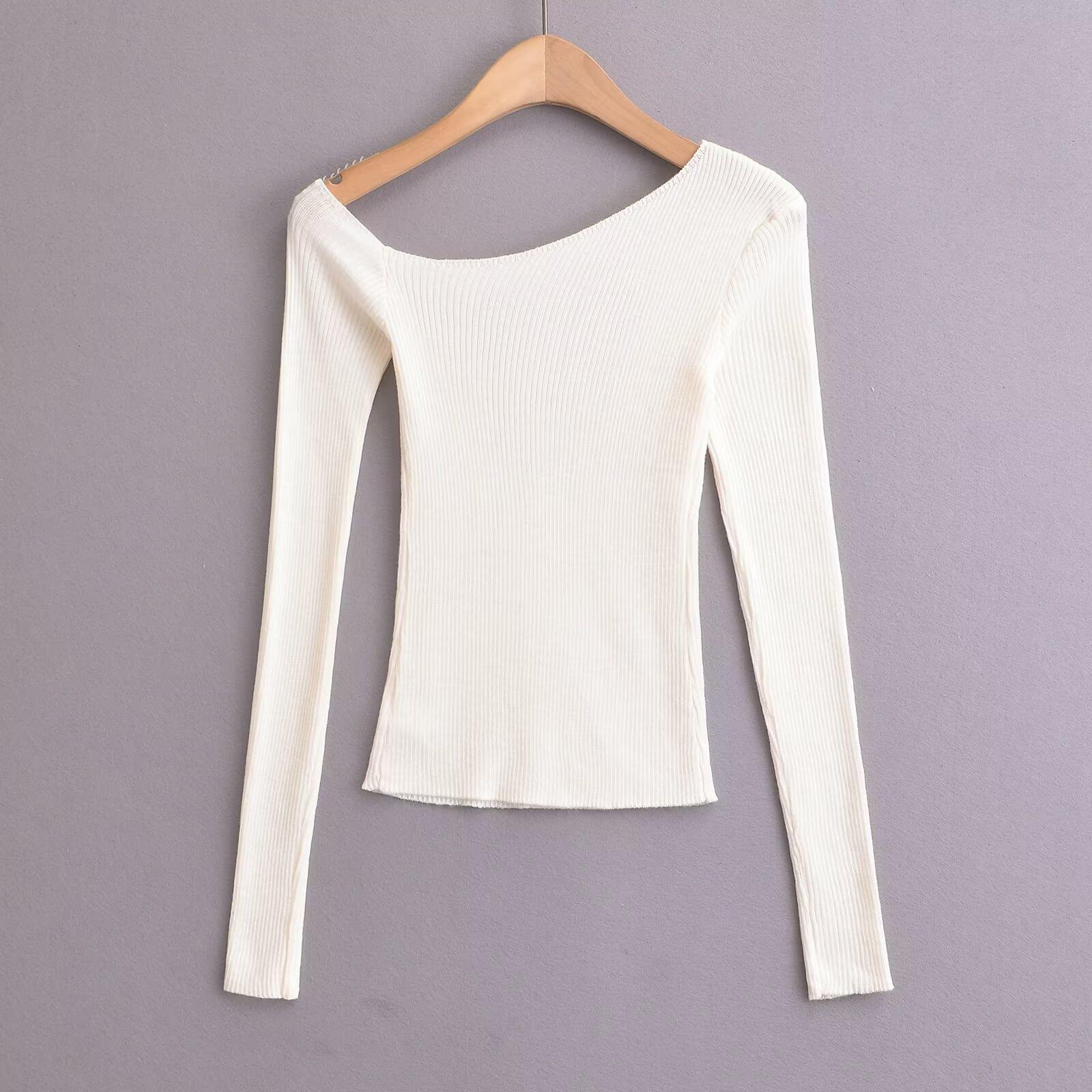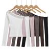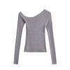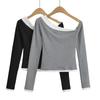 Top de Punto de Hombro Descubierto Manga Larga para Mujer Otoño Temprano 2024 Sexy Spice Girl Ajustado Camiseta Base Top