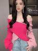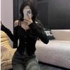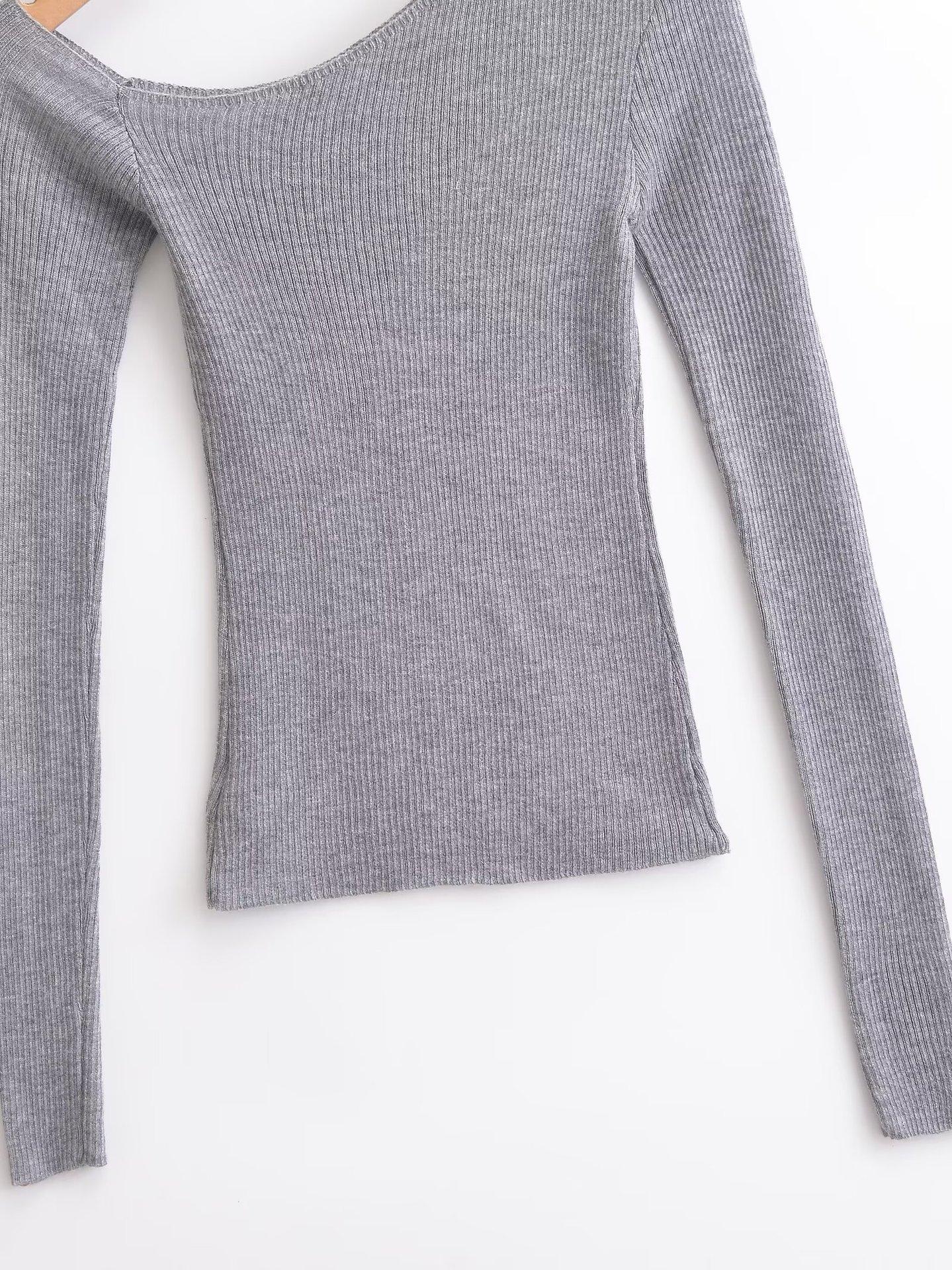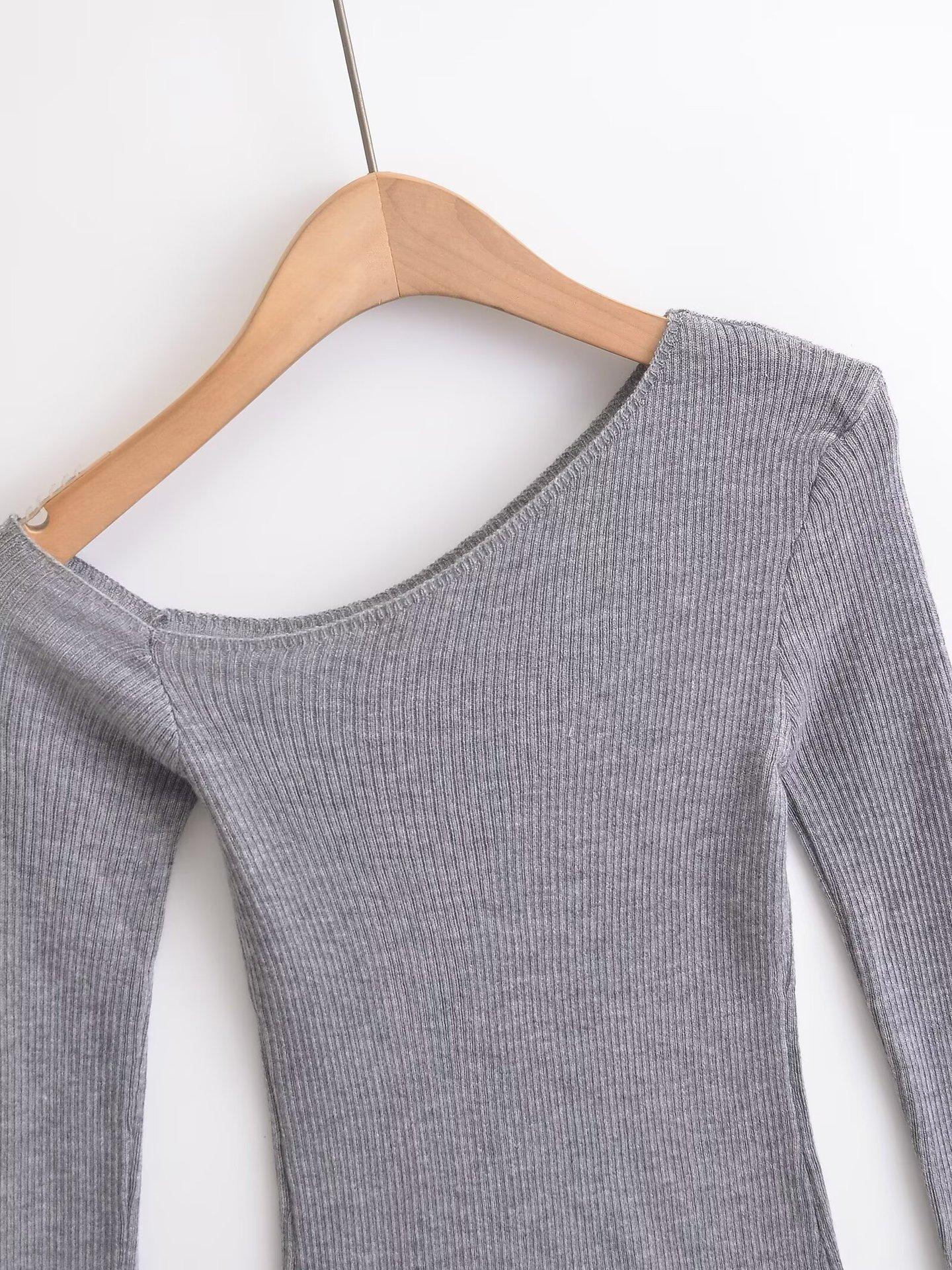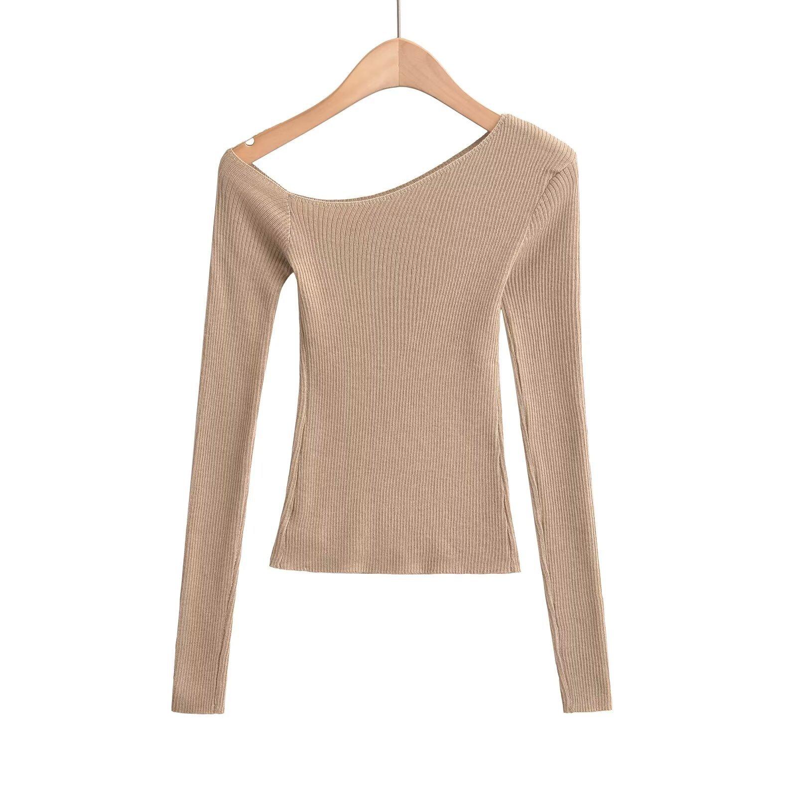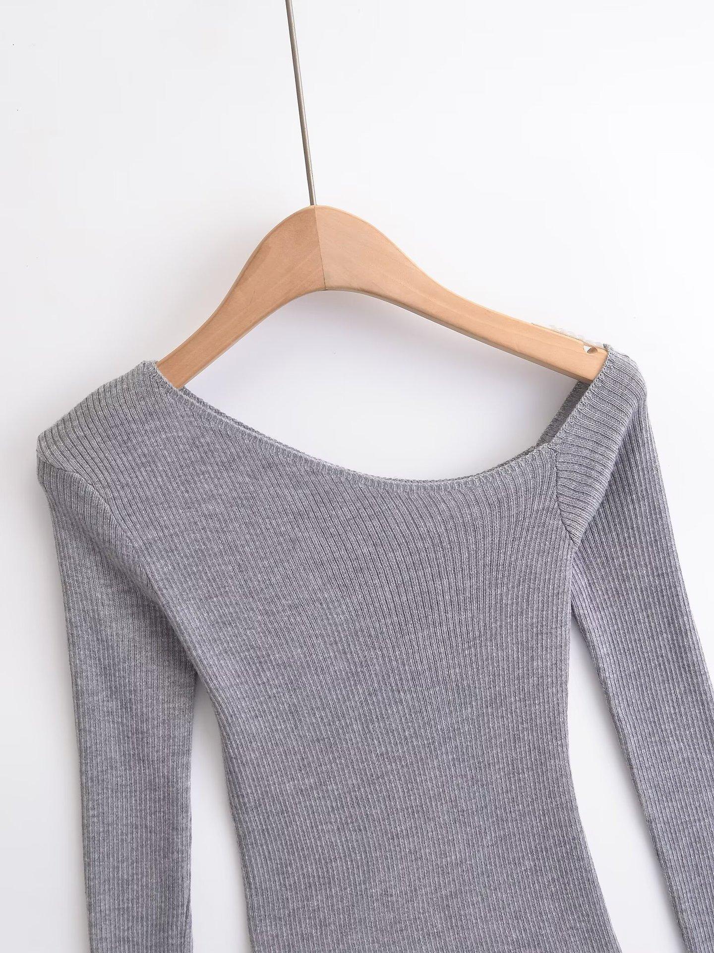 Top de Punto de Hombro Descubierto Manga Larga para Mujer Otoño Temprano 2024 Sexy Spice Girl Ajustado Camiseta Base Top