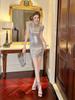 25523-Estilo europeo y americano sexy chica caliente vestido de un hombro ajustado a la cadera mujeres 2025 nuevo vestido de encaje adelgazante de cintura