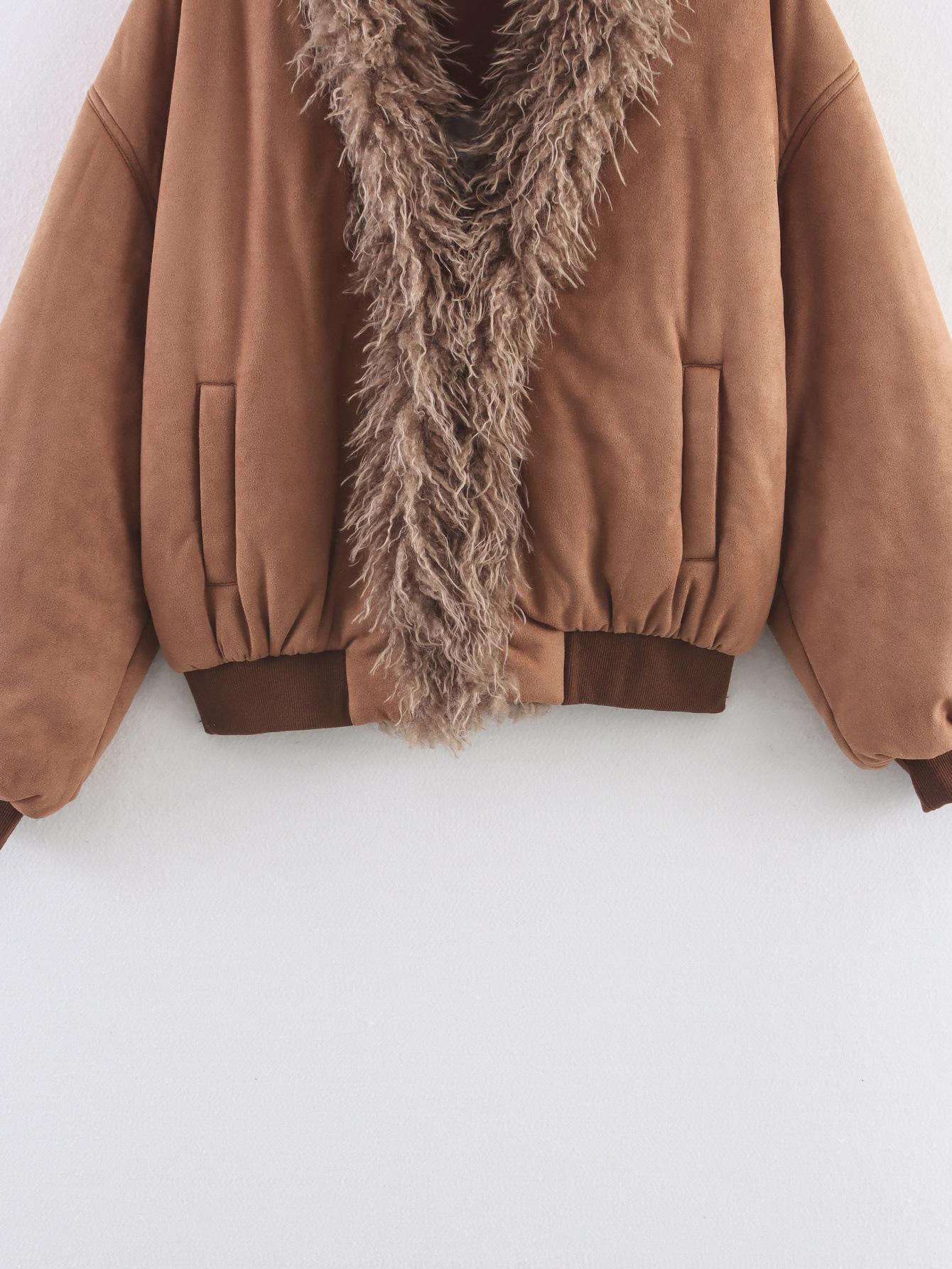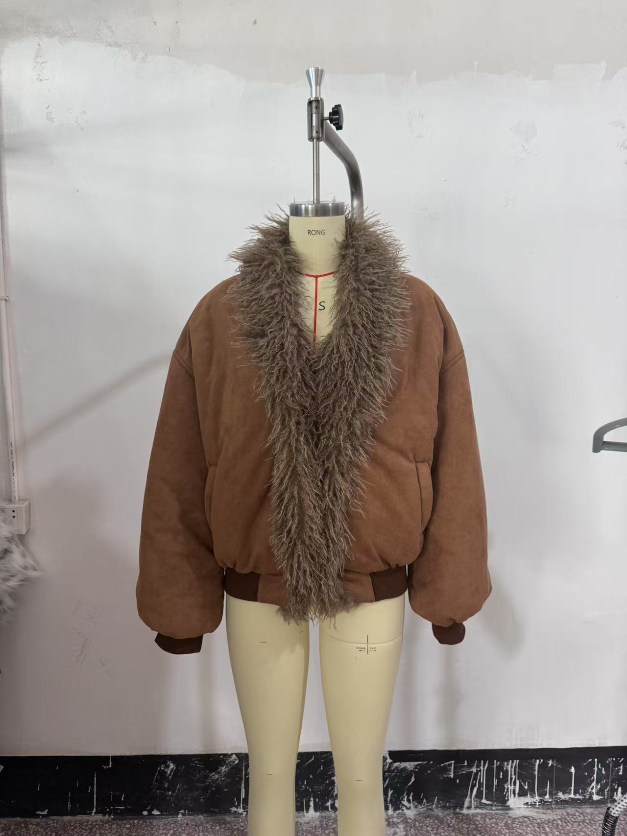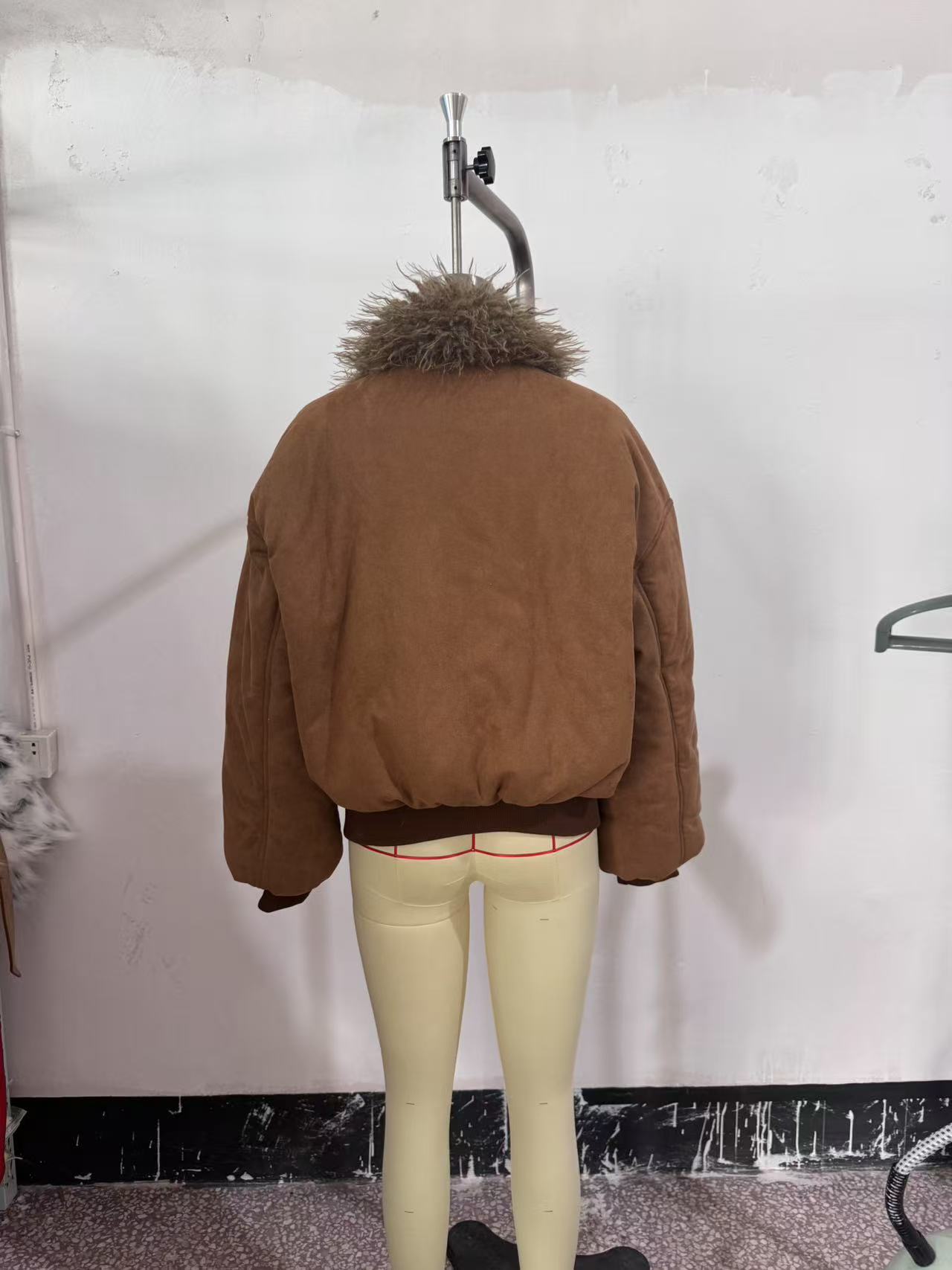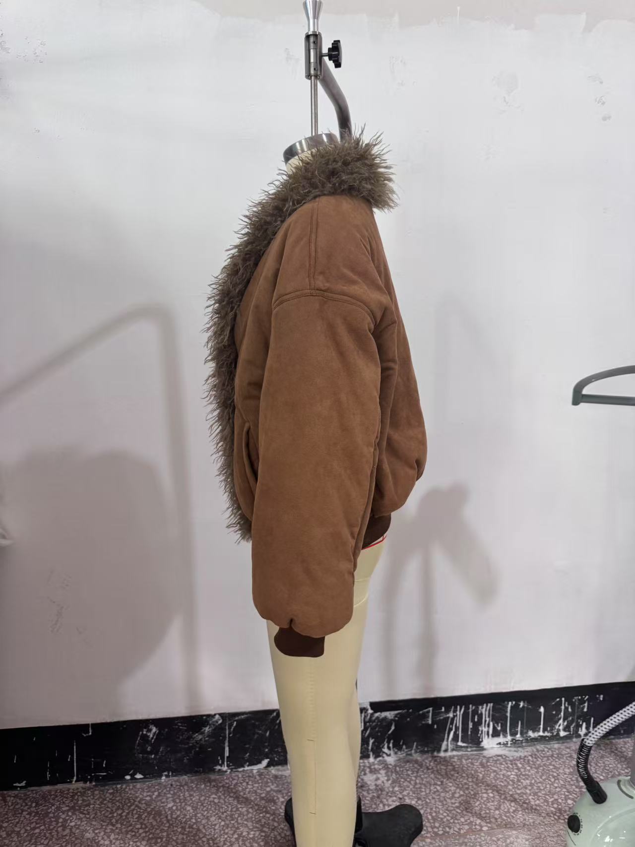 Ropa de Mujer de Comercio Exterior Transfronterizo Invierno 2025 Estilo Europeo y Americano Abrigo Chaqueta de Algodón Suelto Empalmado de Piel Sintética para Mujer C45408
