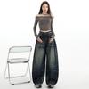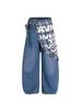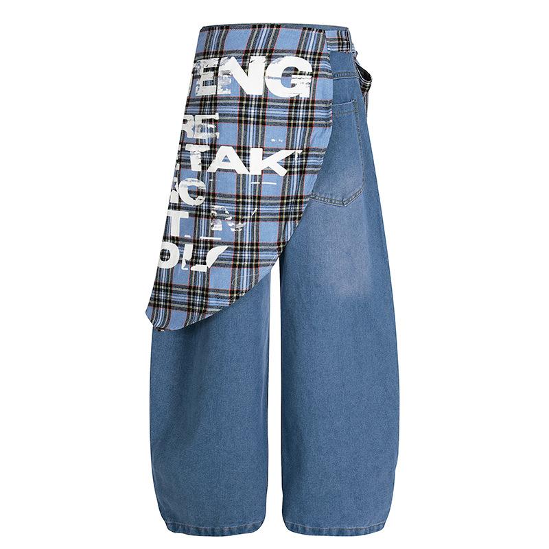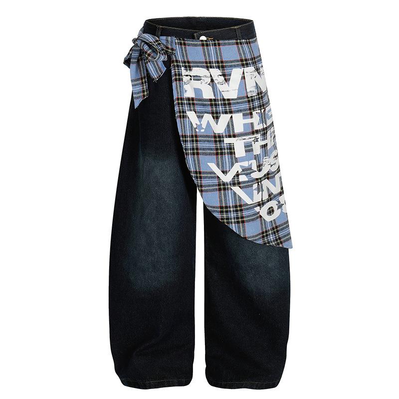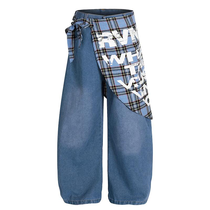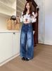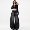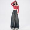 2025 Nuevo Americano Retro Solapa de Trasero Atar Capas Denim Cimitarra Pantalones Primavera y Otoño Pierna Ancha Suelto Pantalones Largos