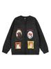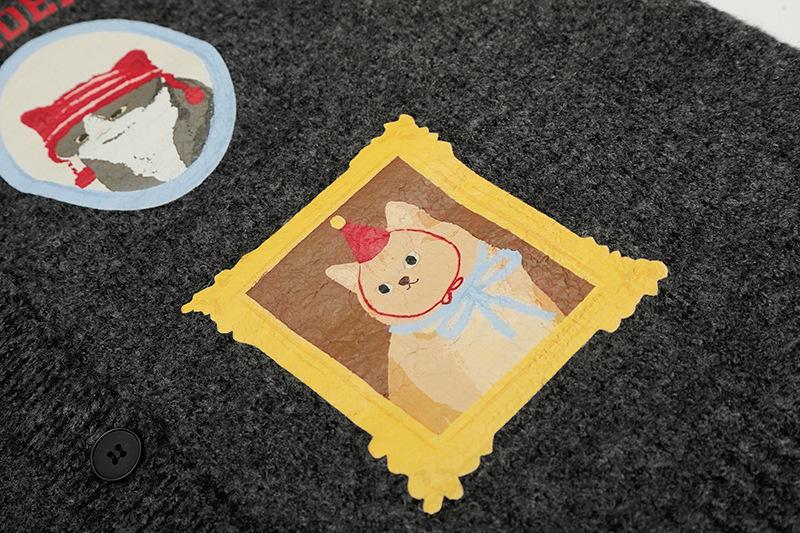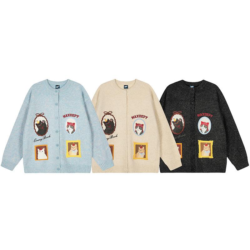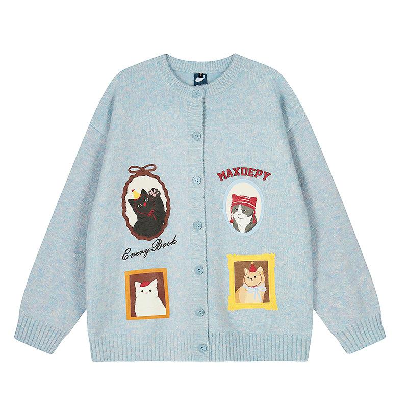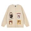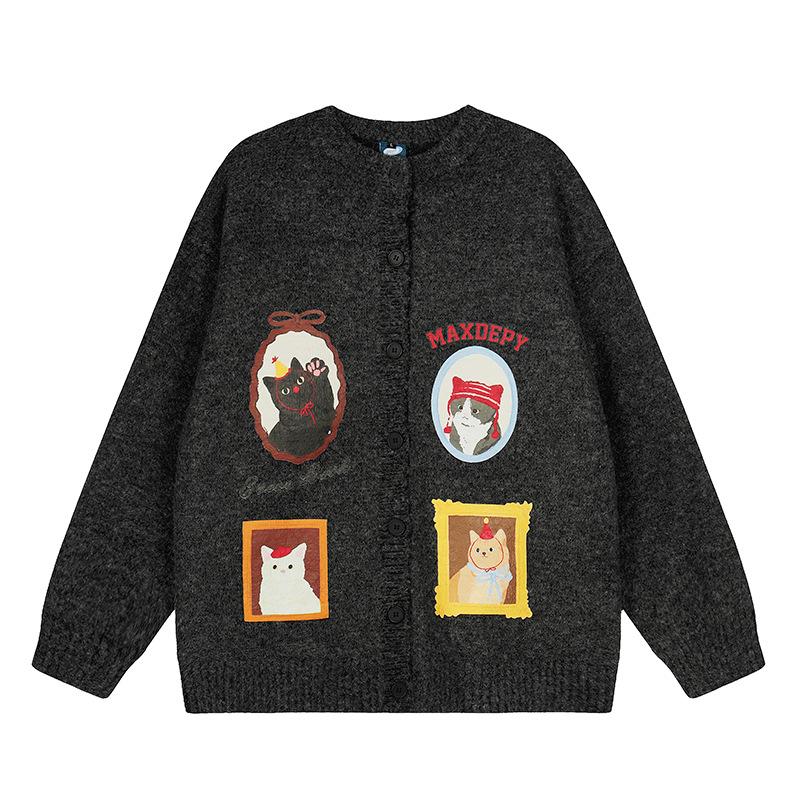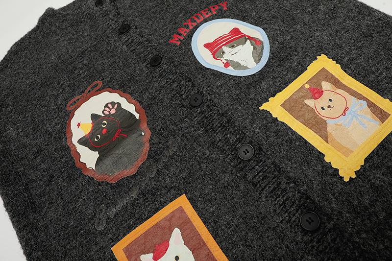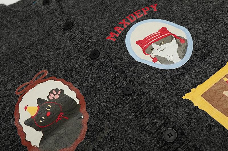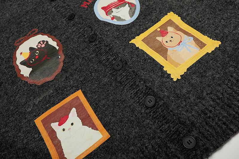 Cárdigan Suéter Americano Retro Divertido con Estampado de Gato para Mujer 2025 Otoño/Invierno Nuevo Cárdigan de Estilo Holgado y Relajado