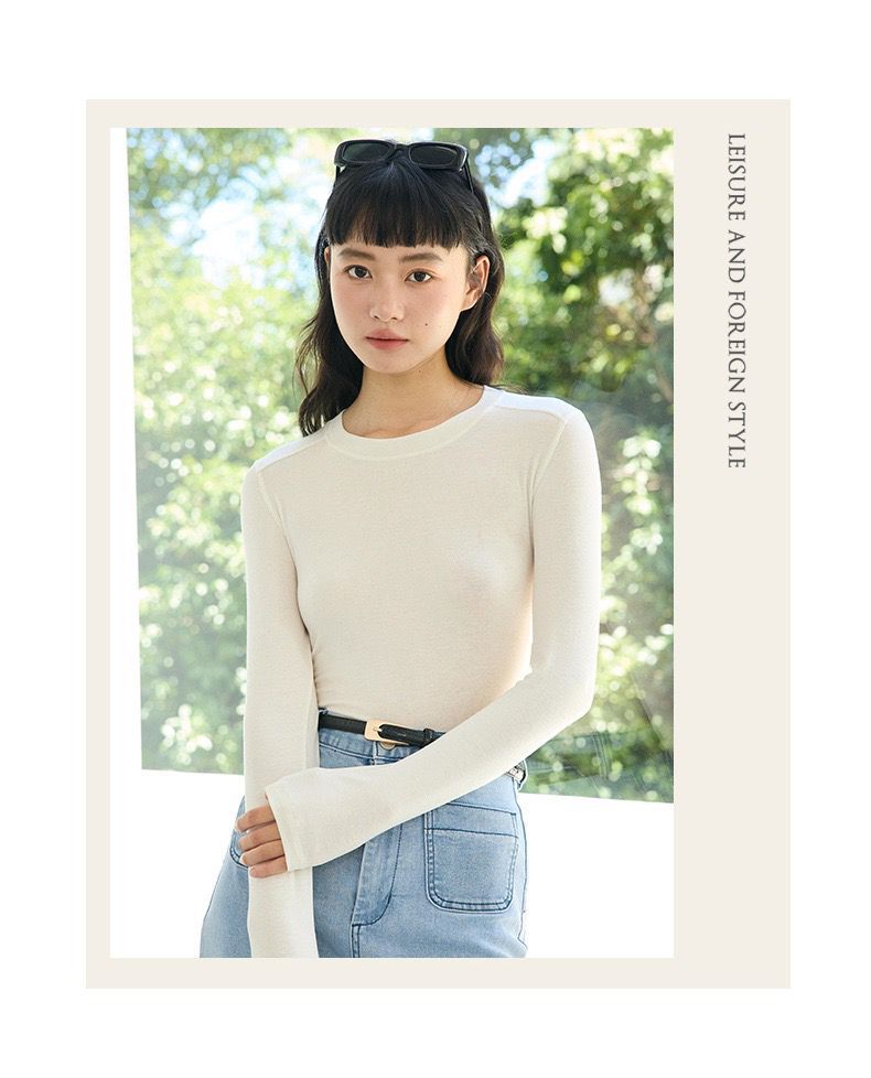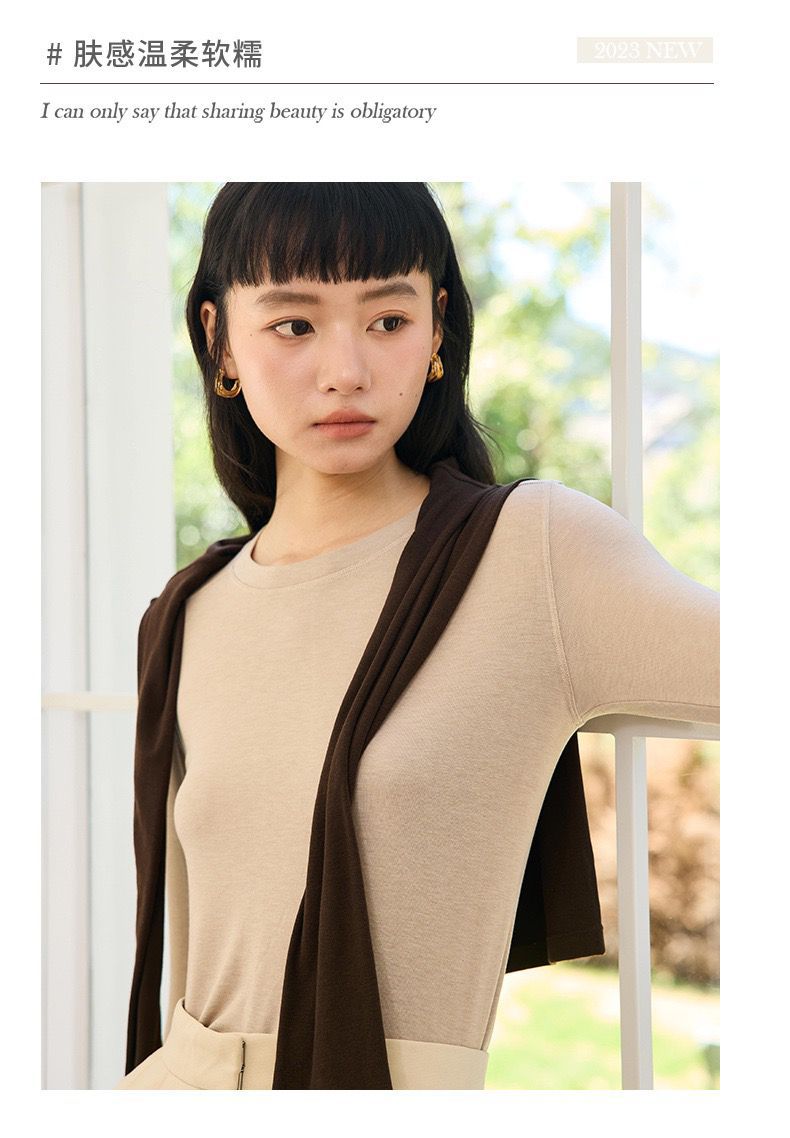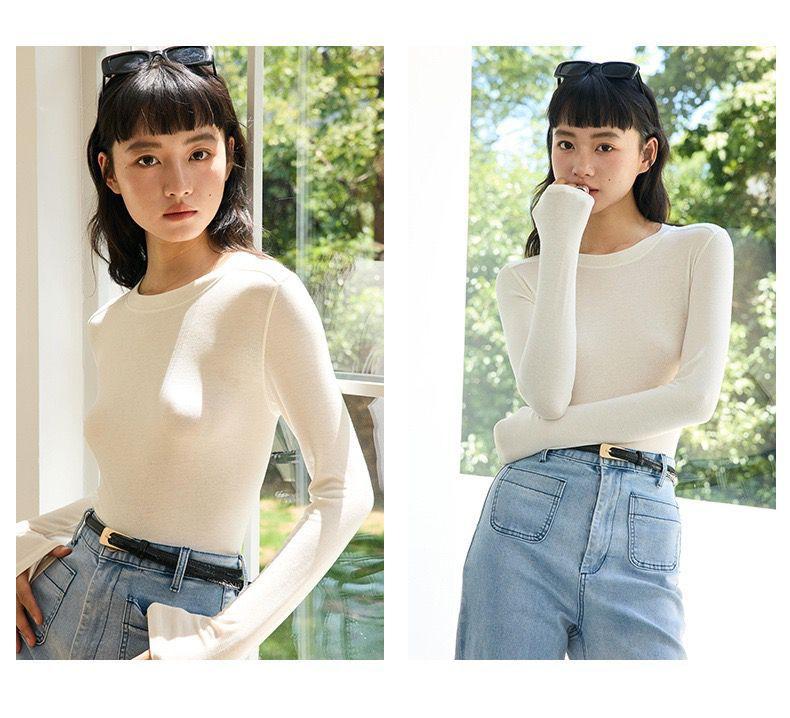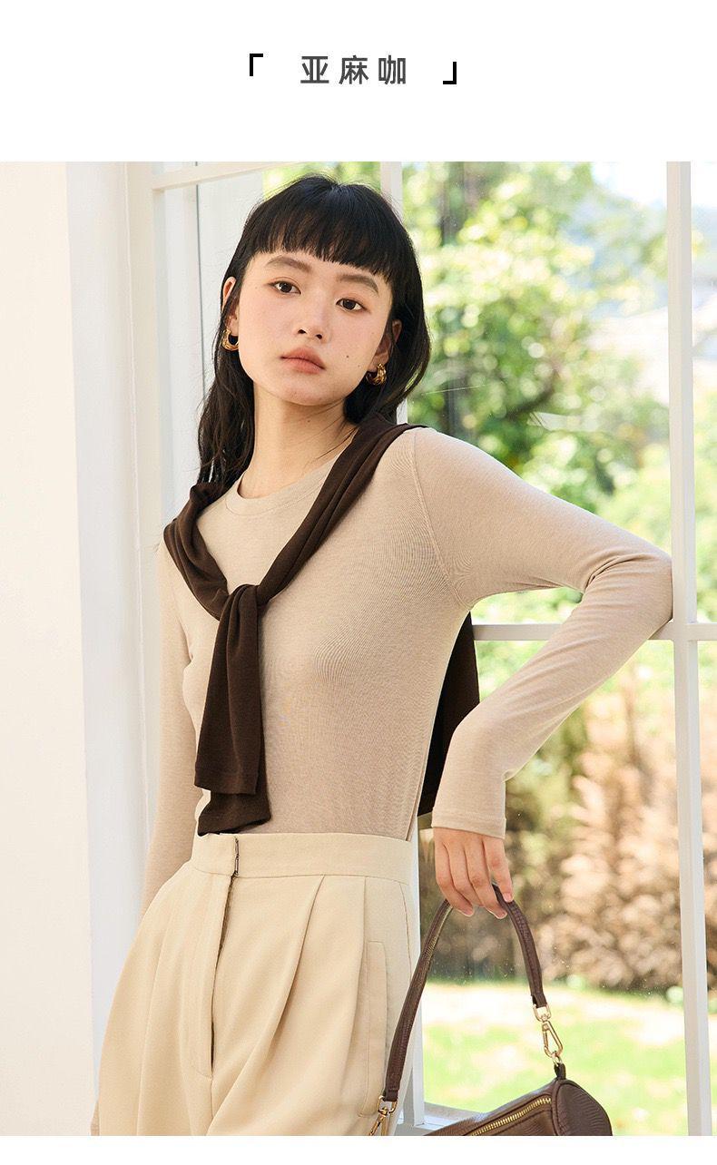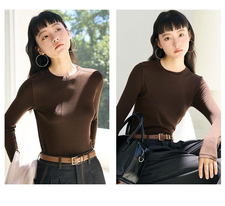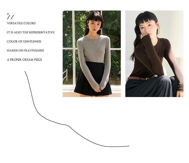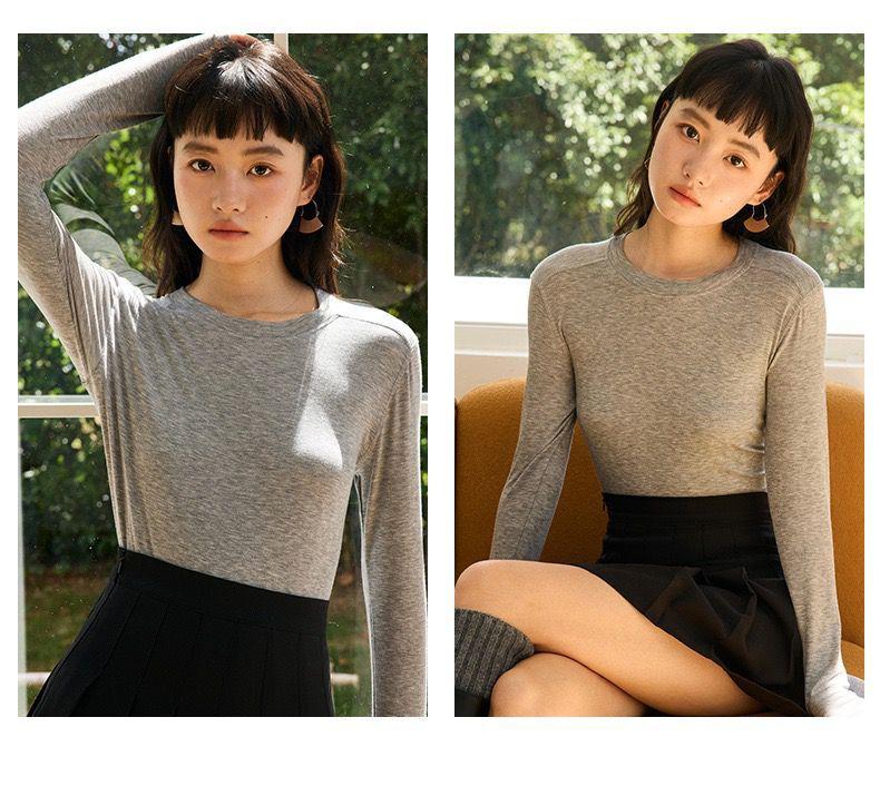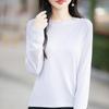 Otoño Nuevo Estilo Imitación Tencel Cuello Redondo Color Sólido Básico para Mujer Fondo Suelto Casual Clásico Jersey Top Simple