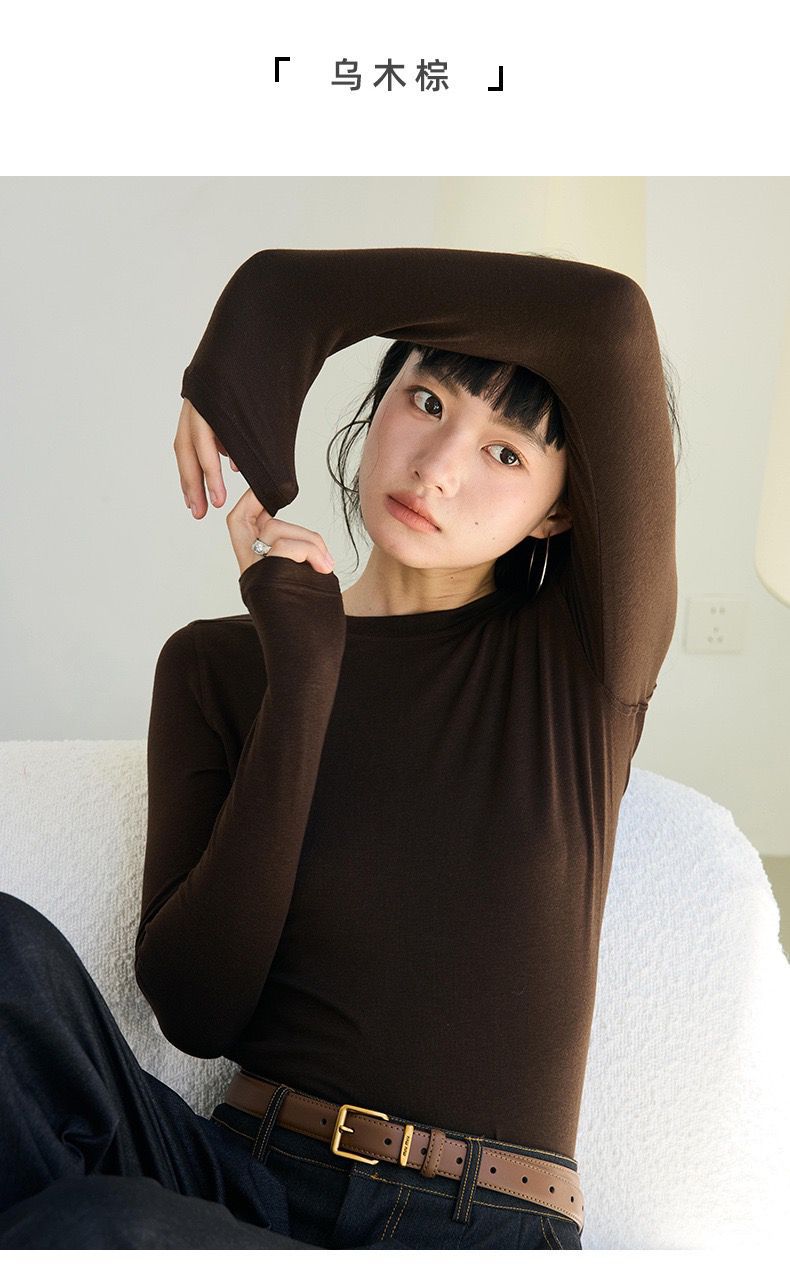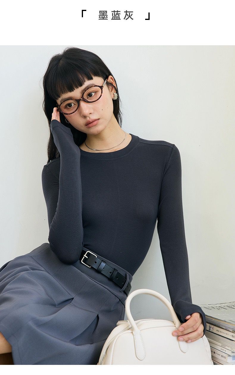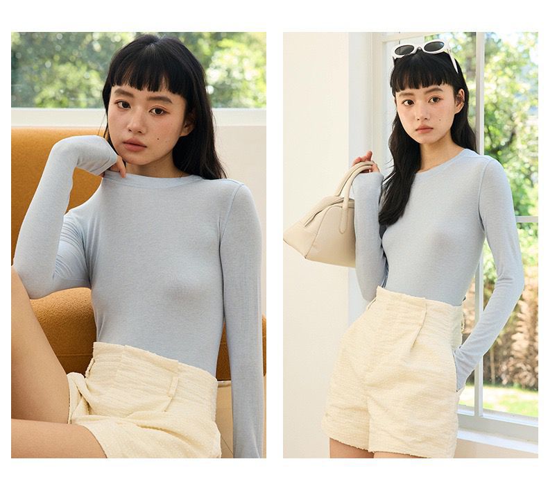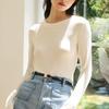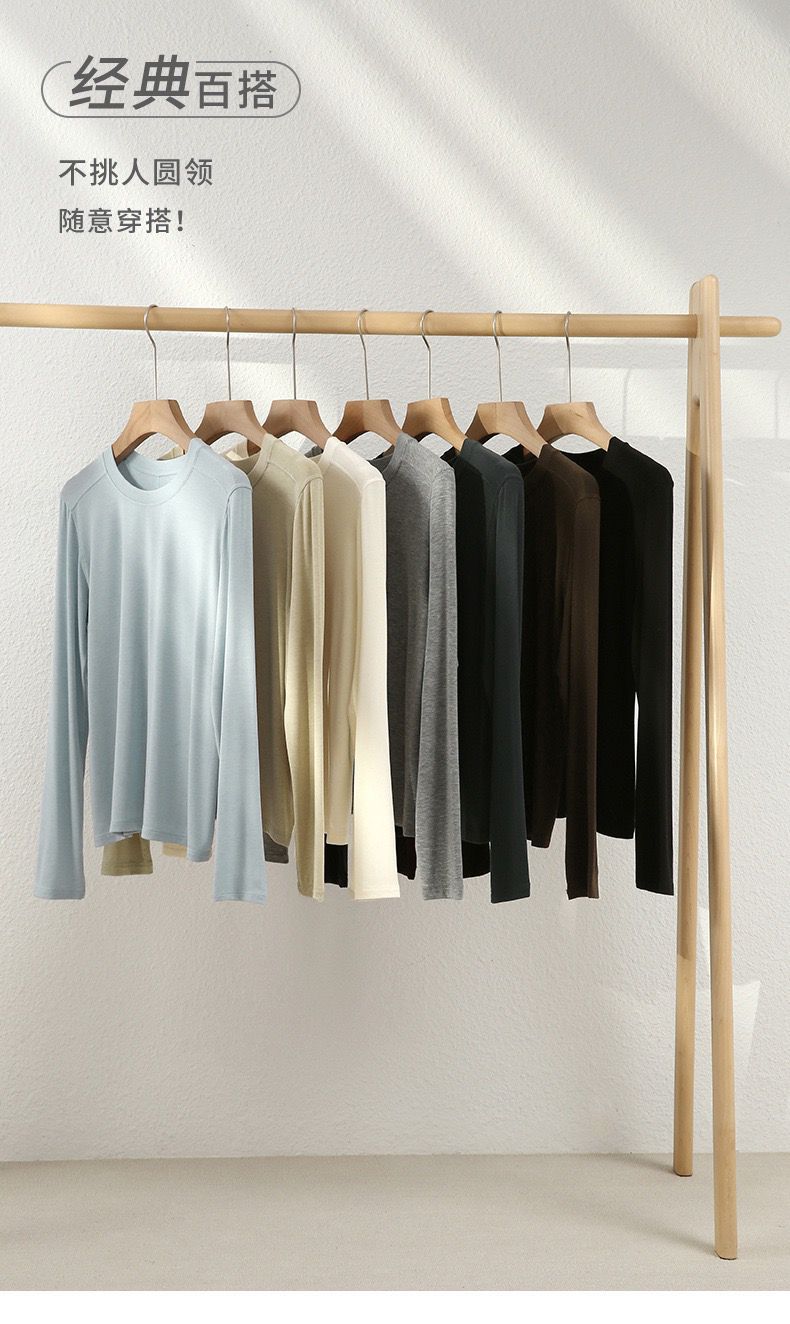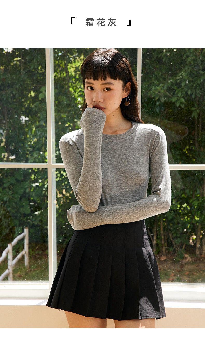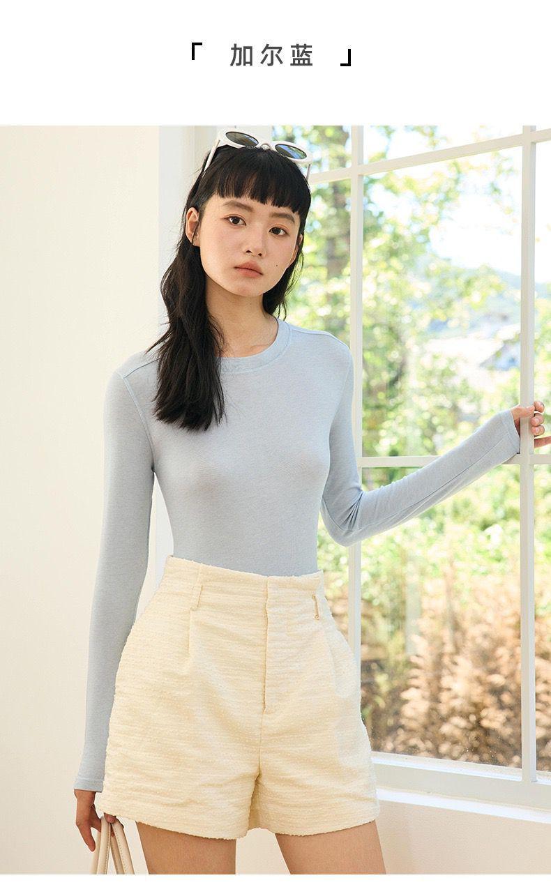 Otoño Nuevo Estilo Imitación Tencel Cuello Redondo Color Sólido Básico para Mujer Fondo Suelto Casual Clásico Jersey Top Simple