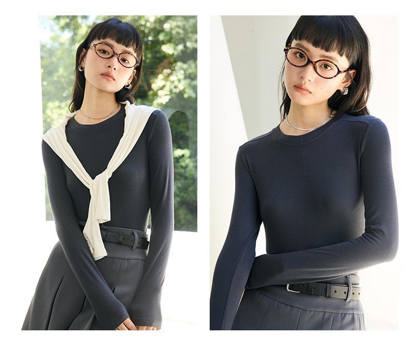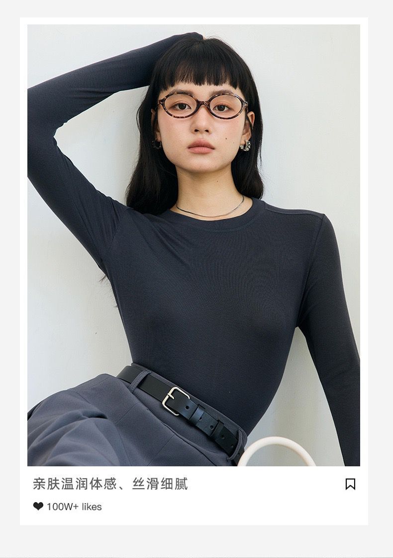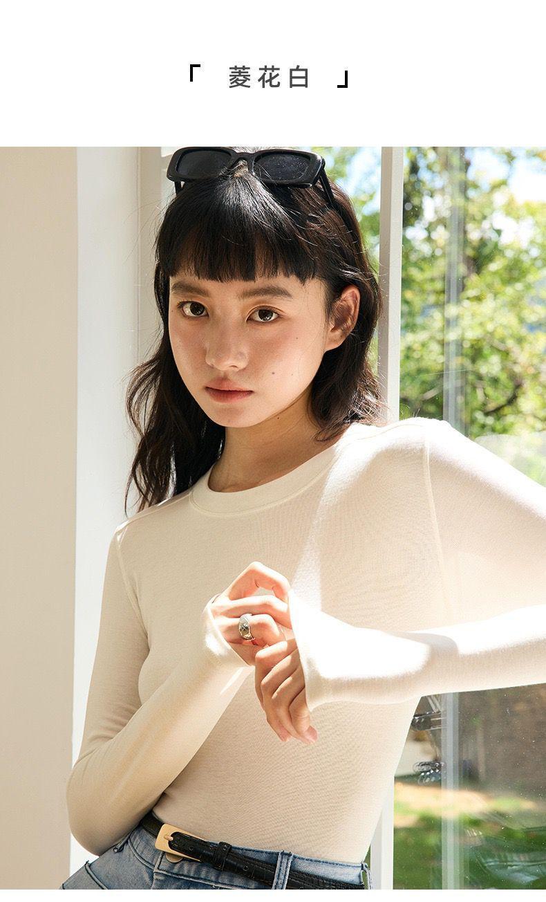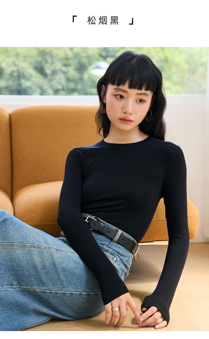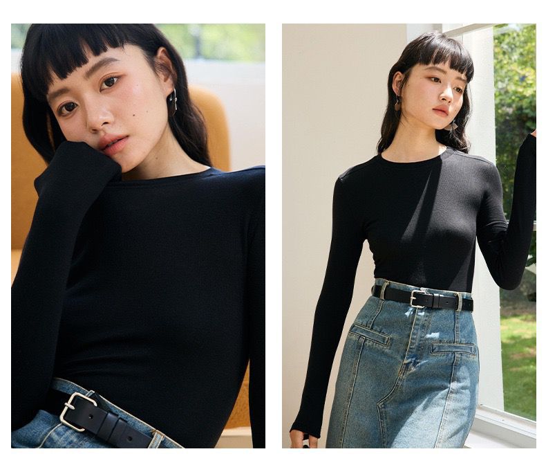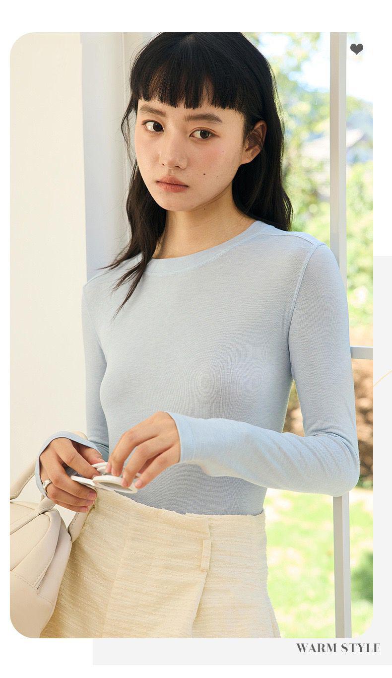 Otoño Nuevo Estilo Imitación Tencel Cuello Redondo Color Sólido Básico para Mujer Fondo Suelto Casual Clásico Jersey Top Simple
