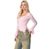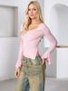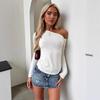 Nuevo top sexy de hombros descubiertos de color sólido de manga larga transfronterizo, diseño francés versátil para mostrar los hombros, camiseta de manga acampanada para chica hot
