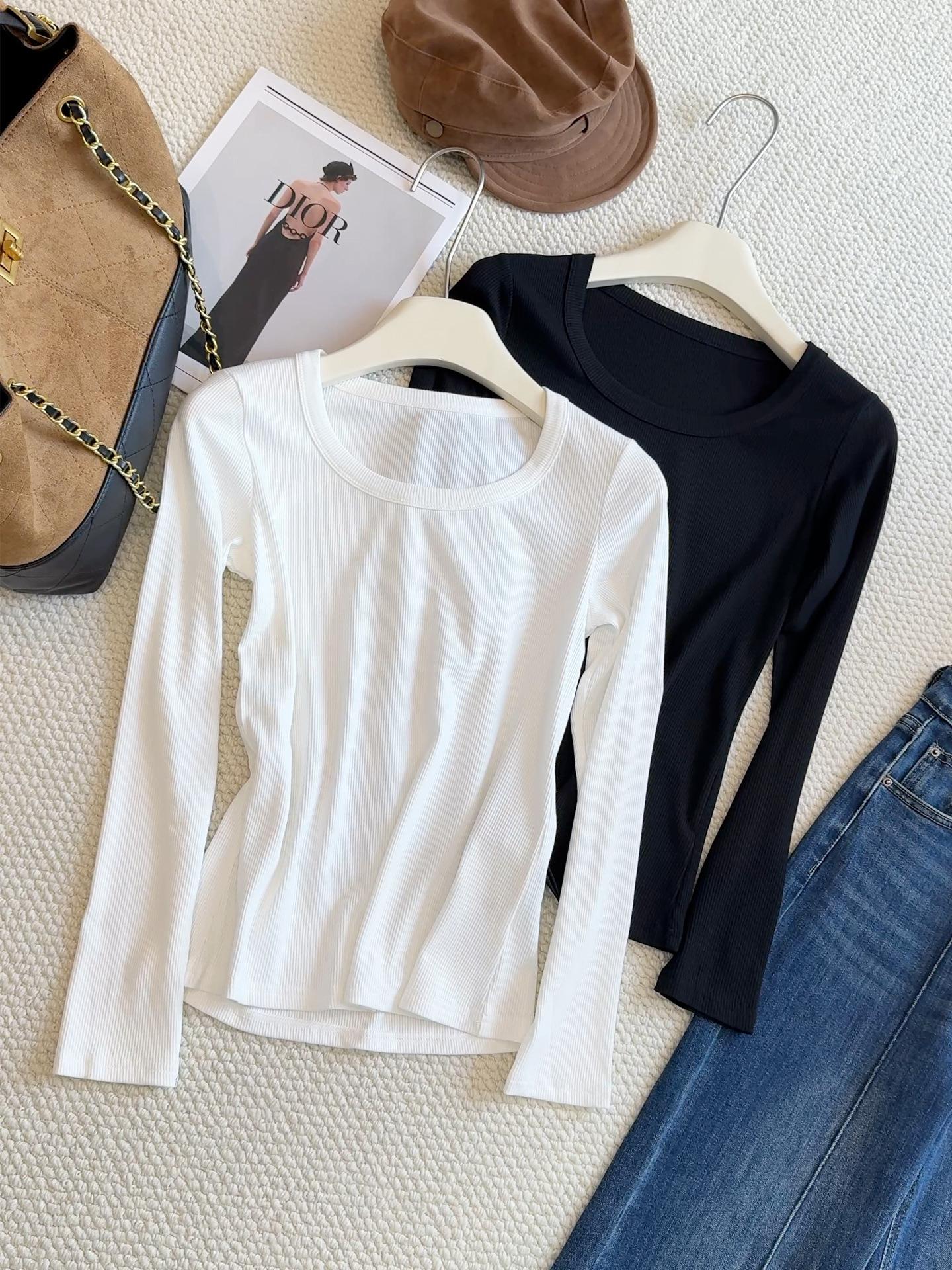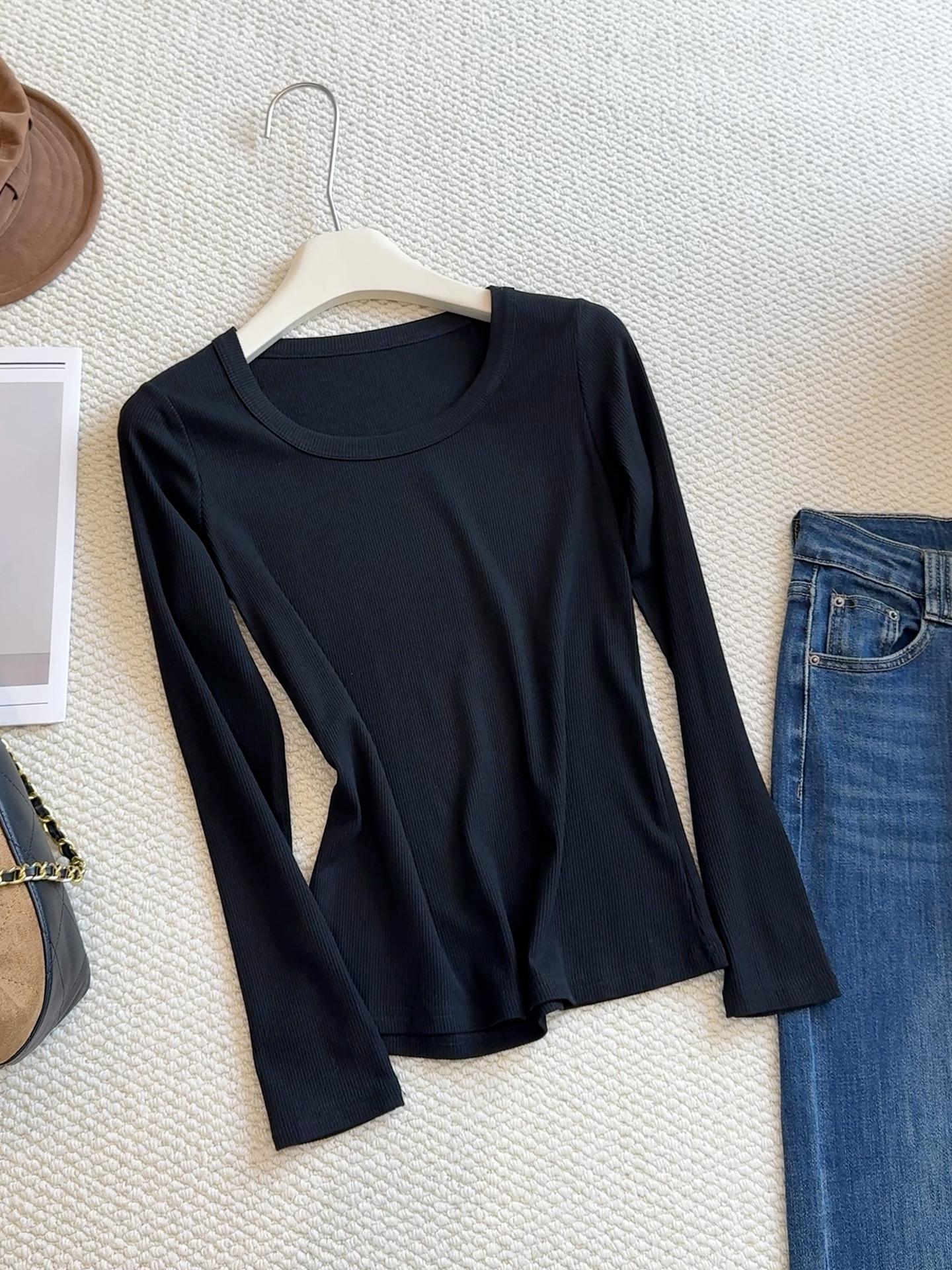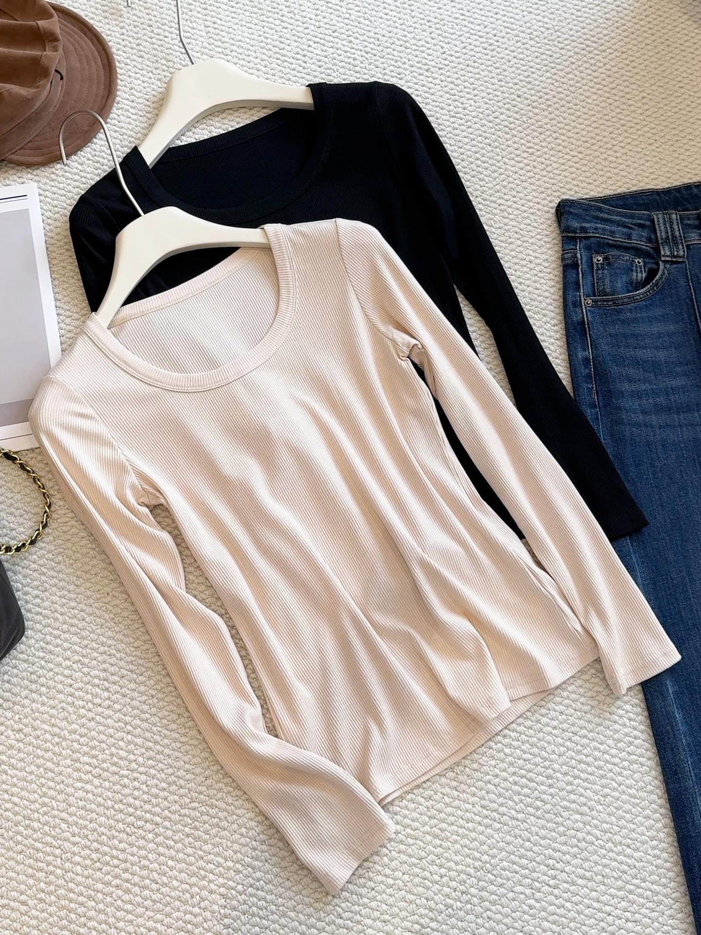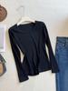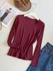 Camiseta básica de cuello en U a la moda para mujer otoño/invierno 2025, camiseta de manga larga ajustada con escote ancho, top de punto acanalado para interior, primavera/otoño