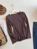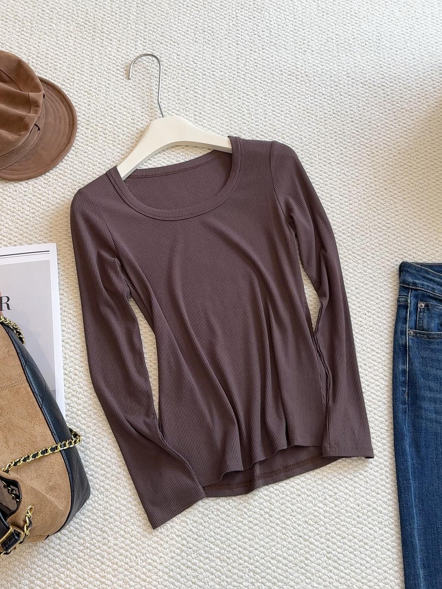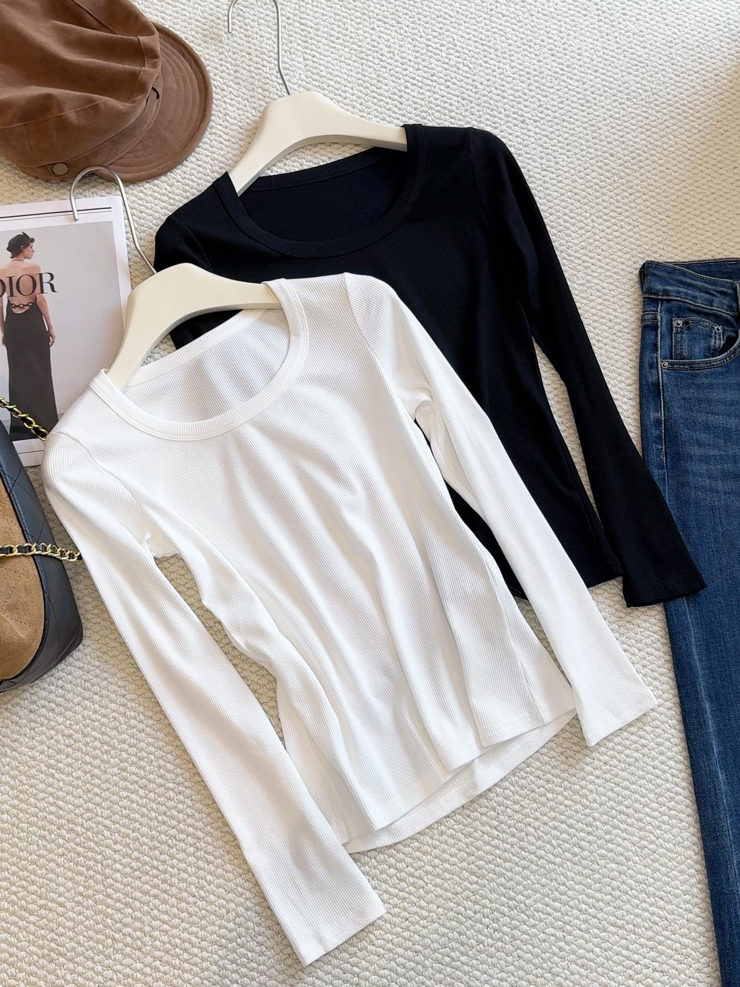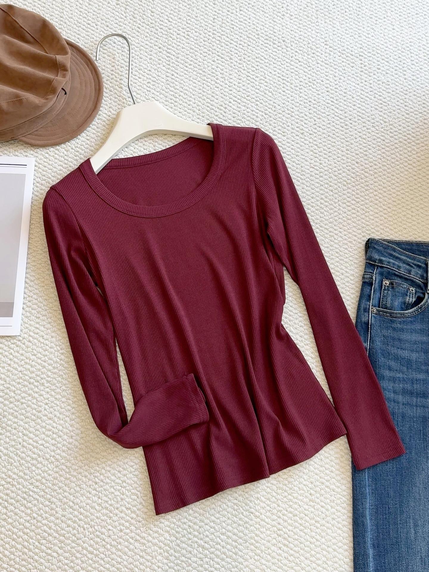 Camiseta básica de cuello en U a la moda para mujer otoño/invierno 2025, camiseta de manga larga ajustada con escote ancho, top de punto acanalado para interior, primavera/otoño