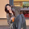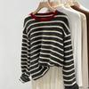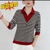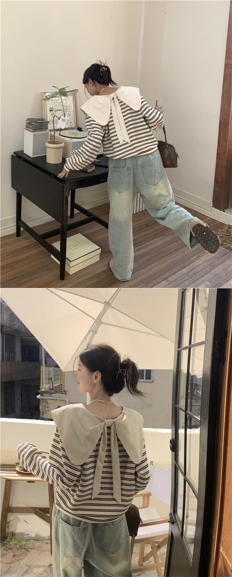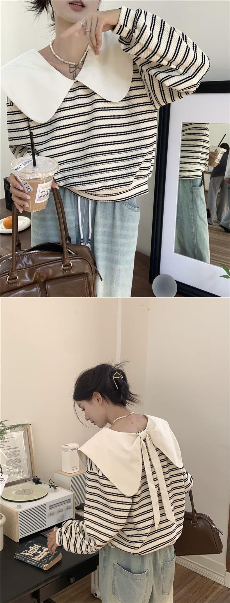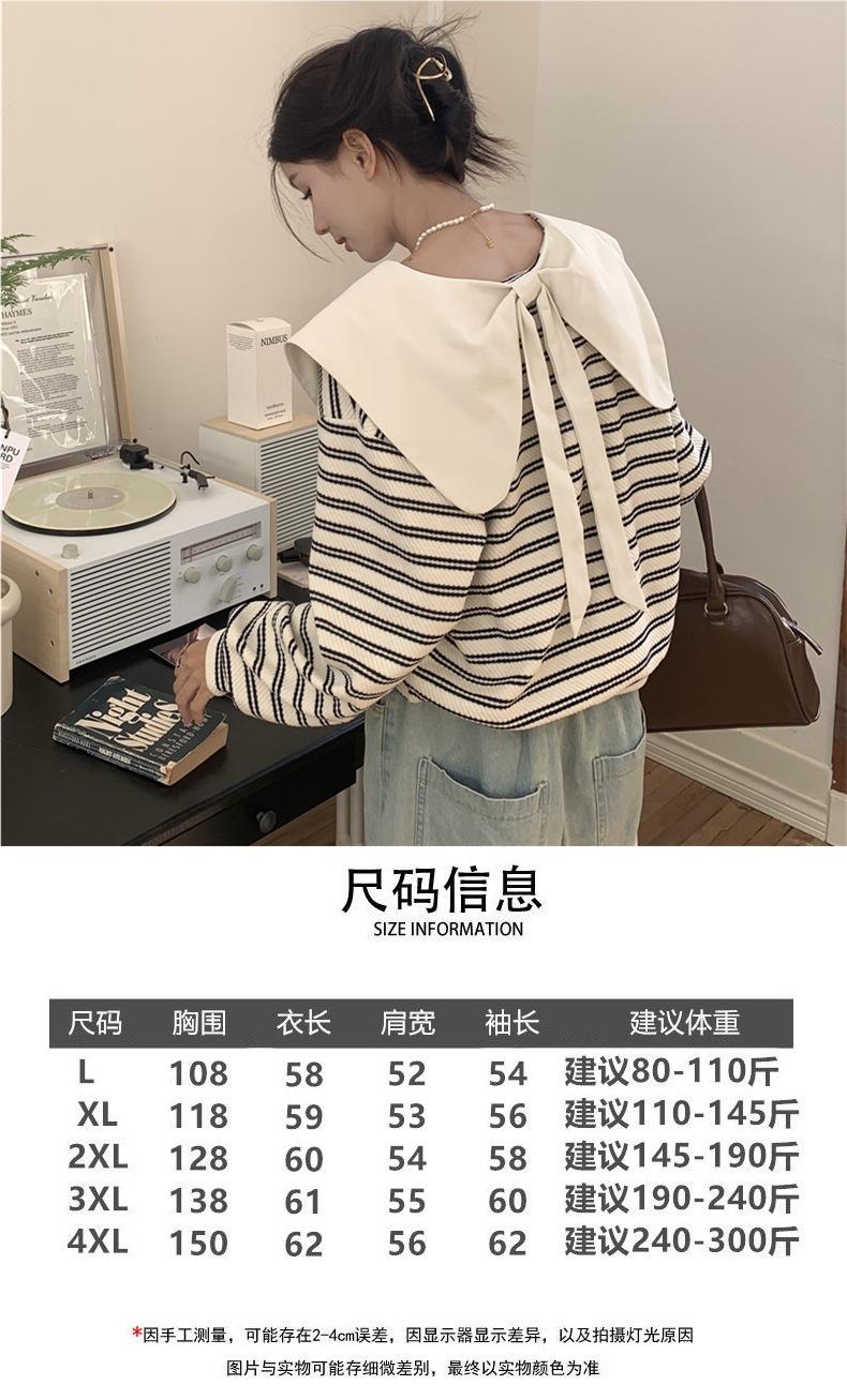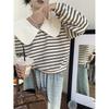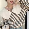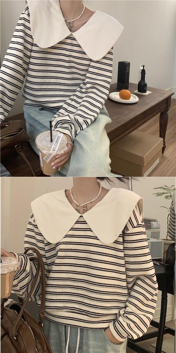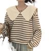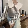 Producto nuevo producto nuevo talla grande sudadera de manga larga a rayas con cuello Peter Pan para mujer otoño producto nuevo estilo coreano que reduce la edad top chic a la moda