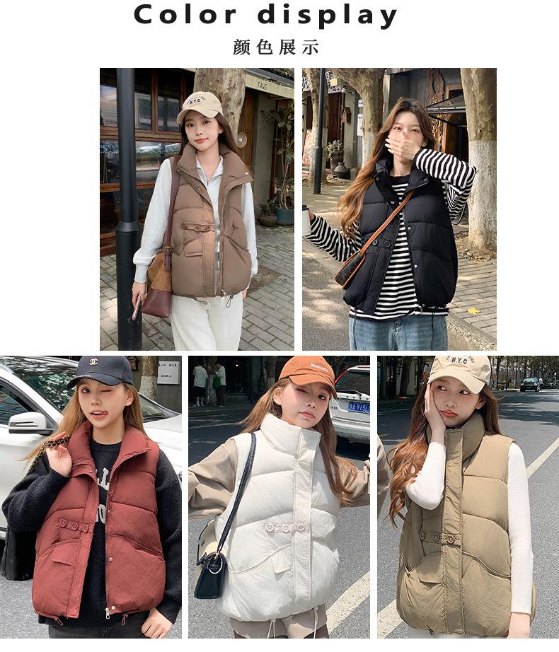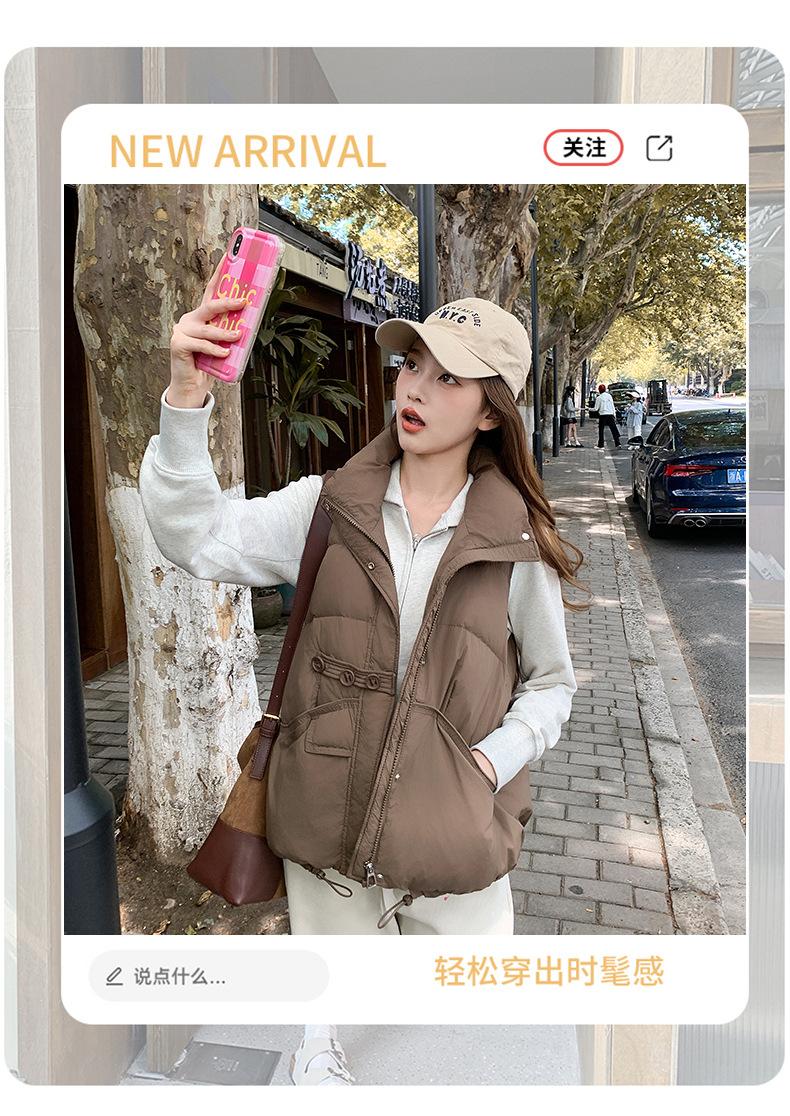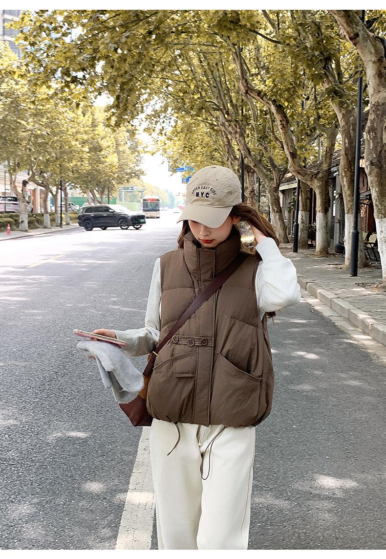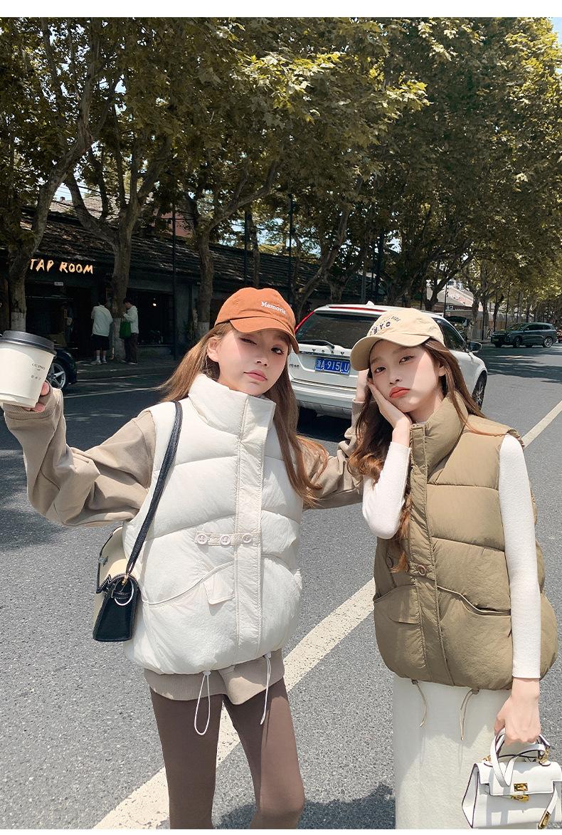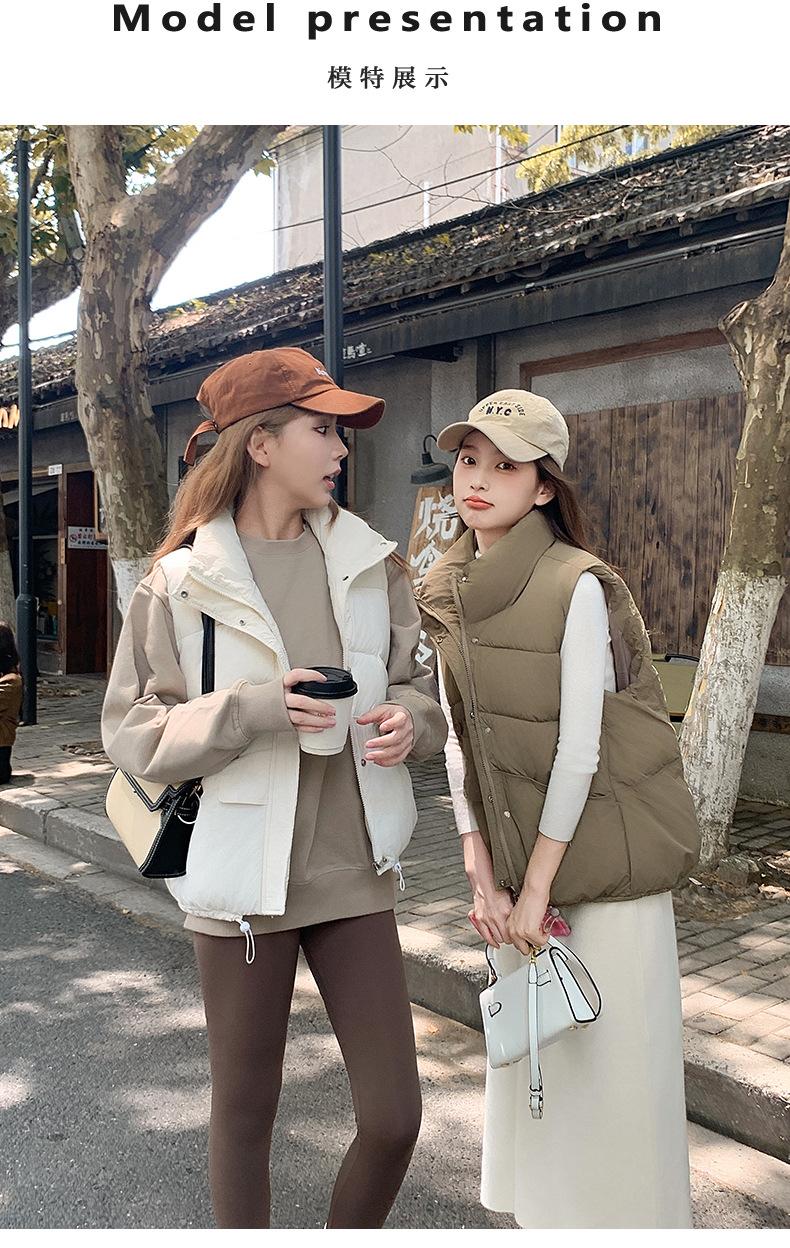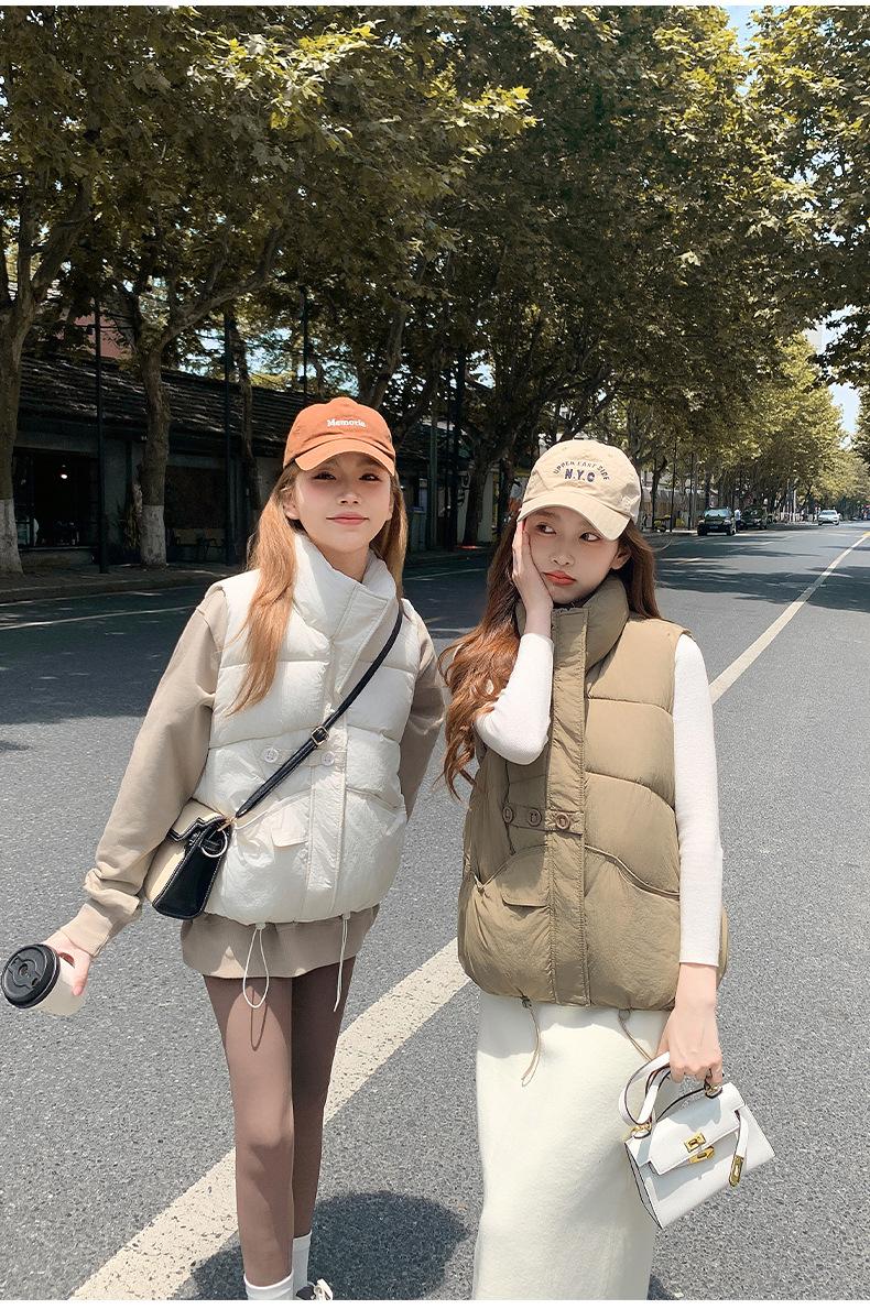 Chaleco de Algodón Acolchado de Plumón Estilo Nuevo Otoño/Invierno 2025 para Mujer Ropa Exterior Versátil Chaleco de Algodón Casual Cuello Alto Chaqueta sin Mangas Chaleco Abrigo Tendencia