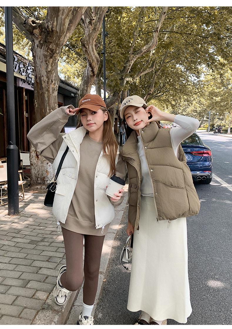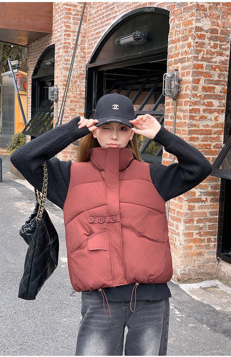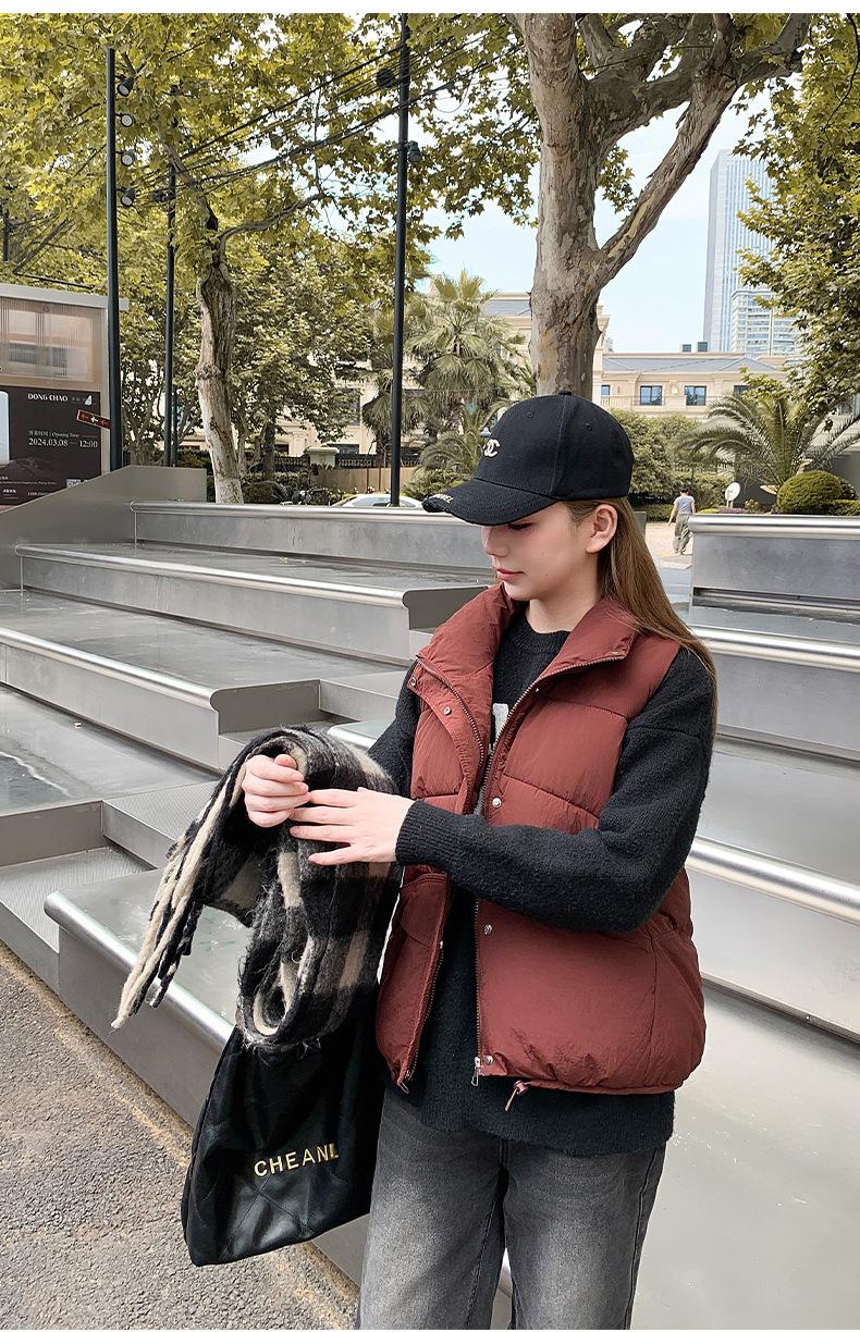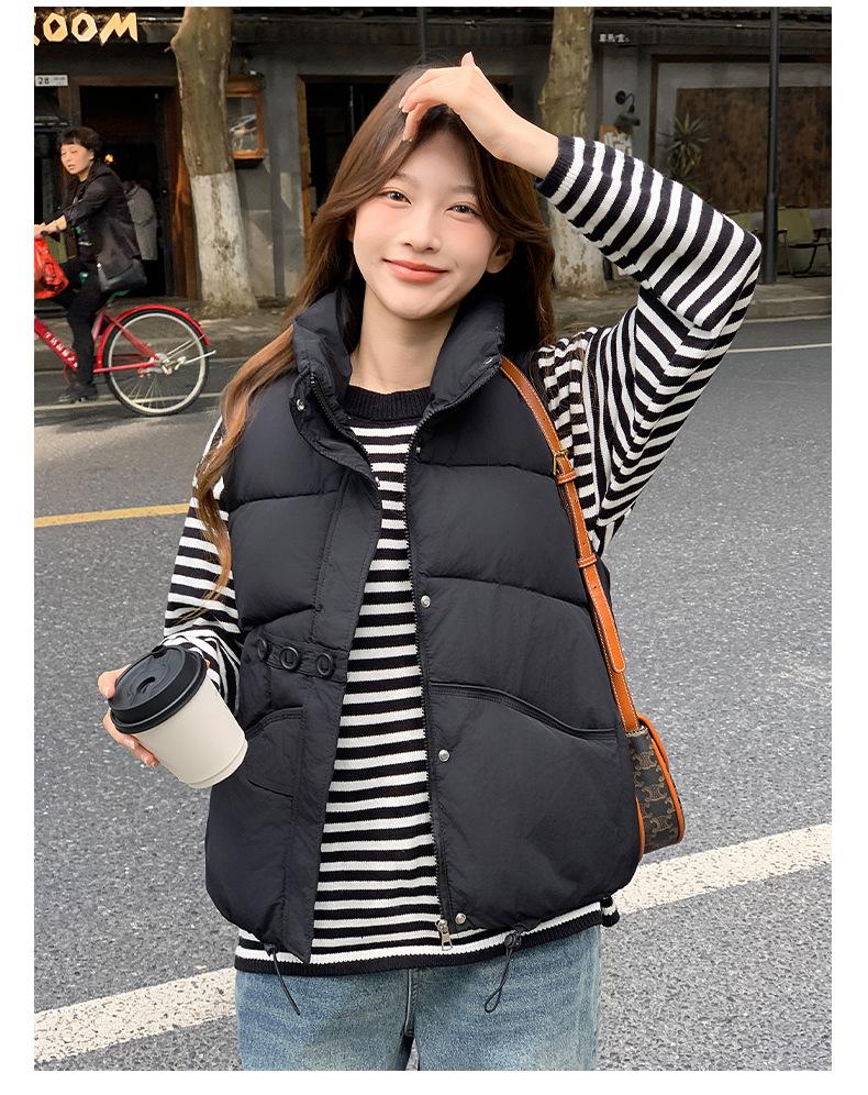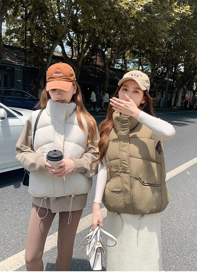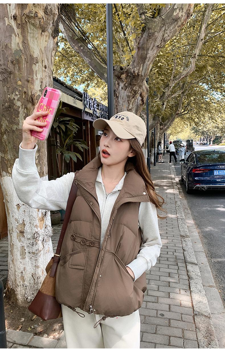 Chaleco de Algodón Acolchado de Plumón Estilo Nuevo Otoño/Invierno 2025 para Mujer Ropa Exterior Versátil Chaleco de Algodón Casual Cuello Alto Chaqueta sin Mangas Chaleco Abrigo Tendencia