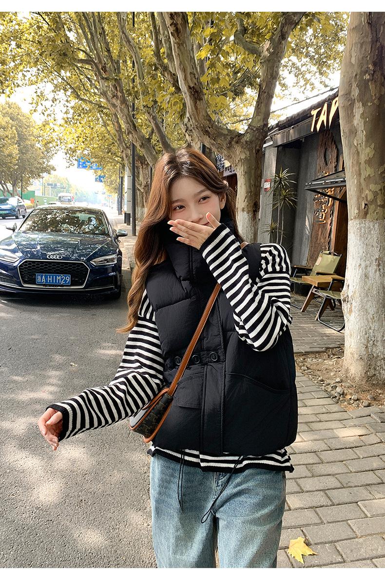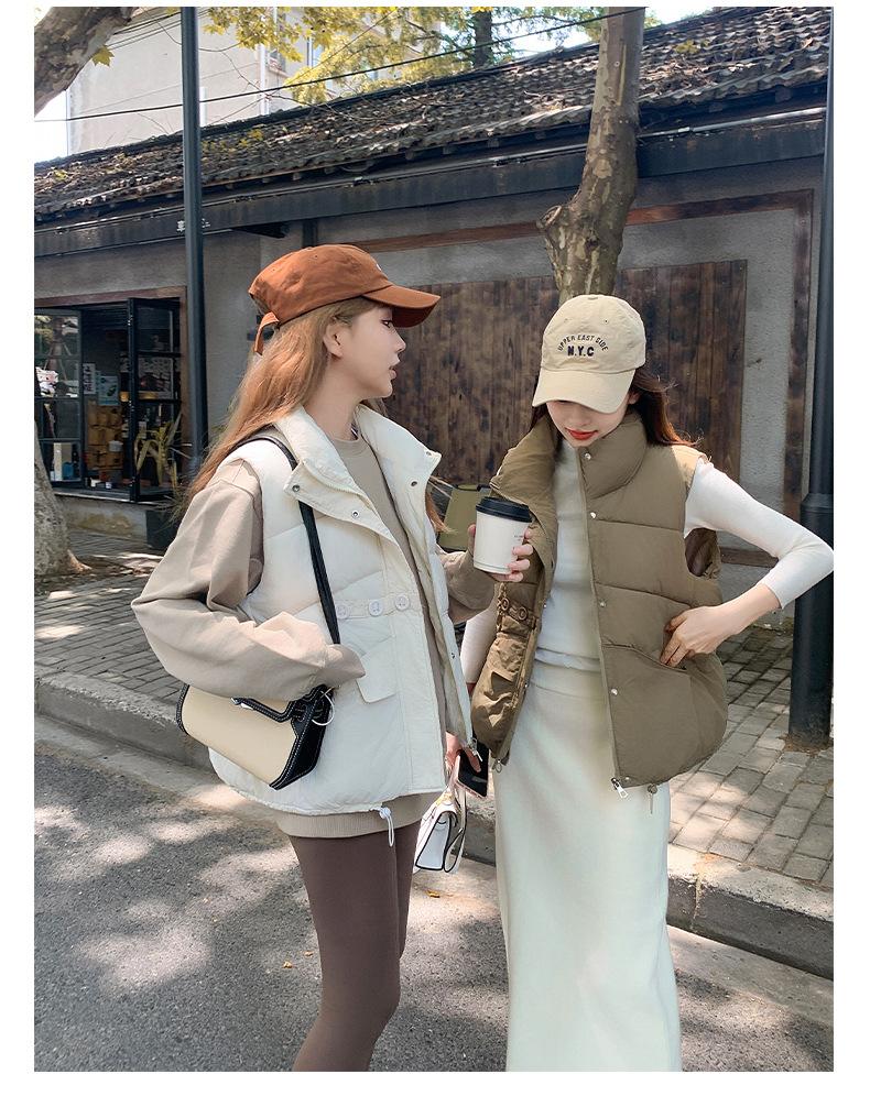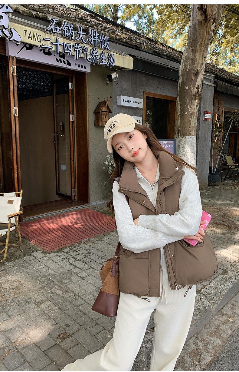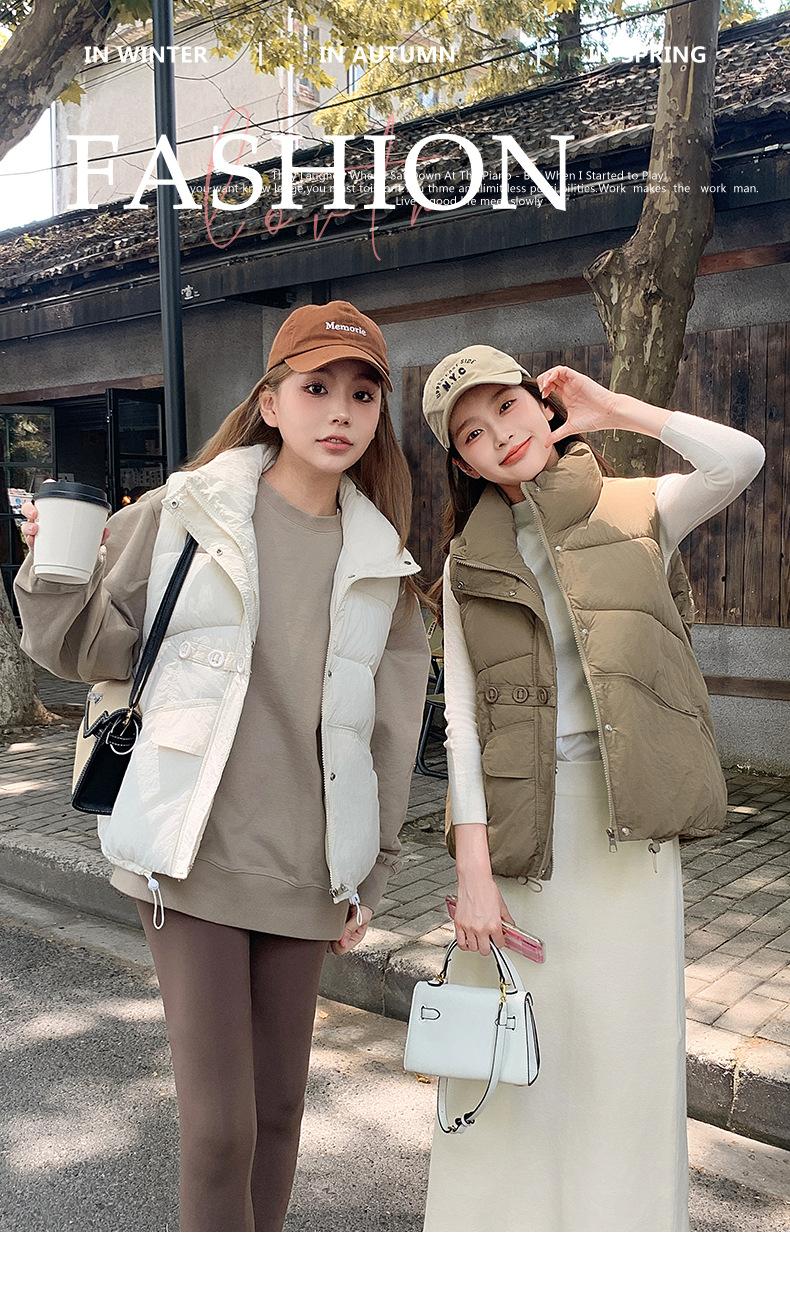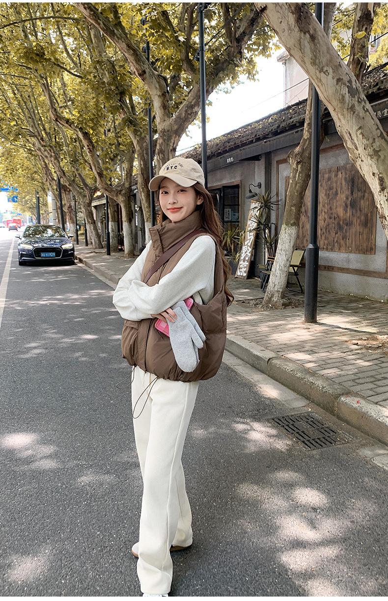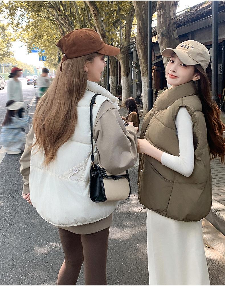 Chaleco de Algodón Acolchado de Plumón Estilo Nuevo Otoño/Invierno 2025 para Mujer Ropa Exterior Versátil Chaleco de Algodón Casual Cuello Alto Chaqueta sin Mangas Chaleco Abrigo Tendencia