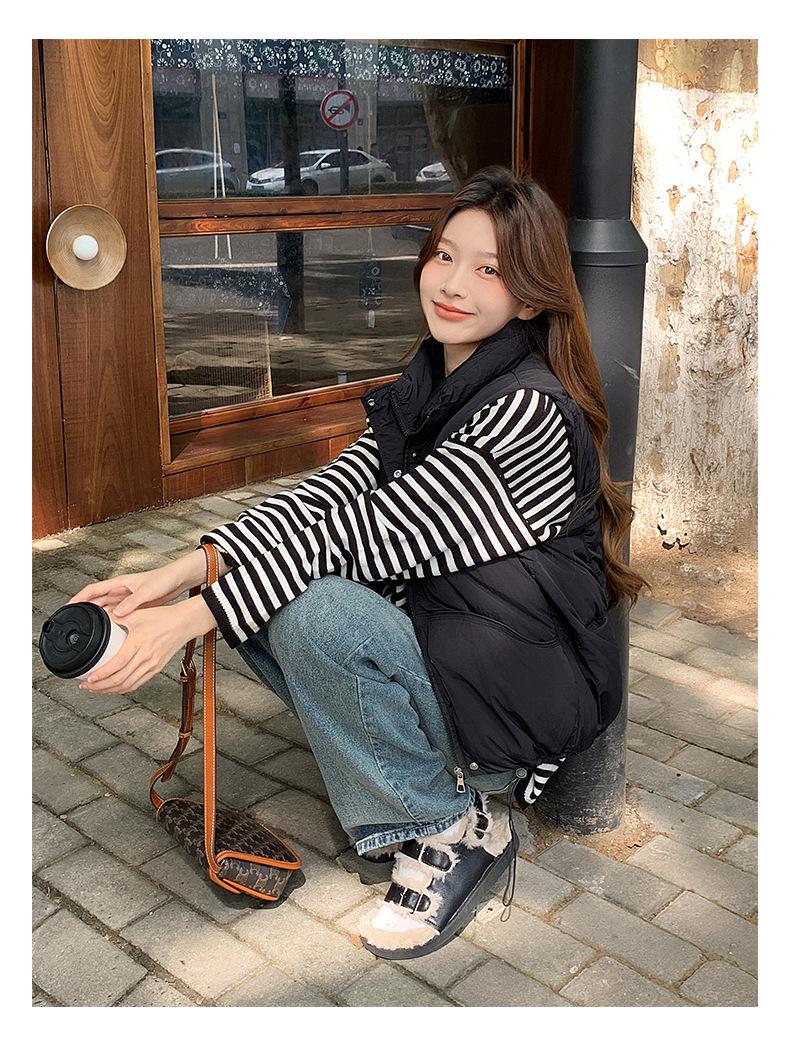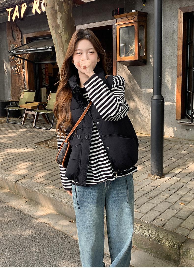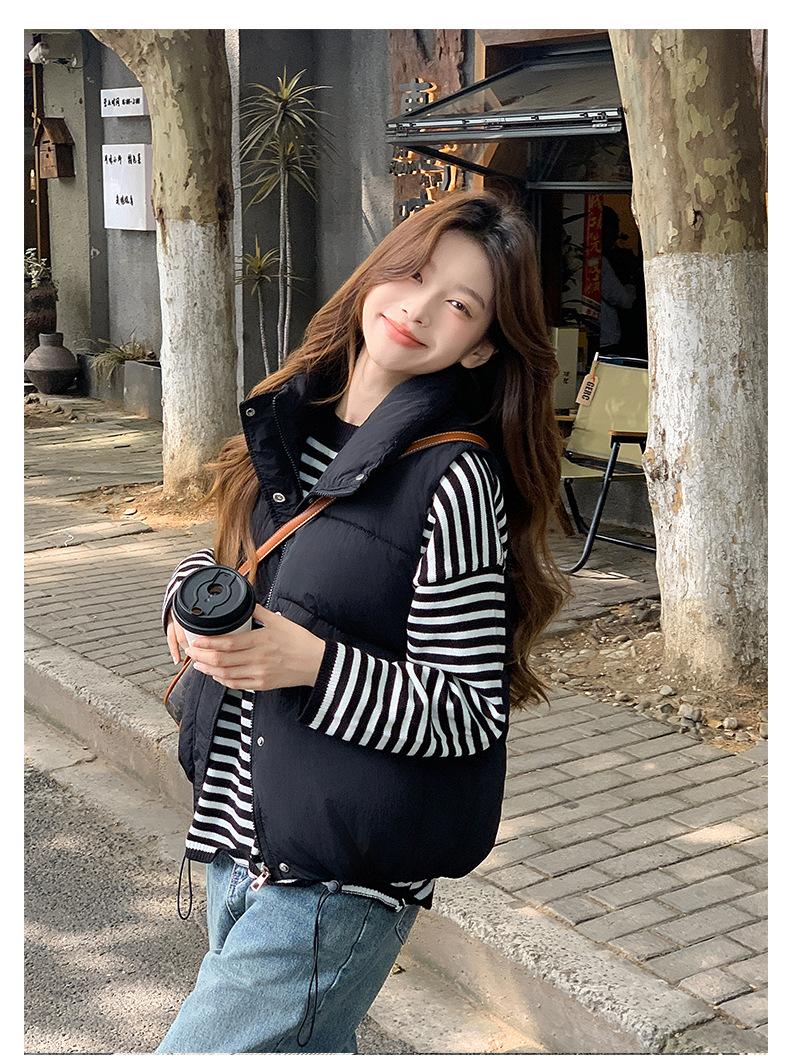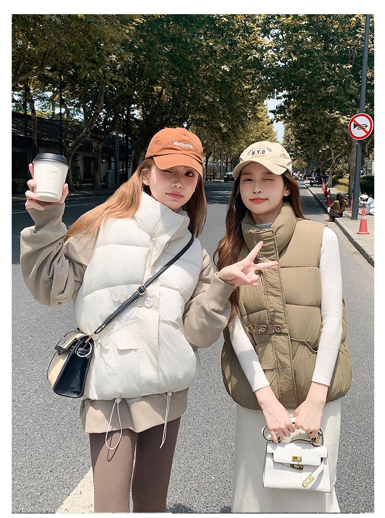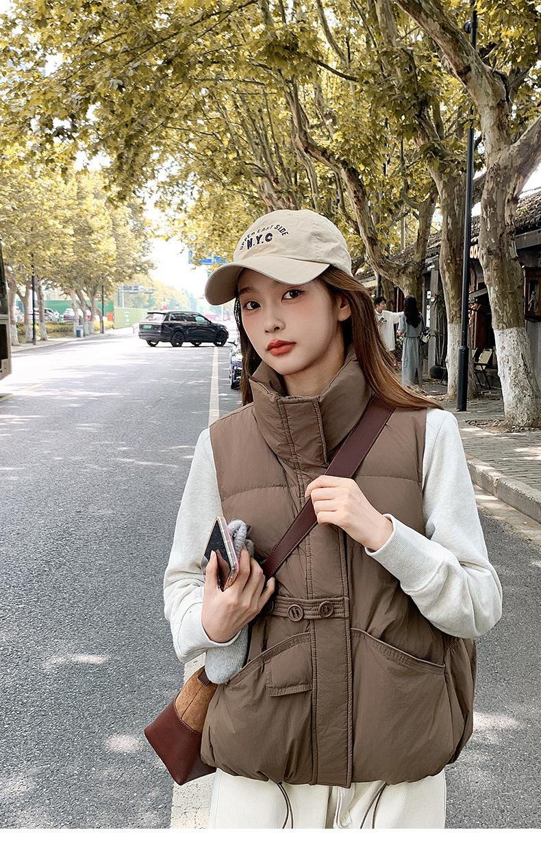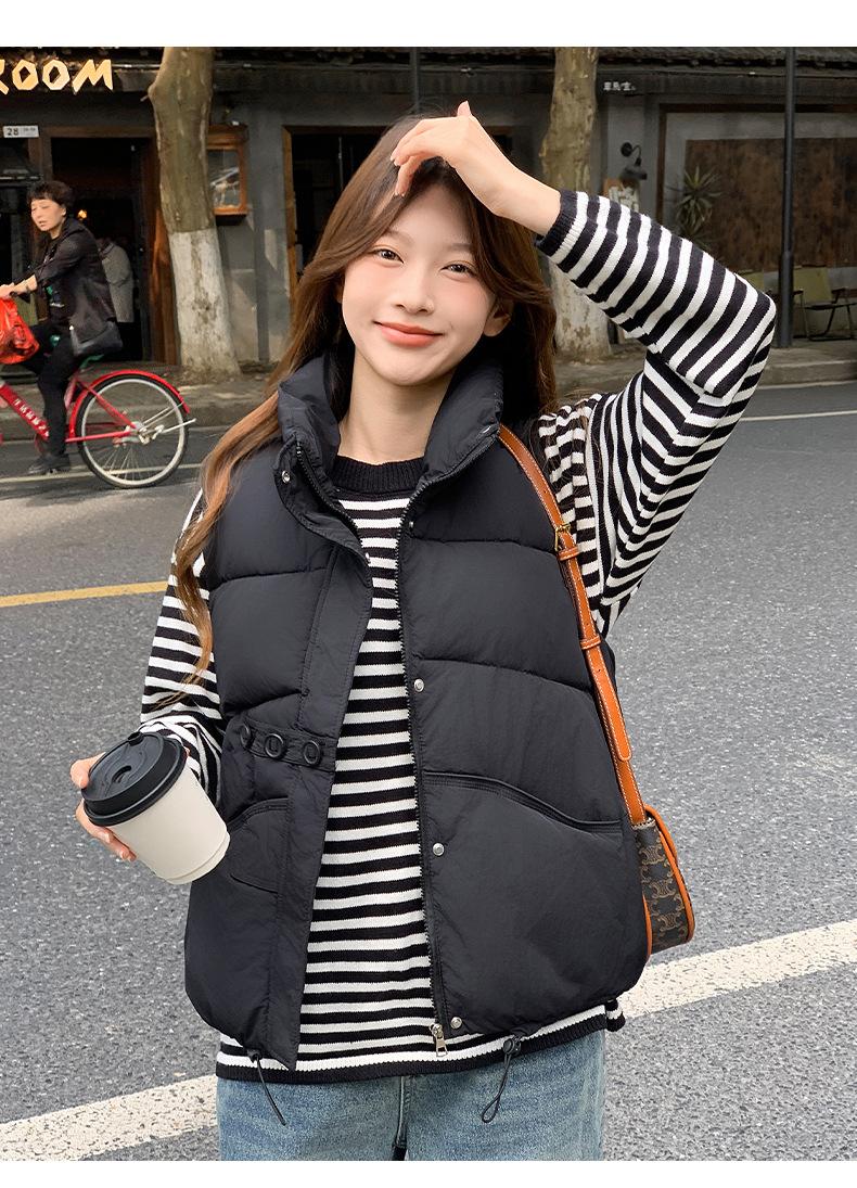 Chaleco de Algodón Acolchado de Plumón Estilo Nuevo Otoño/Invierno 2025 para Mujer Ropa Exterior Versátil Chaleco de Algodón Casual Cuello Alto Chaqueta sin Mangas Chaleco Abrigo Tendencia