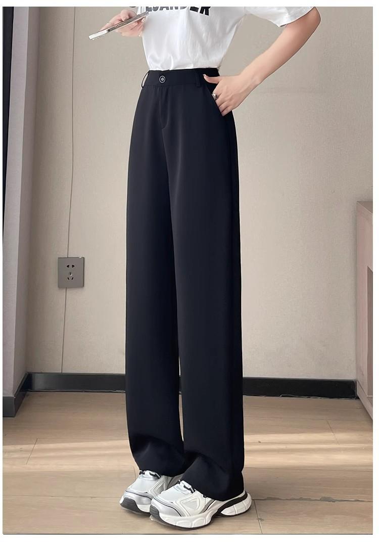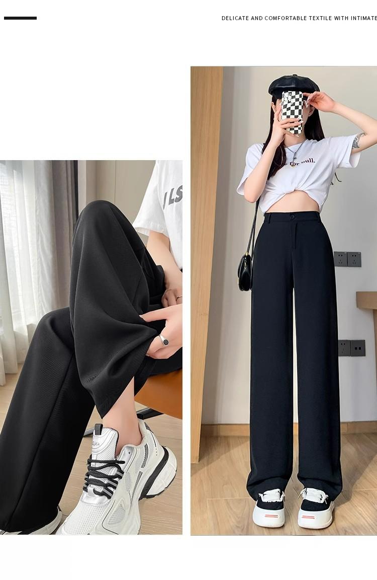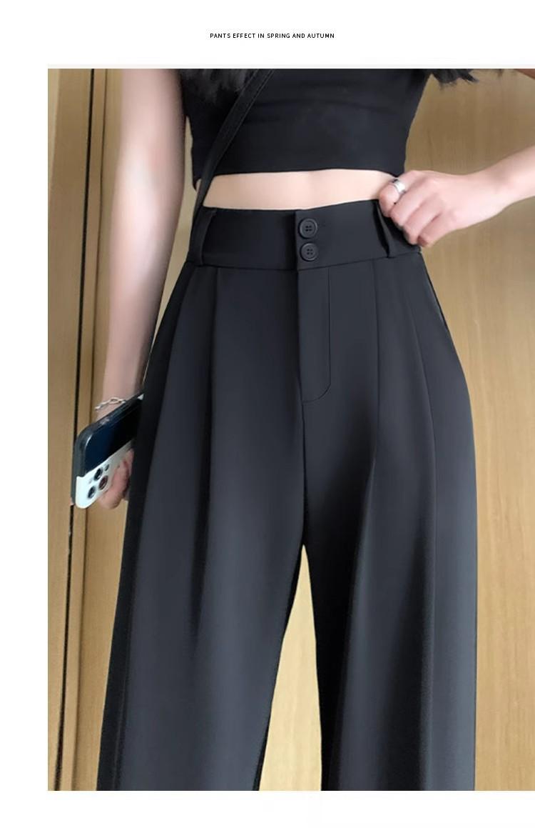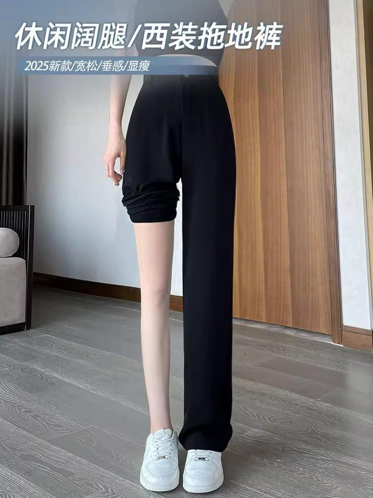 Pantalones de Traje Negros para Mujer Verano Delgados 2025 Nuevos Tiro Alto Rectos Sueltos Casuales Estrechos Pierna Ancha