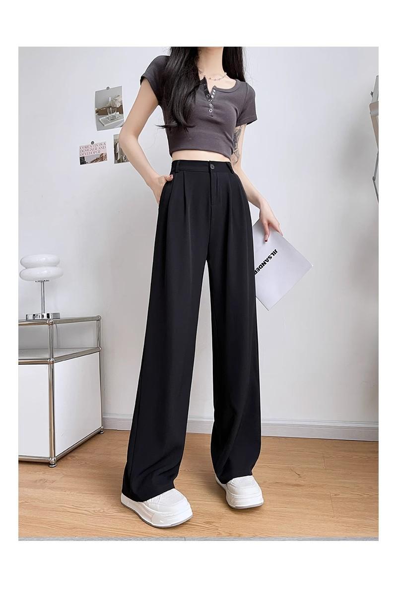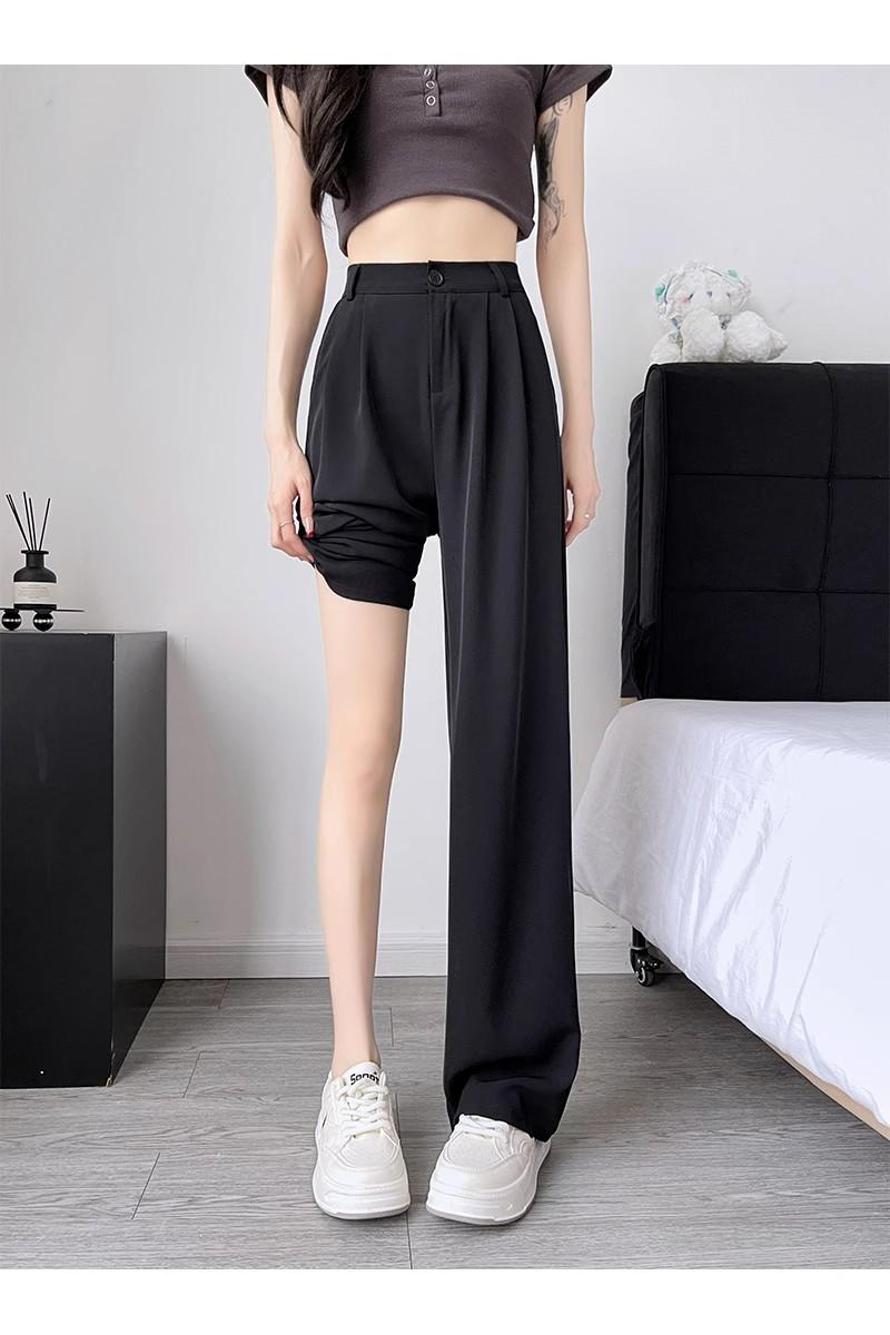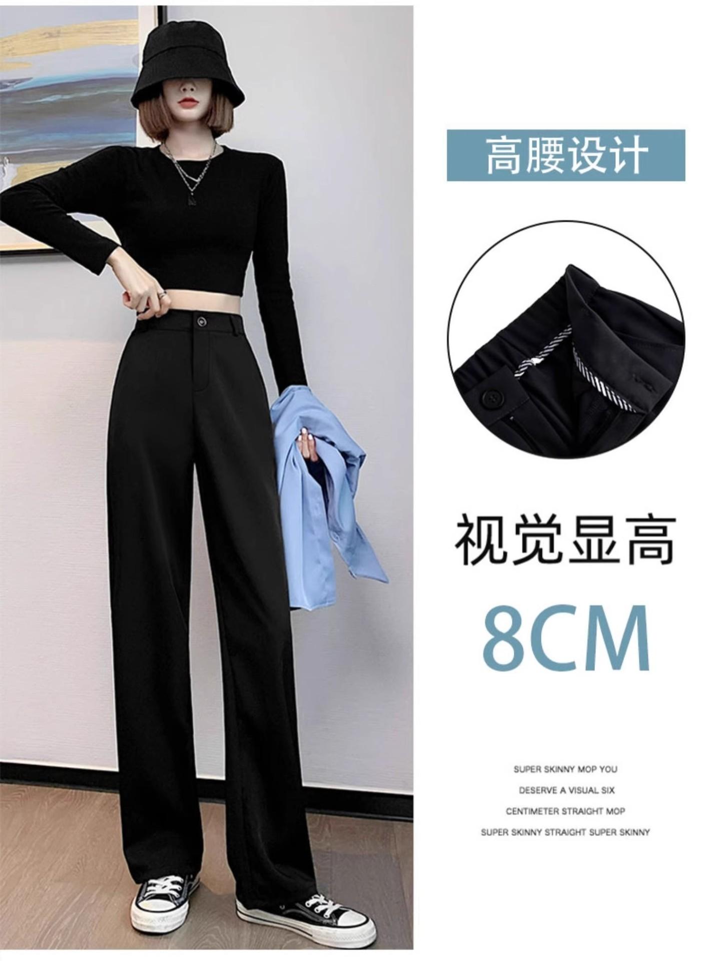 Pantalones de Traje Negros para Mujer Verano Delgados 2025 Nuevos Tiro Alto Rectos Sueltos Casuales Estrechos Pierna Ancha