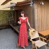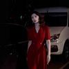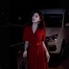 Vestido Rojo Exquisito de Alta Gama Estilo Hermana Real Francés Verano Nuevo Falda Diseño Nicho
