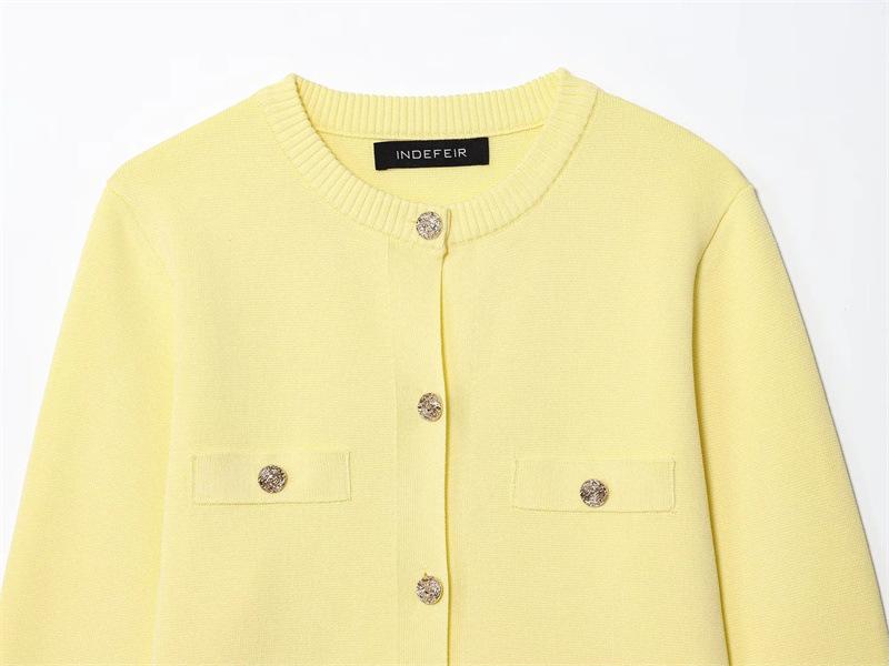 Cárdigan de Punto de Otoño 2025 Nuevo de Cuello Redondo con Botonadura Sencilla, Moderno, Versátil, Holgado, Adelgazante, Color Sólido, para Mujer
