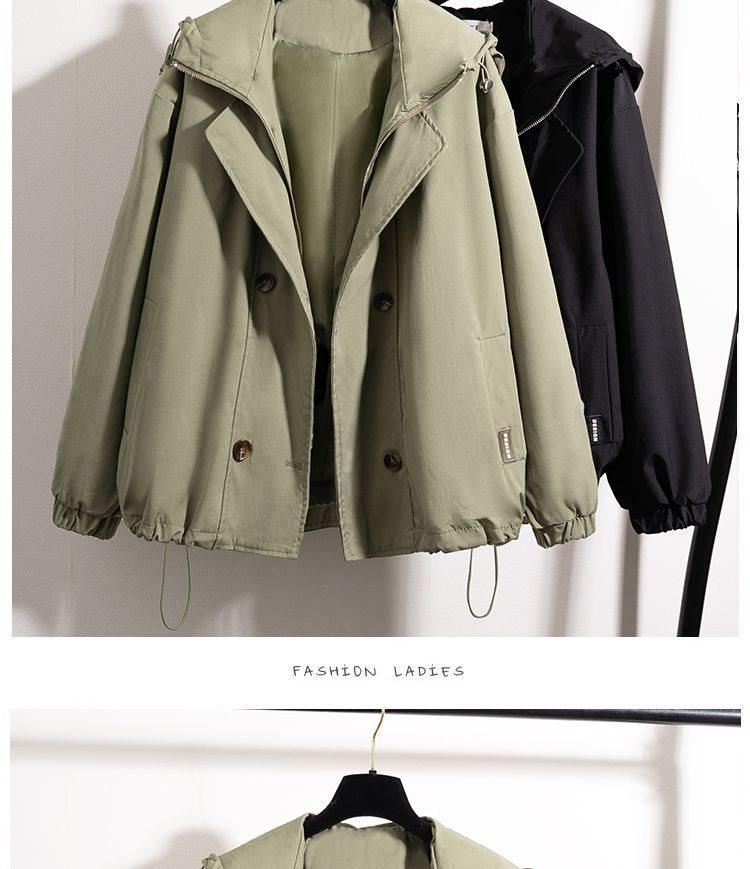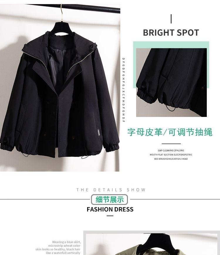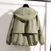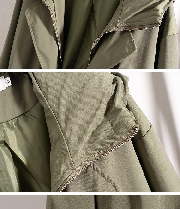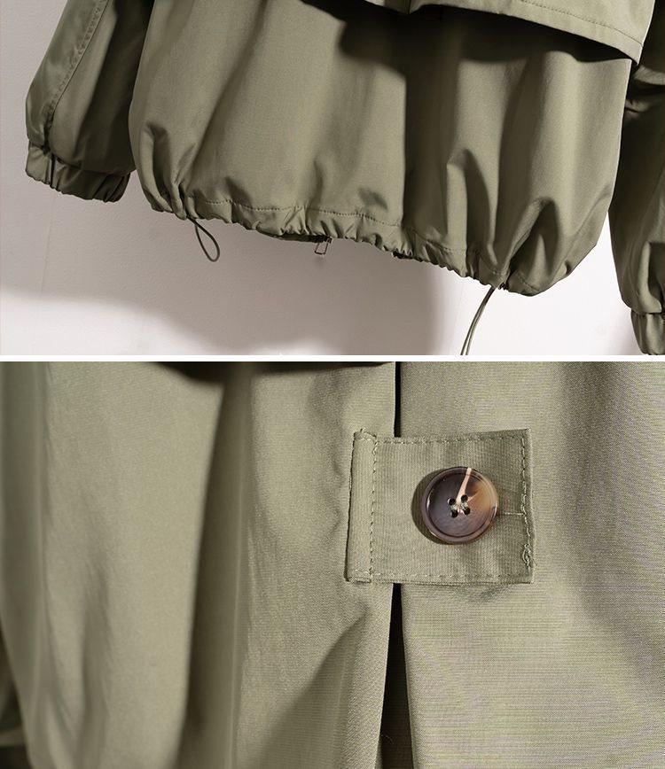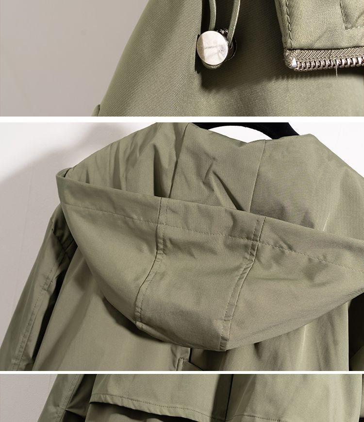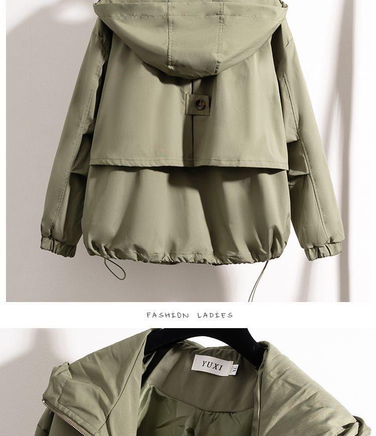 Chaqueta Cortavientos Verde Estilo Ropa de Trabajo con Capucha y Hombro Recto para Mujer Temporada Primavera Temprana 2025 Talla Grande Gordo mm Chaqueta Cortavientos Corta