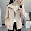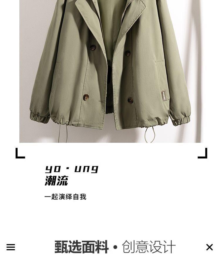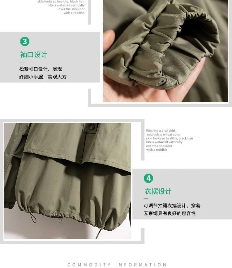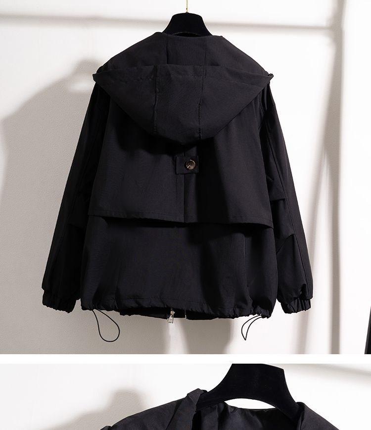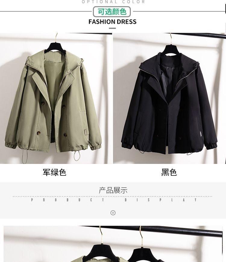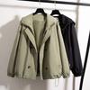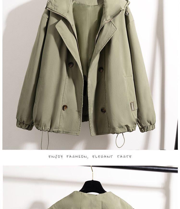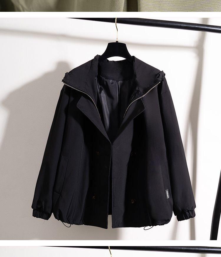 Chaqueta Cortavientos Verde Estilo Ropa de Trabajo con Capucha y Hombro Recto para Mujer Temporada Primavera Temprana 2025 Talla Grande Gordo mm Chaqueta Cortavientos Corta