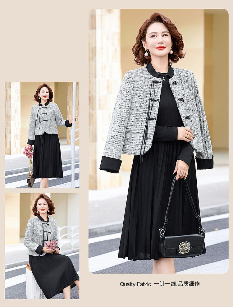 2025 Nuevo Traje de Falda y Top de Estilo Chino para Mujeres de Mediana Edad y Mayores para Primavera y Otoño Nuevo Estilo Vestido de Otoño para Mamá Conjunto de Dos Piezas