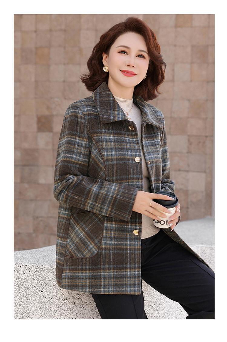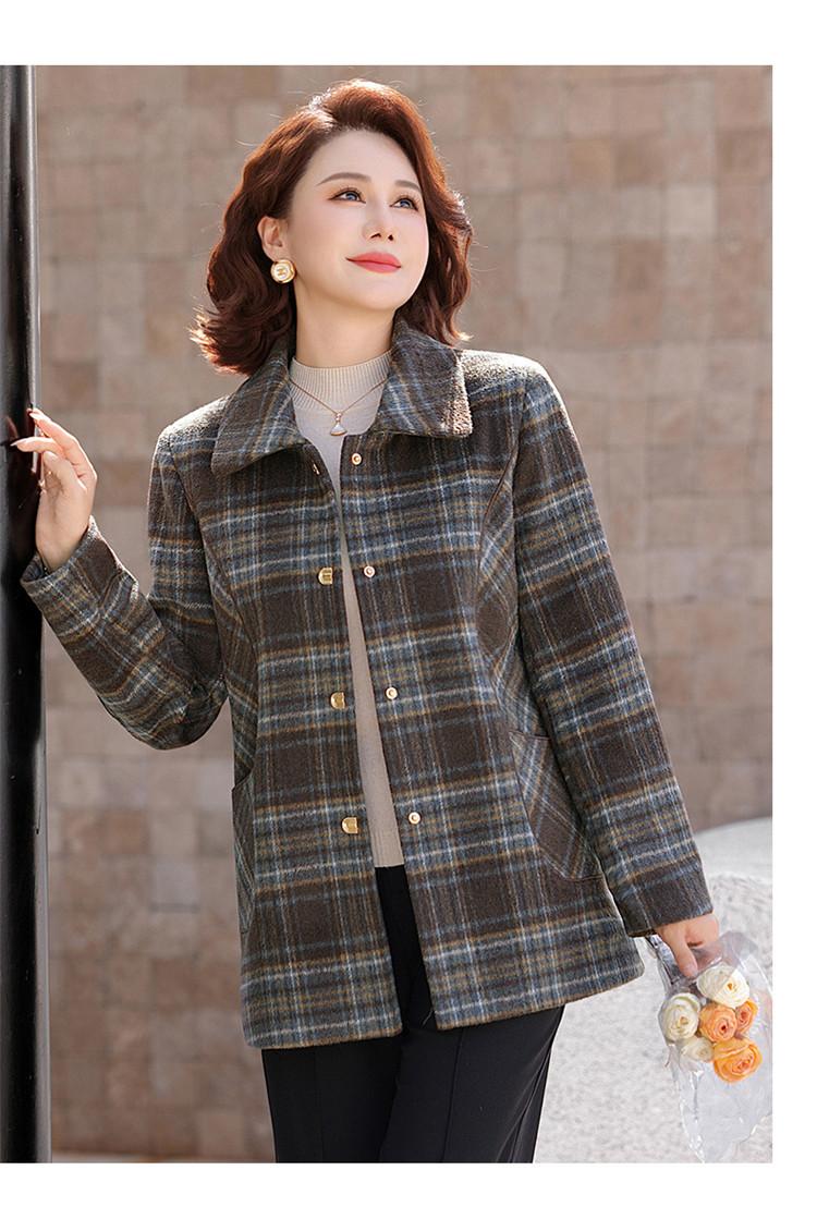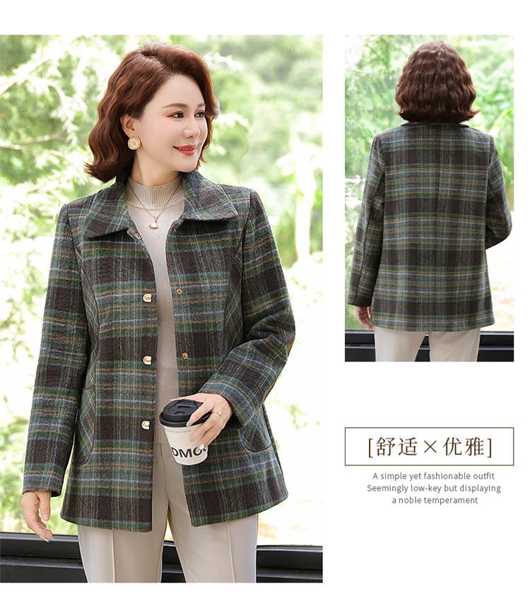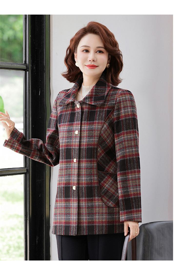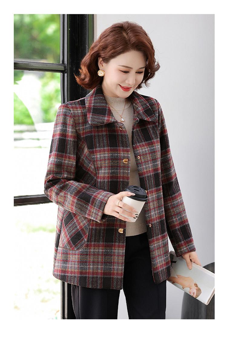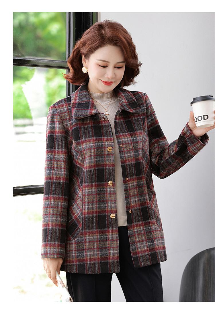 Abrigo de lana a cuadros de primavera y otoño para mamá de mediana edad 2025 ropa de otoño moda para mujeres de mediana edad y mayores talla grande top corto