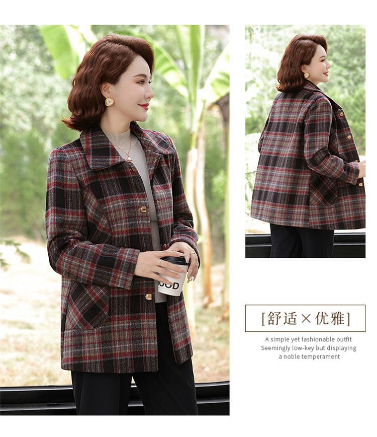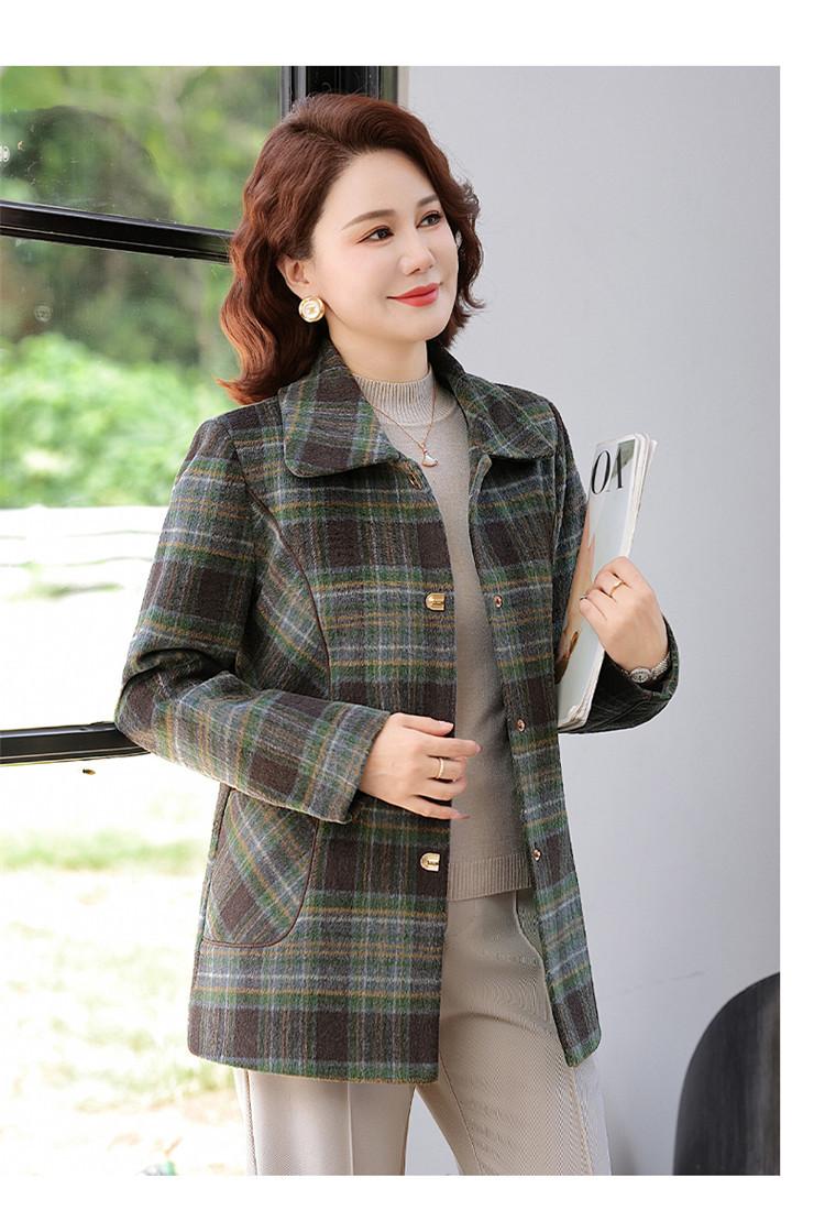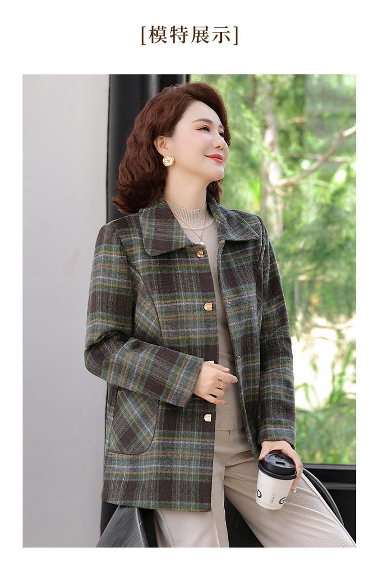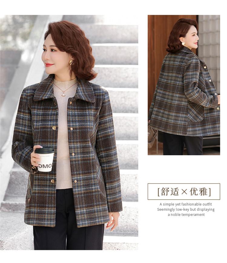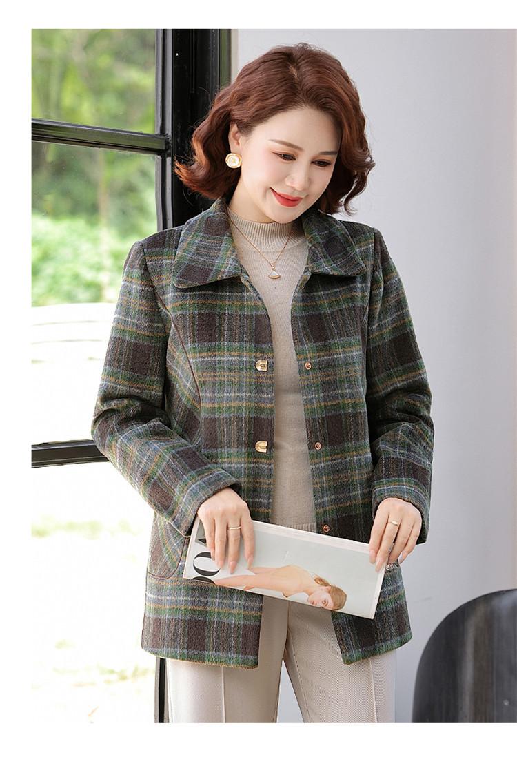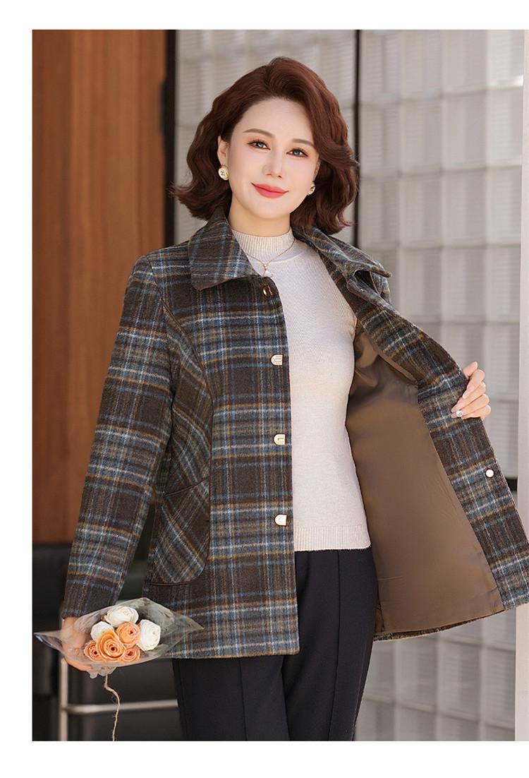 Abrigo de lana a cuadros de primavera y otoño para mamá de mediana edad 2025 ropa de otoño moda para mujeres de mediana edad y mayores talla grande top corto