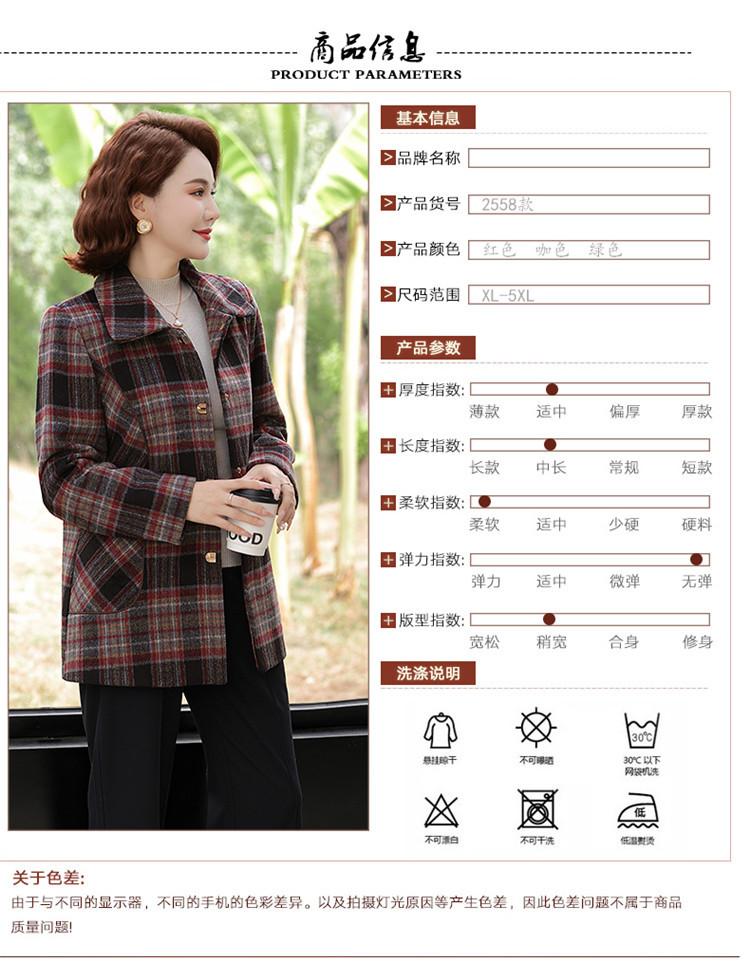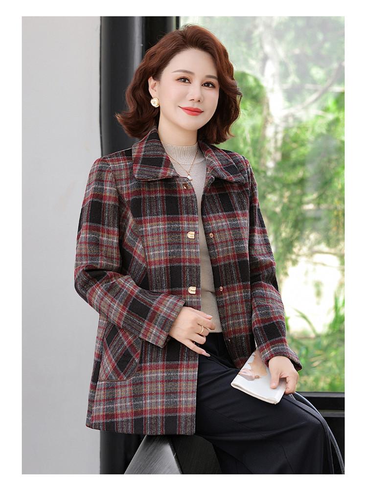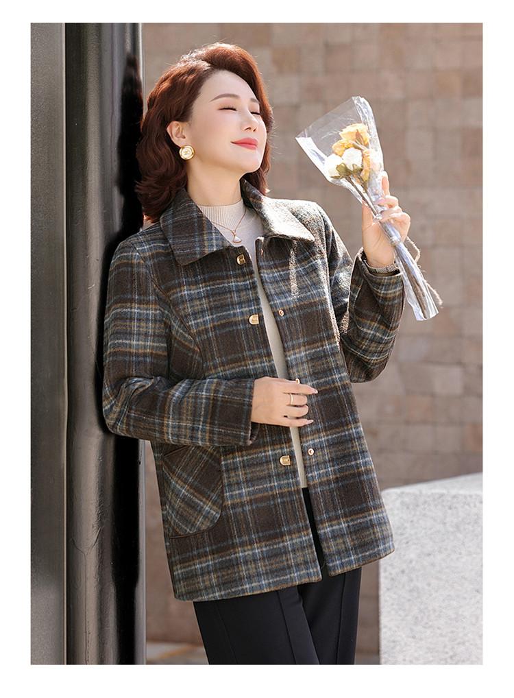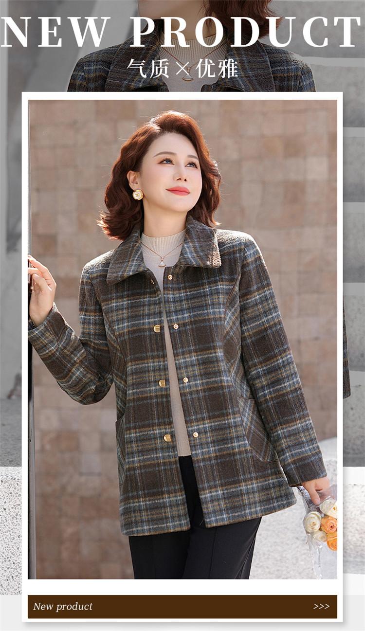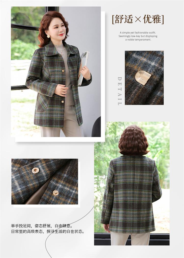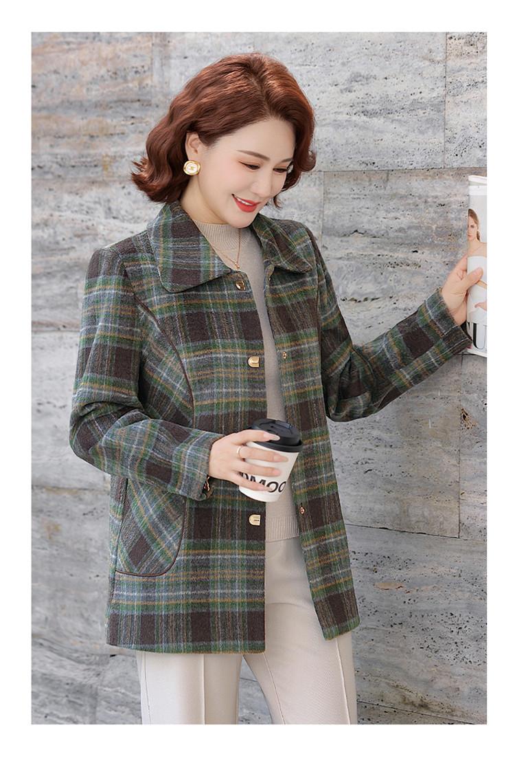 Abrigo de lana a cuadros de primavera y otoño para mamá de mediana edad 2025 ropa de otoño moda para mujeres de mediana edad y mayores talla grande top corto