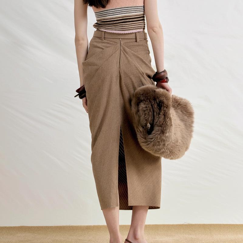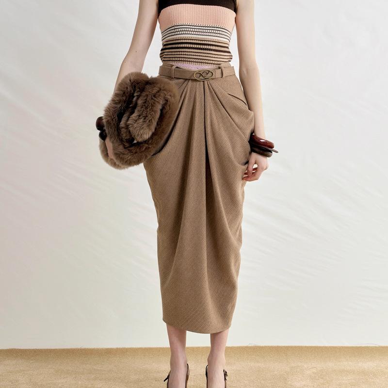 Serie Otoño Temprano Falda Midi Diseño Cinturón Plisado Estéreo 2025 Nuevo Estilo Coreano Satén
