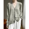 Nuevo Suéter Otoño/Invierno 100% Cachemira Pura para Mujer Cuello en V Tejido Holgado Cárdigan Versátil y Relajado
