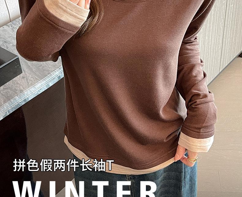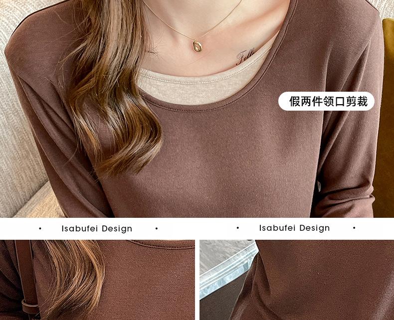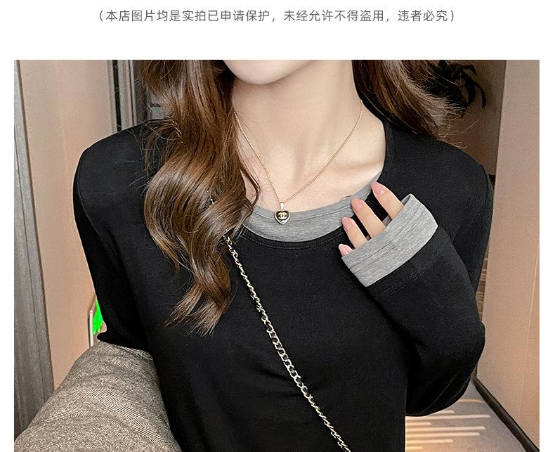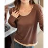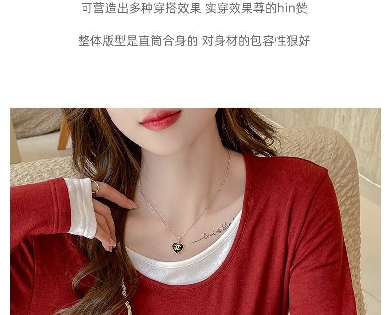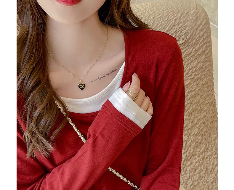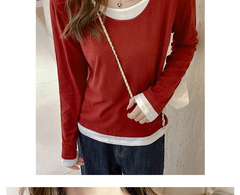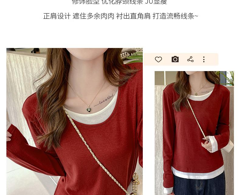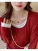 Camiseta base de otoño e invierno de dos piezas falsas para mujer, ropa interior, estilo coreano, sensación de alta gama, camiseta roja de manga larga, top de bloque de color, ropa exterior, moderna, ins