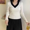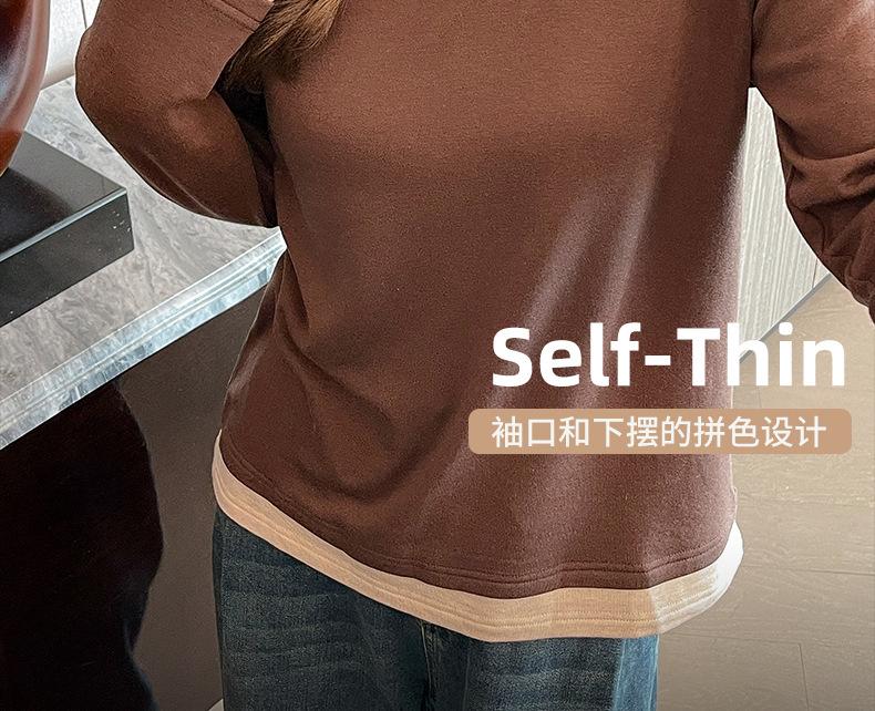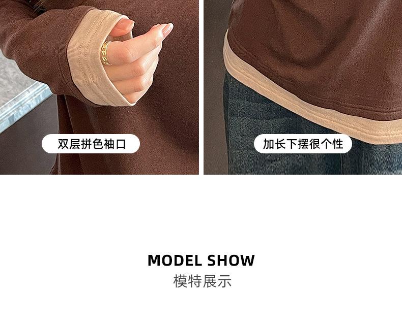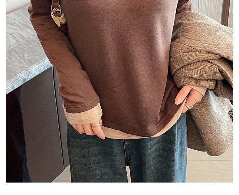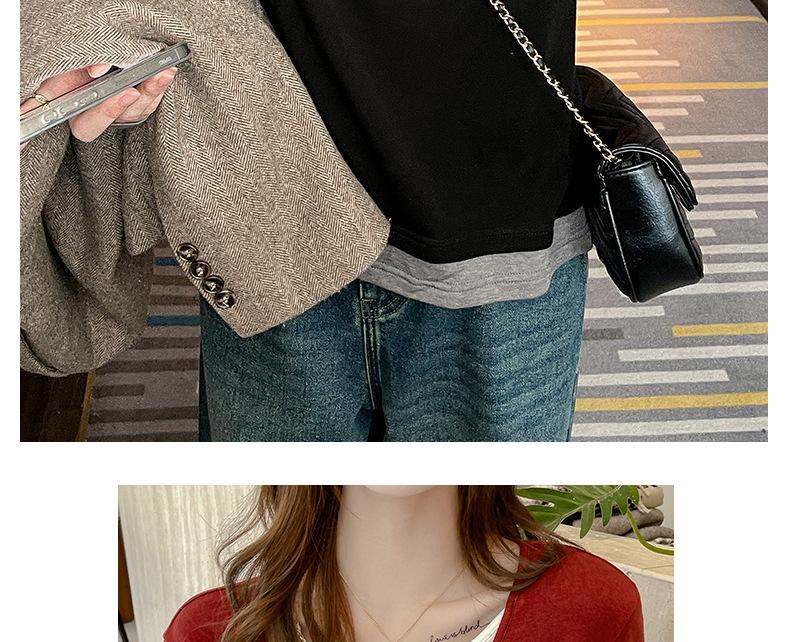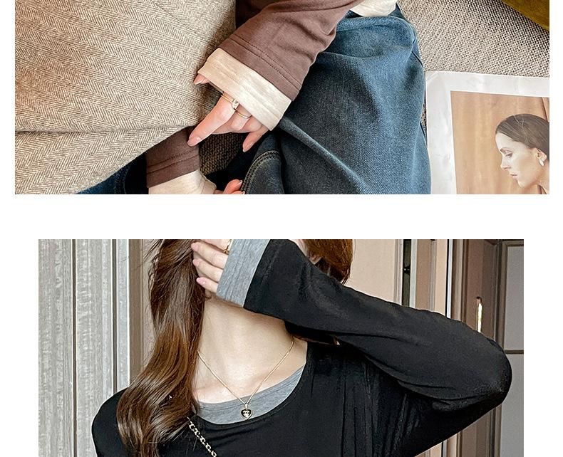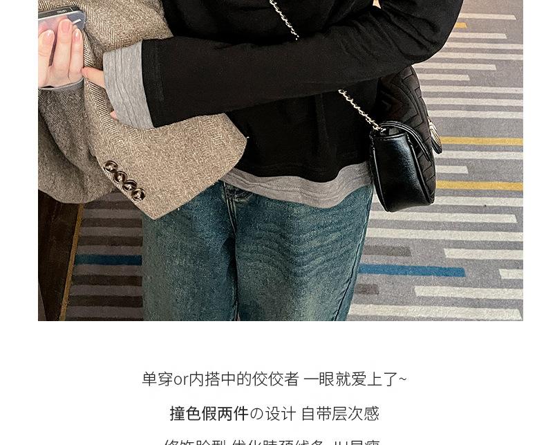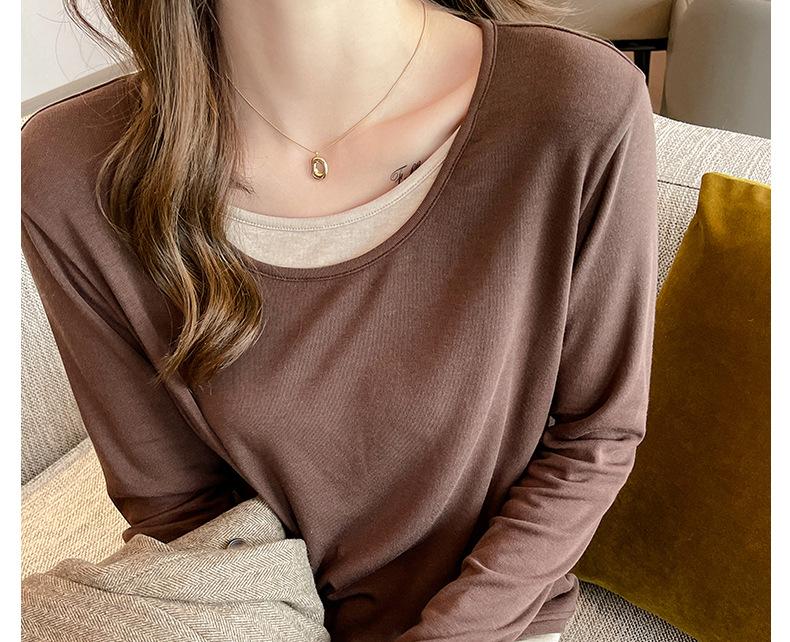 Camiseta base de otoño e invierno de dos piezas falsas para mujer, ropa interior, estilo coreano, sensación de alta gama, camiseta roja de manga larga, top de bloque de color, ropa exterior, moderna, ins