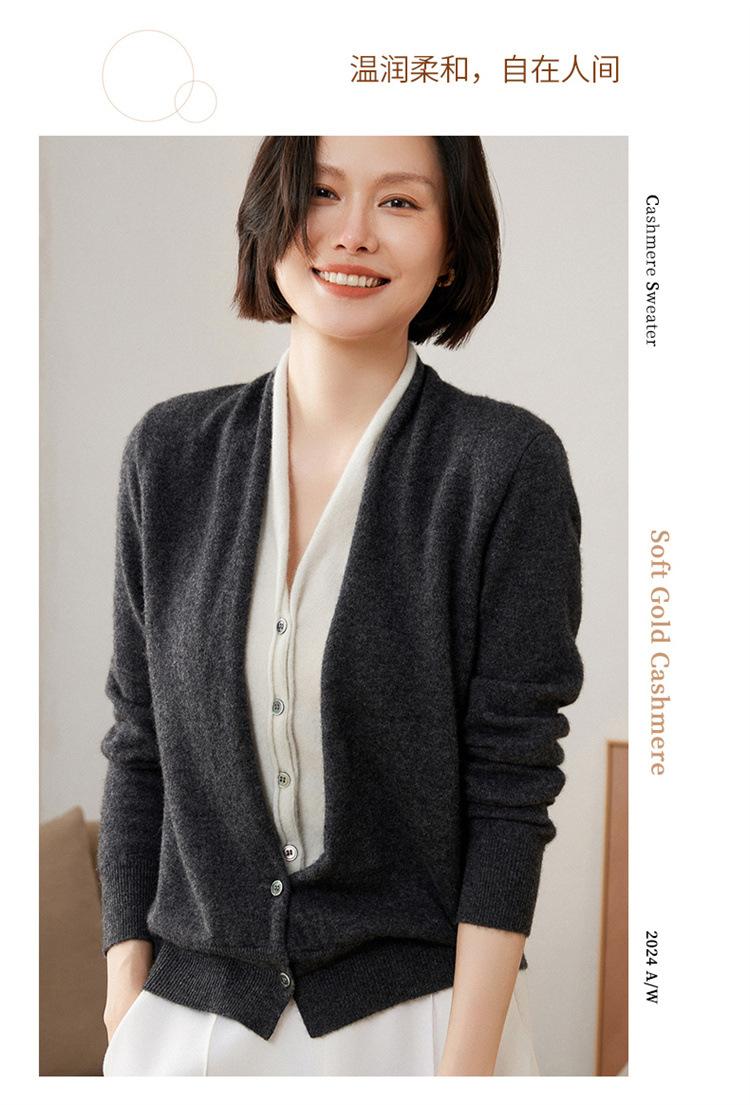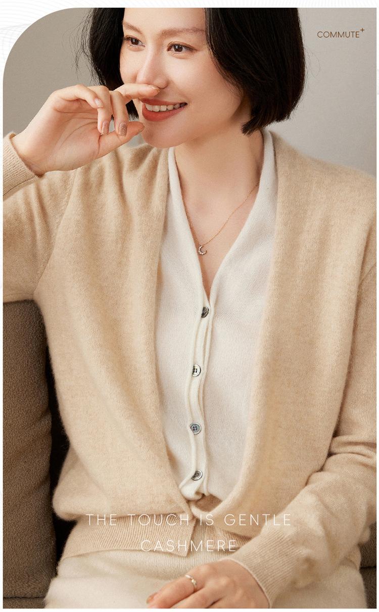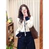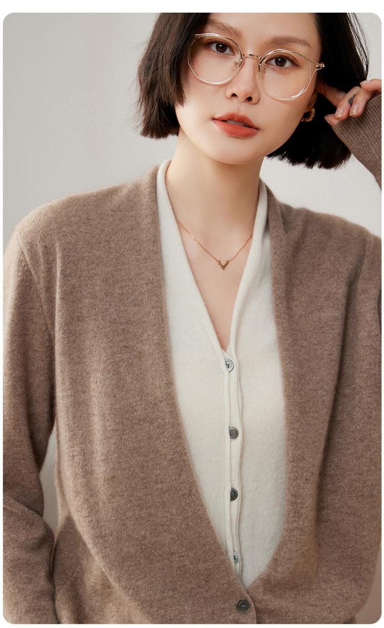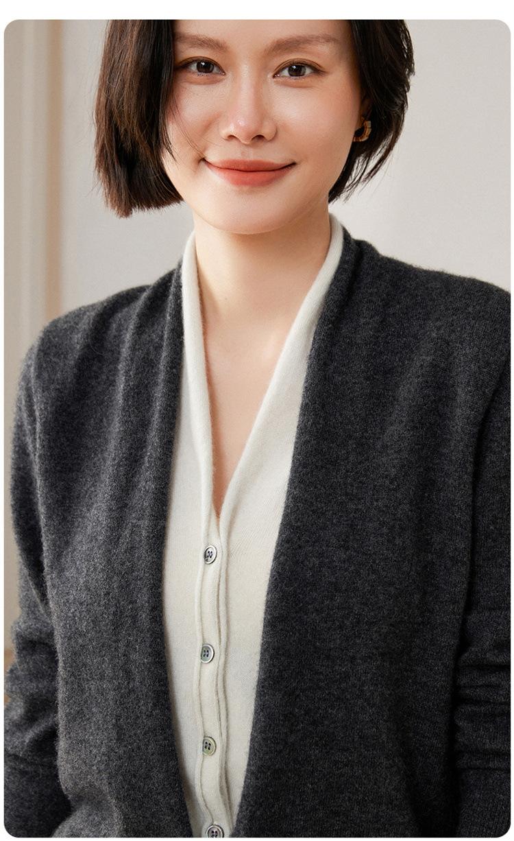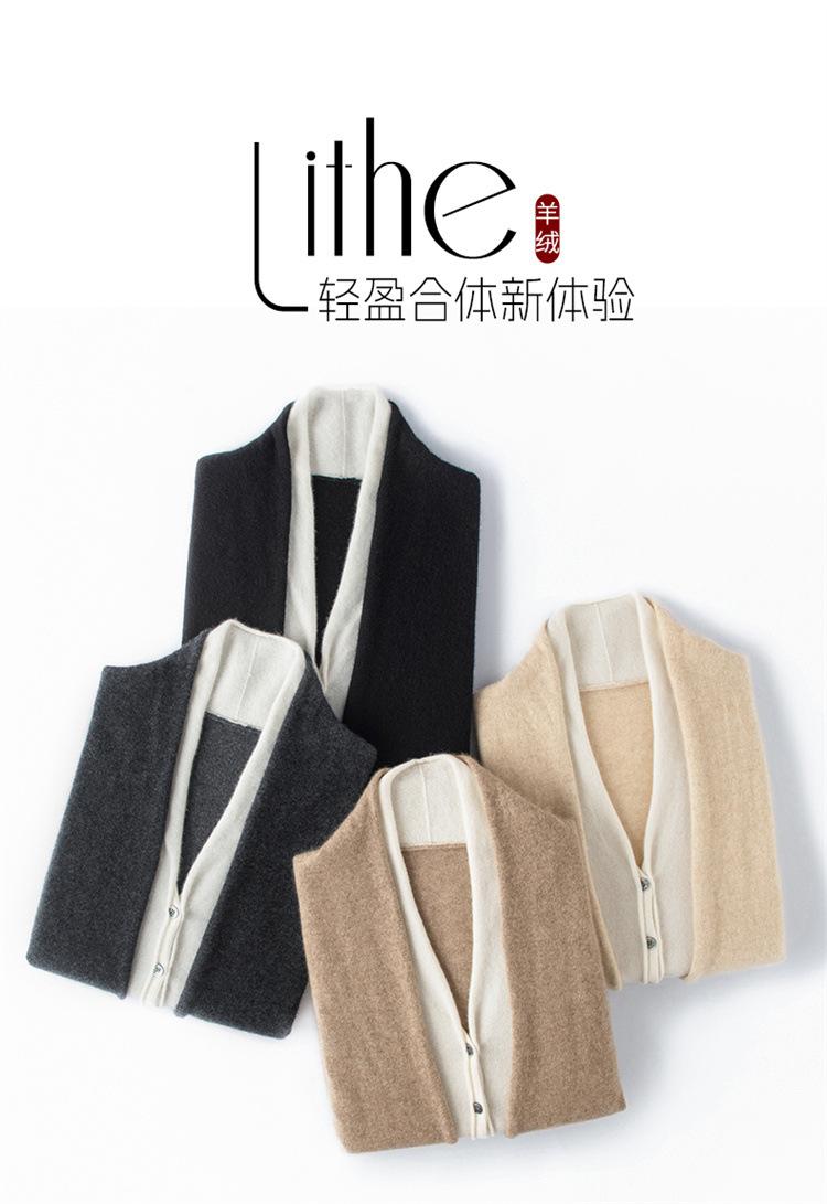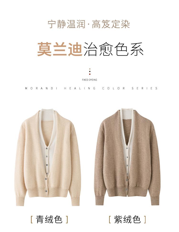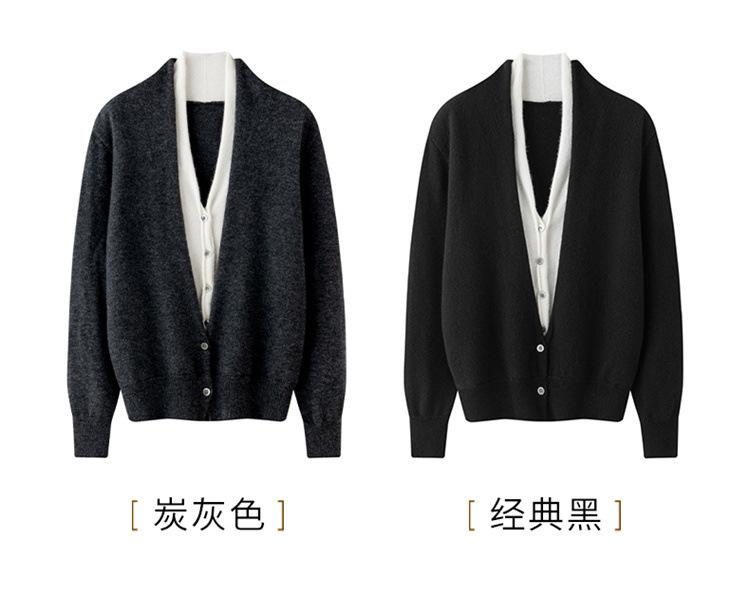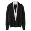 Cárdigan de Punto de Cachemira Francés para Mujer Abrigo Cuello en V Mujer Sentido del Diseño Nicho Falso de Dos Piezas Suéter Bloque de Color