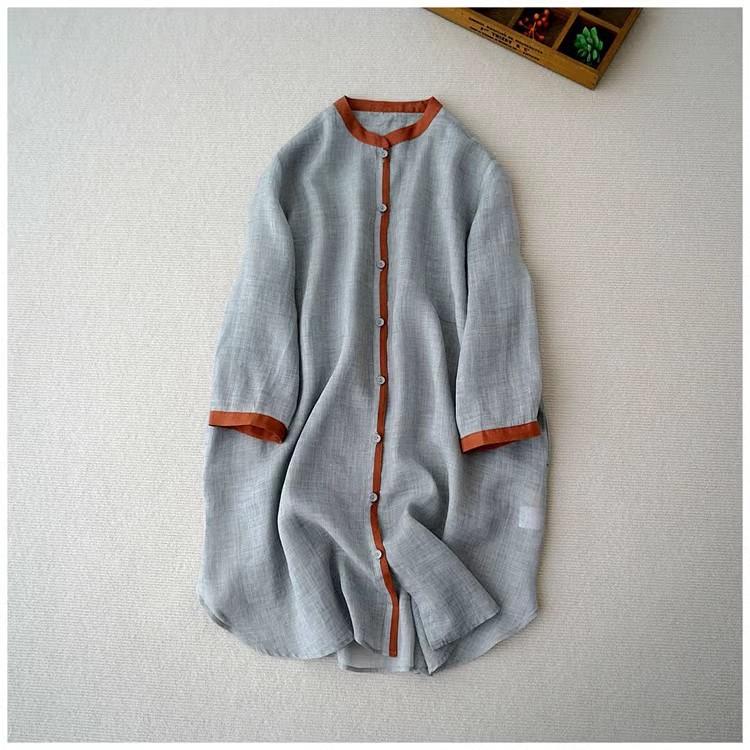 Otoño 2025 Suelto Casual Versátil Cuello Alto Media Manga Tres Cuartos Camisa Bloque de Color Cárdigan Casual Camisa Protección Solar Mujer